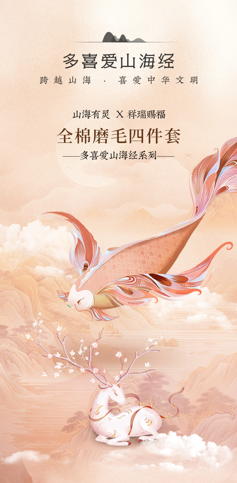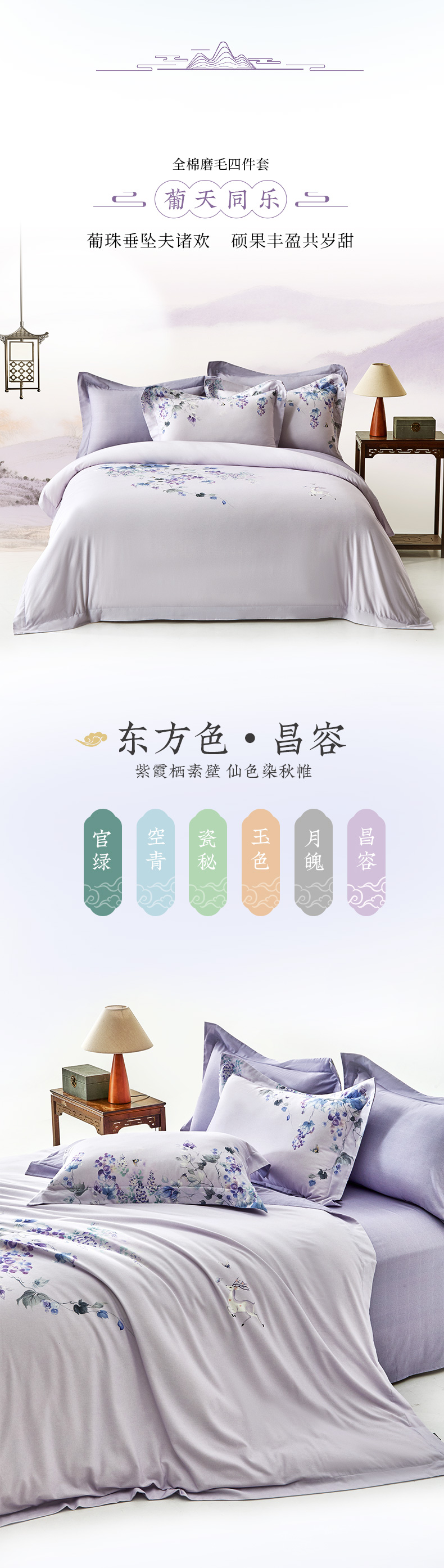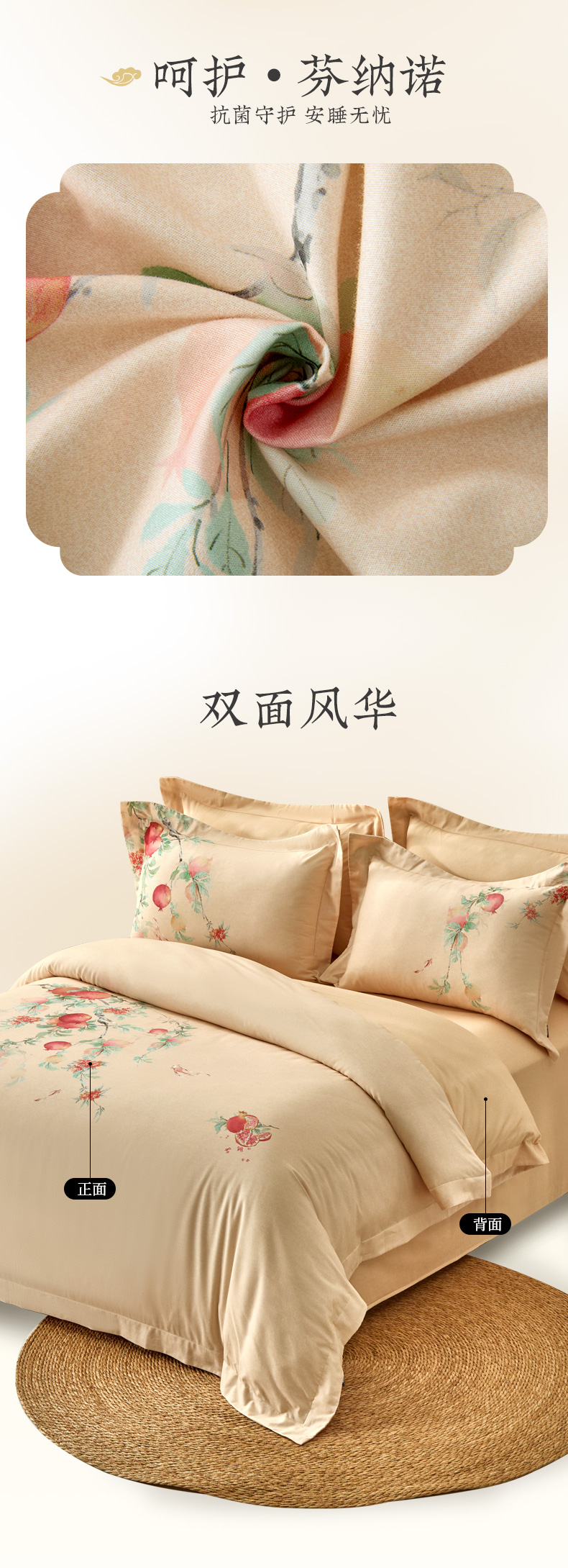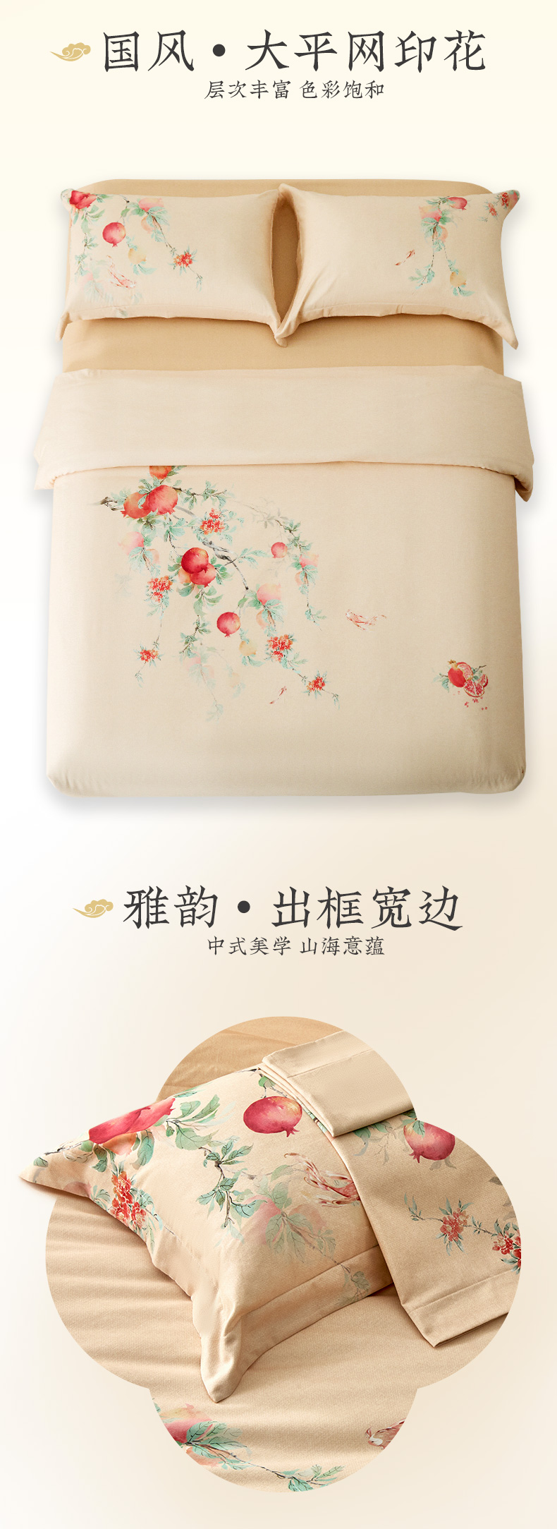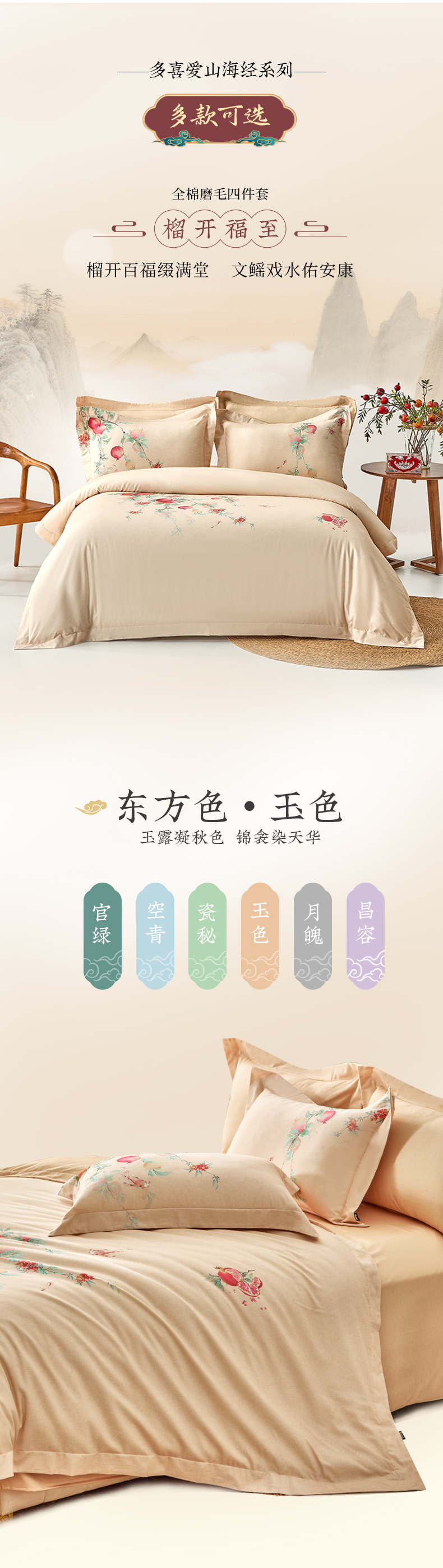 多喜爱 山海经系列全棉磨毛四件套 榴开福至/投桃喜禄/葡天同乐hl【云柔全棉】【温润磨毛】【芬纳诺抗菌】【出框工艺】温暖舒适 国风山海 多款可选