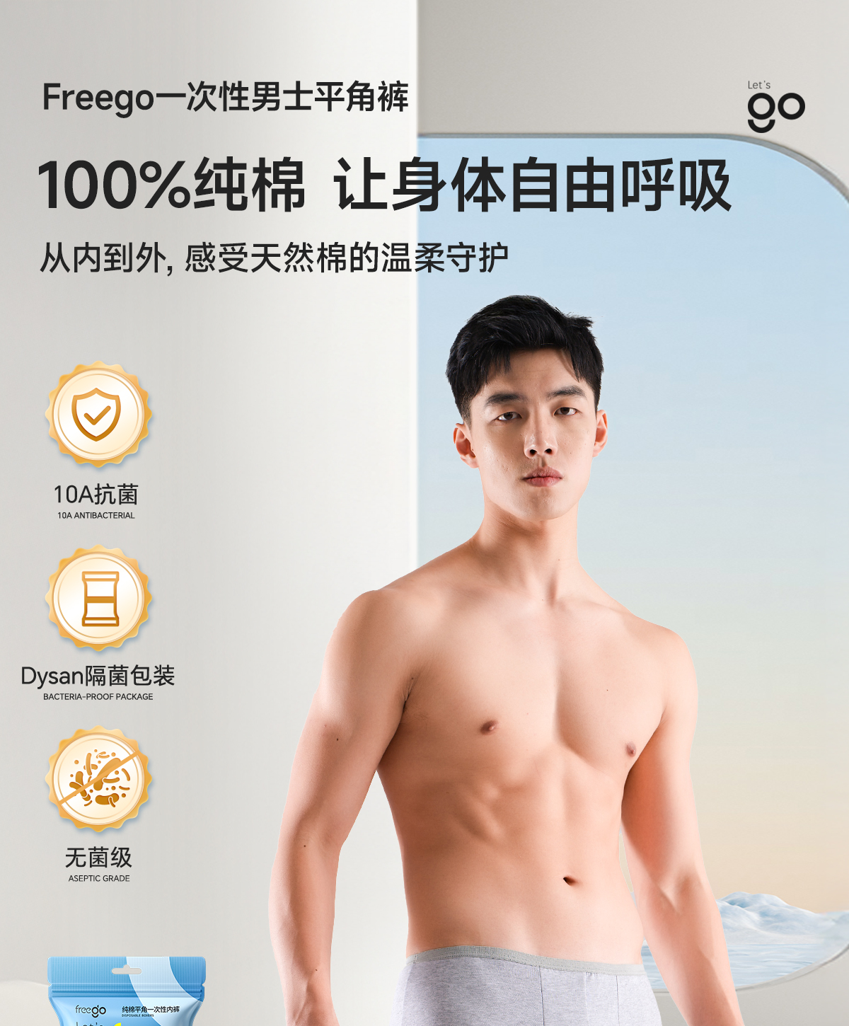 【无菌级】Freego「新包装平角裤」10A抗菌一次性纯棉平角裤男士