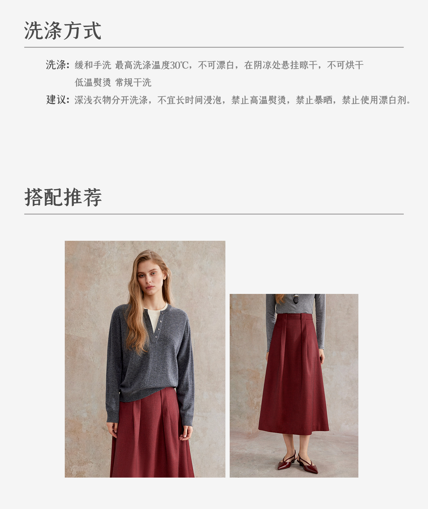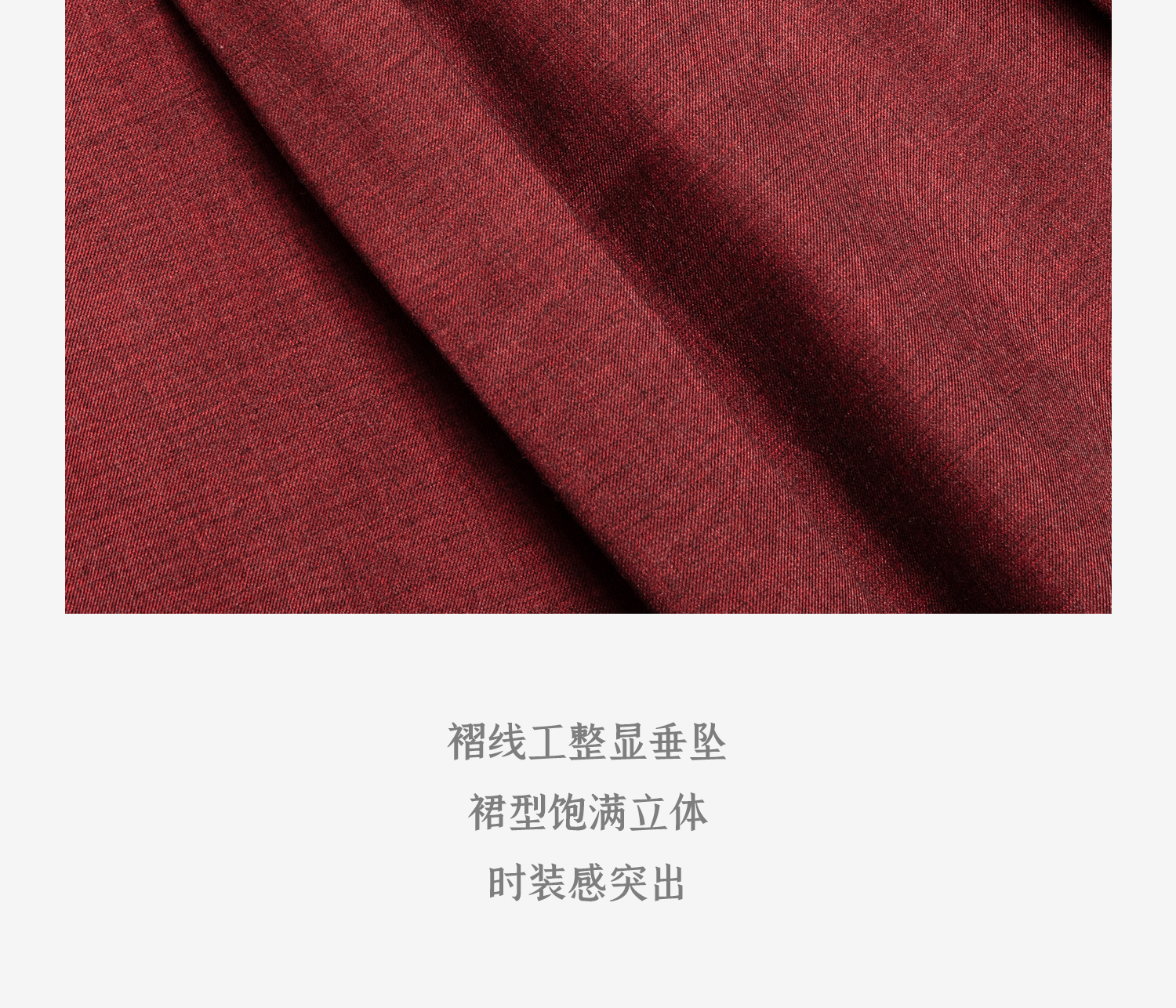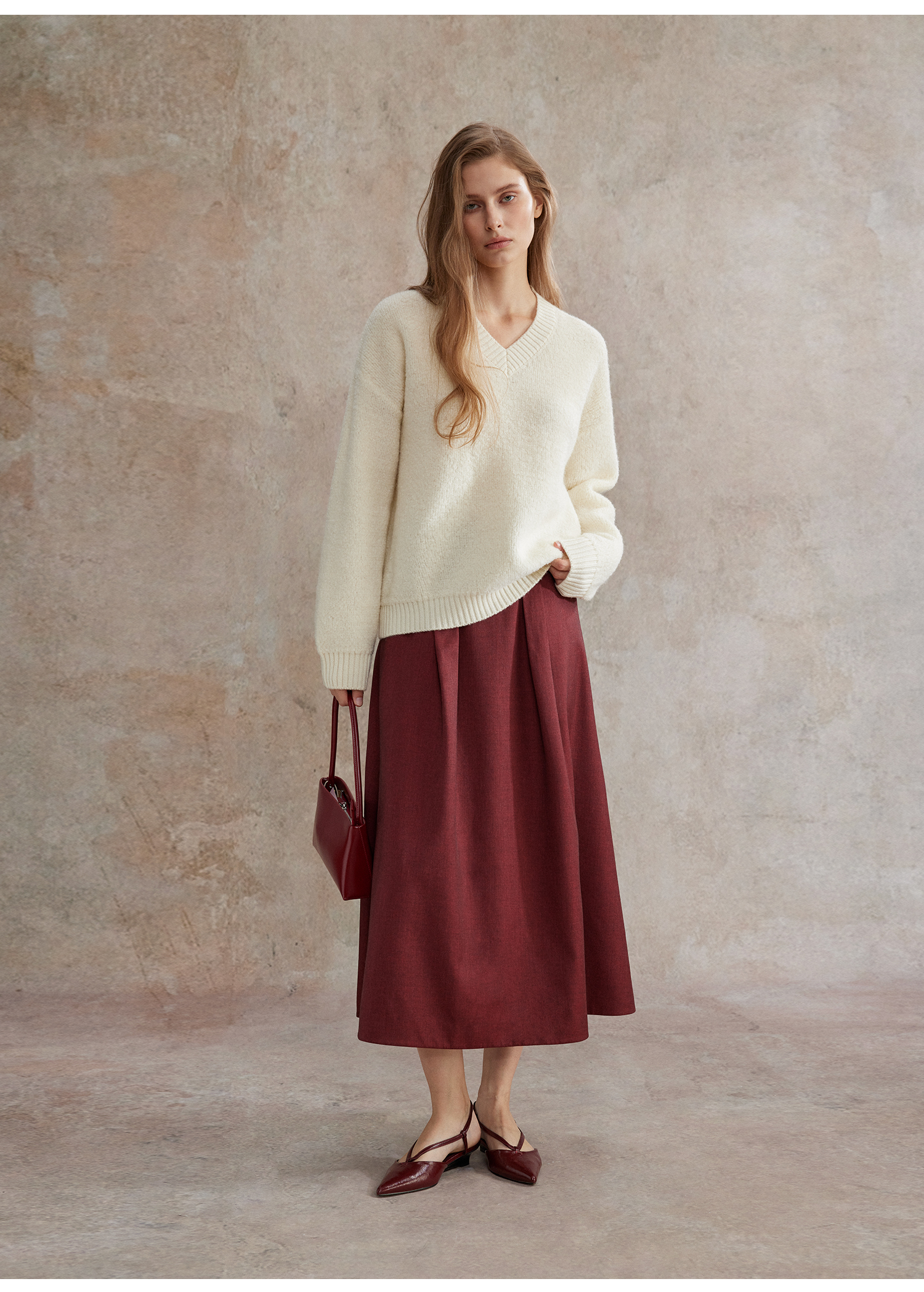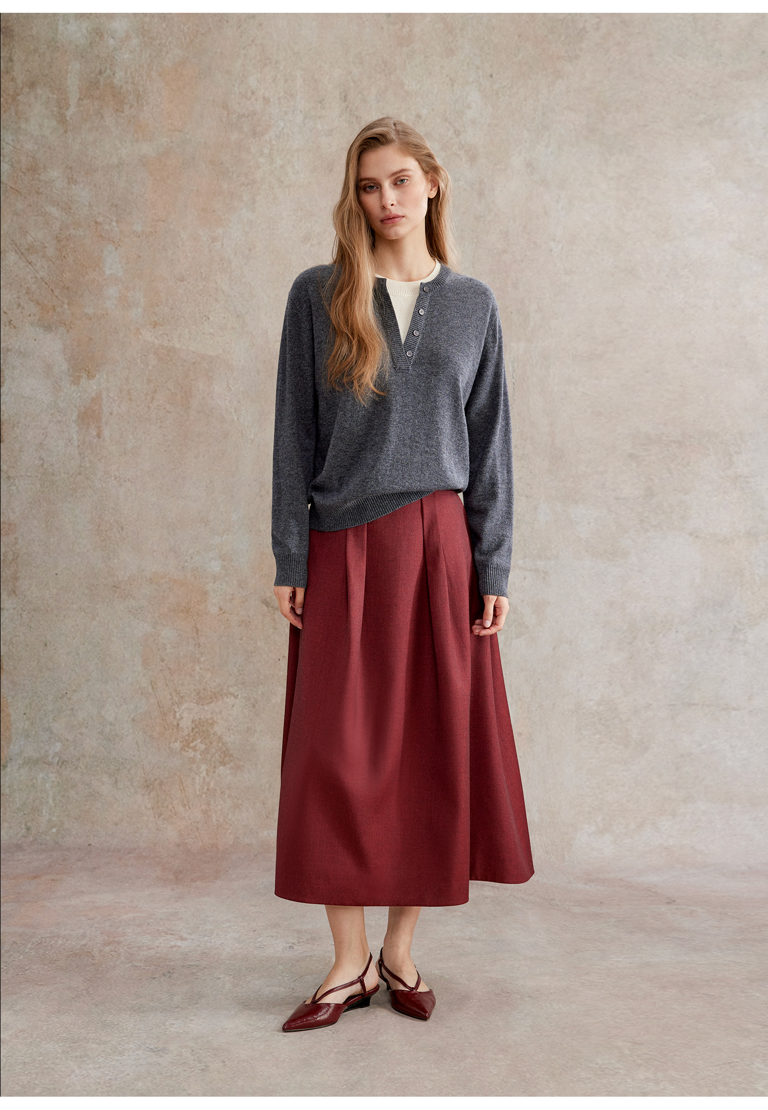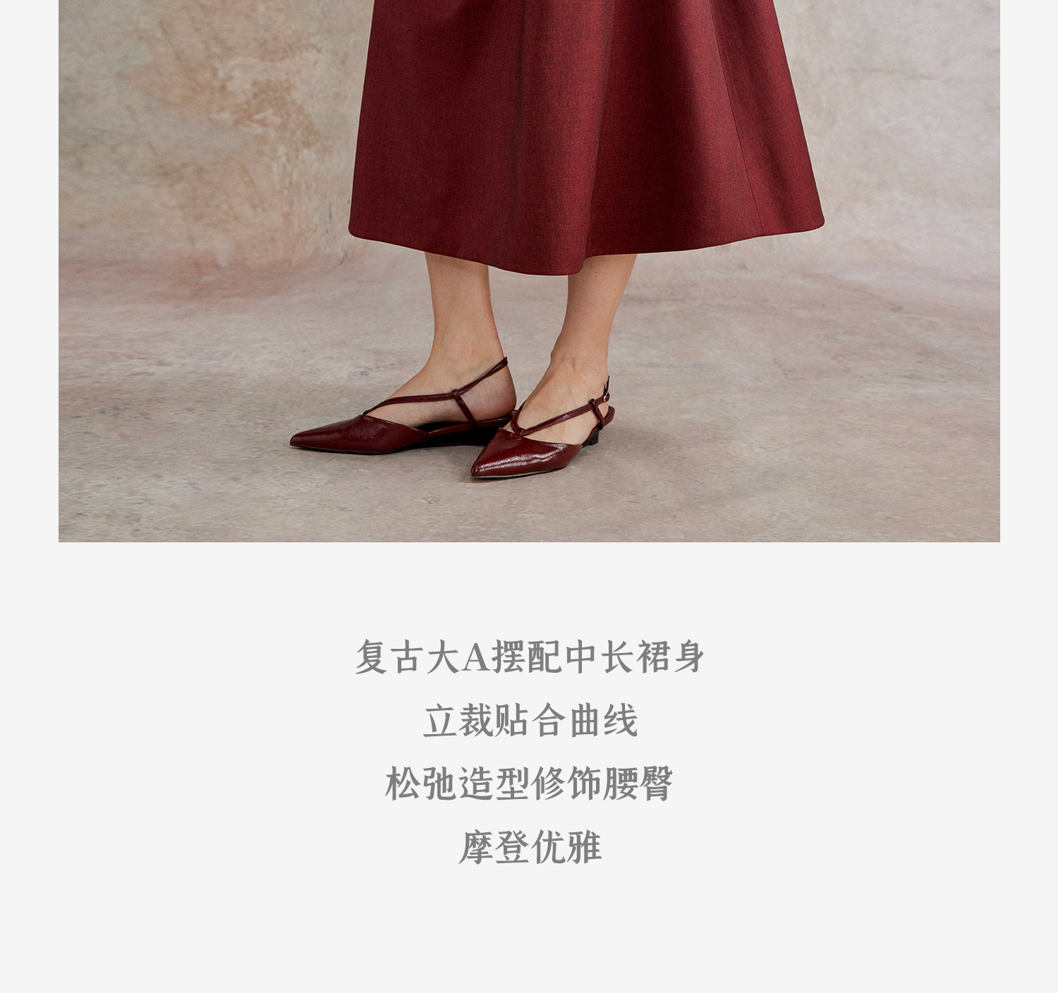 精纺羊毛经典优雅A字伞裙复古红色褶裥半身裙BQ2504073