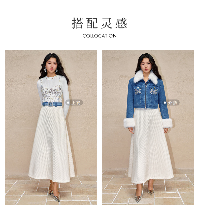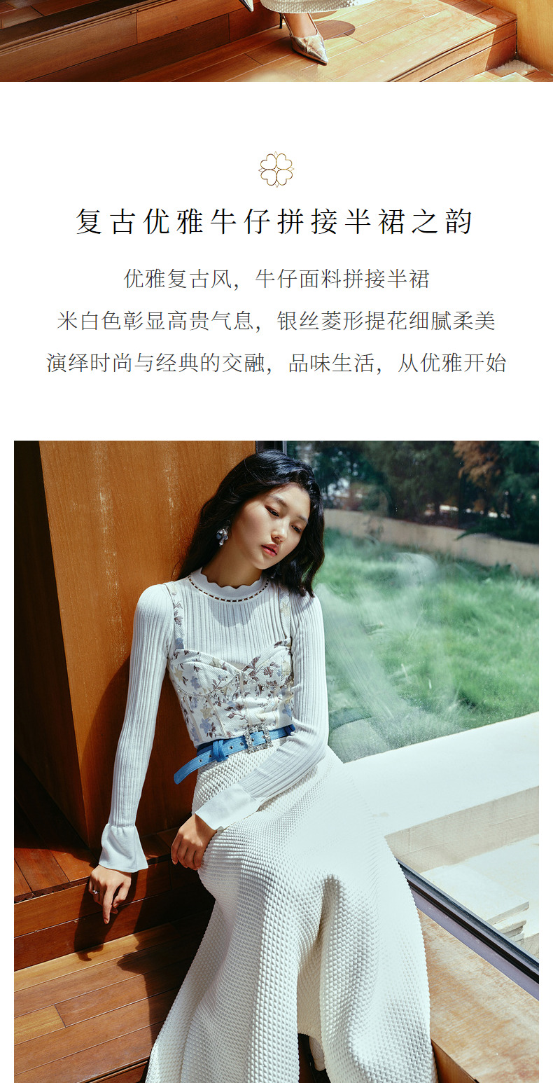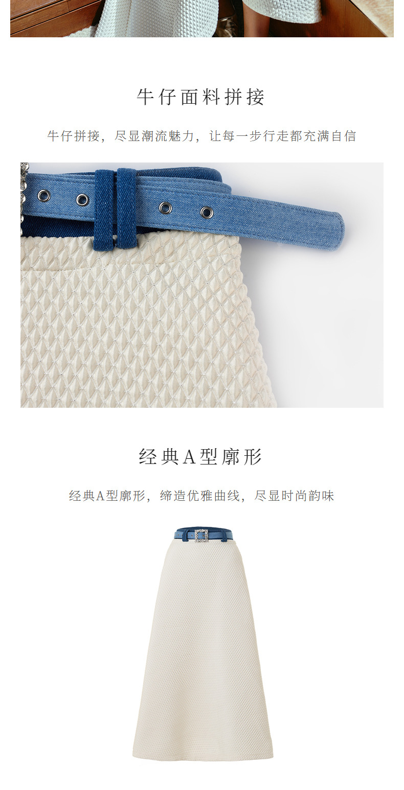 MAXRIENY*复古感半裙*A型廓形牛仔拼接裙子(货号:MC88SK792)