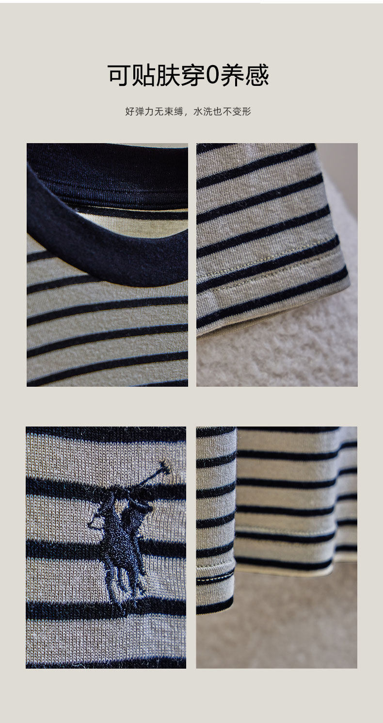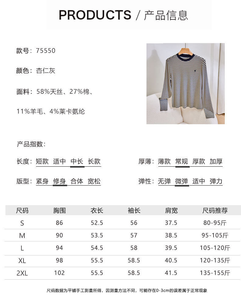 「自」全新升级【铂金会员146/天猫199/差价53】(21635)洛诗琳2026春季新款韩版圆领微宽松羊毛牛奶丝条纹长袖打底衫
