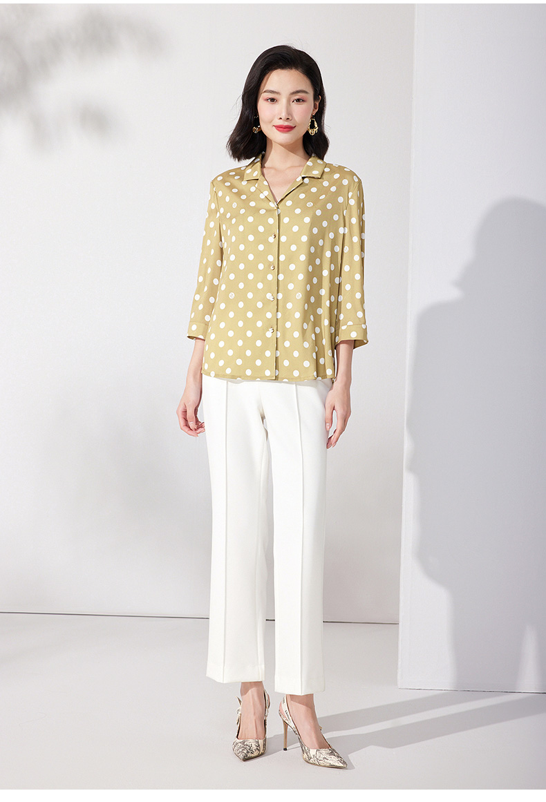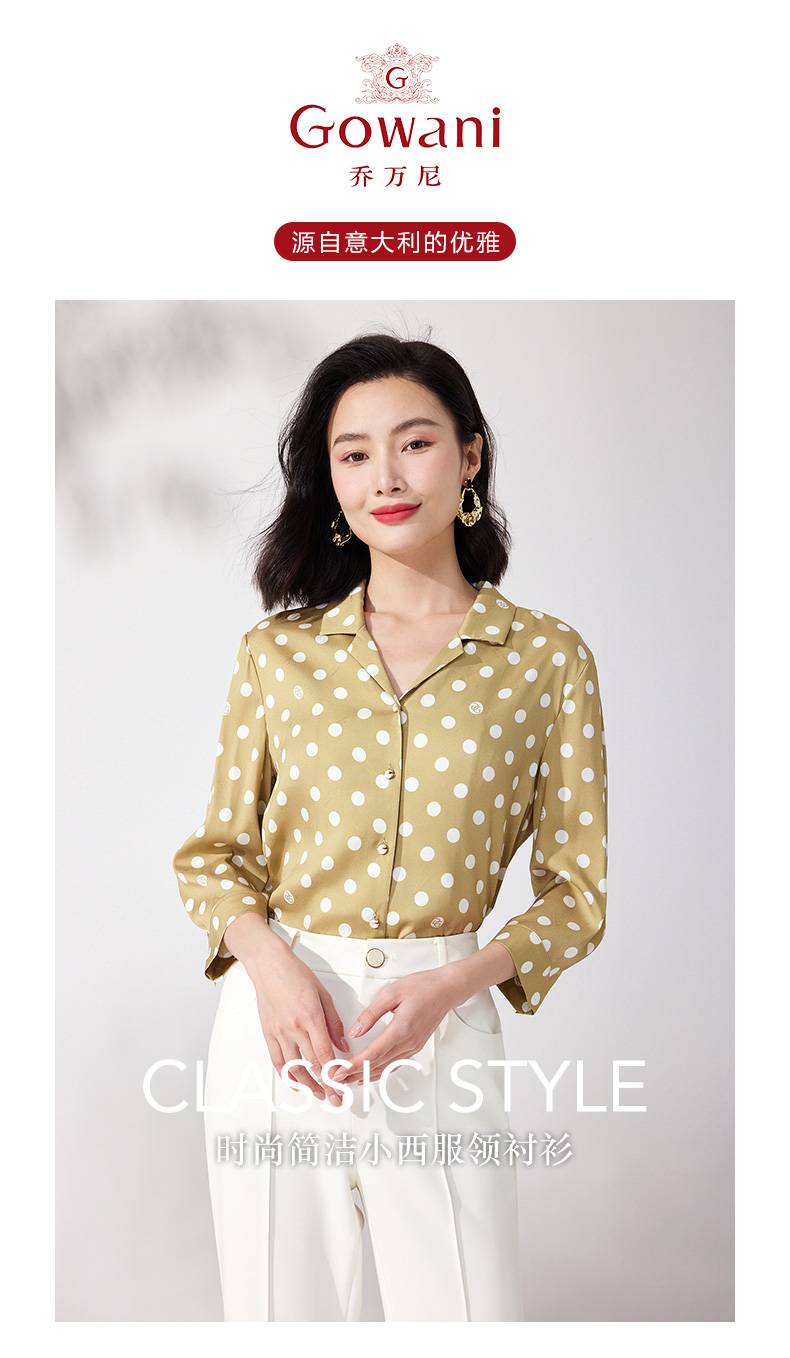 乔万尼真丝衬衫V领设计气质职场波点桑蚕丝上衣ET2C247