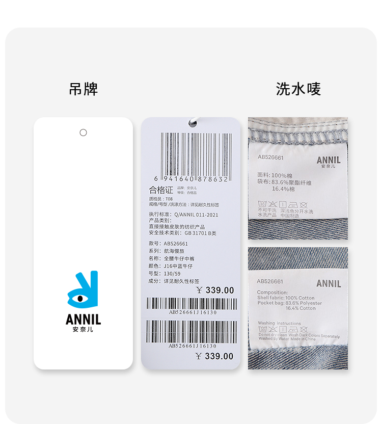 【实体店同款】男童全腰牛仔中裤夏季新款安奈儿童装AB526661