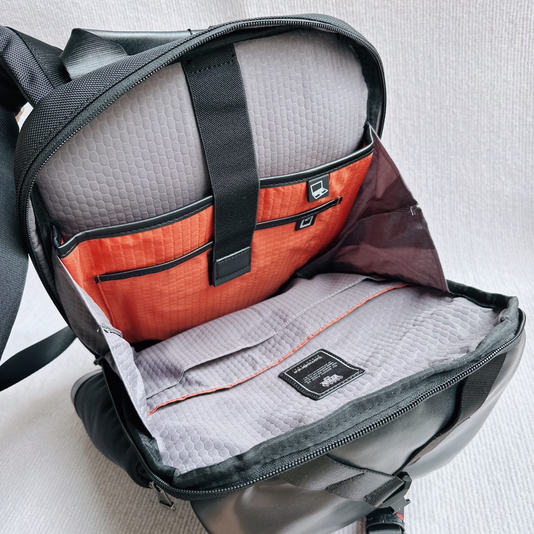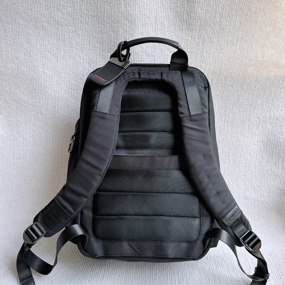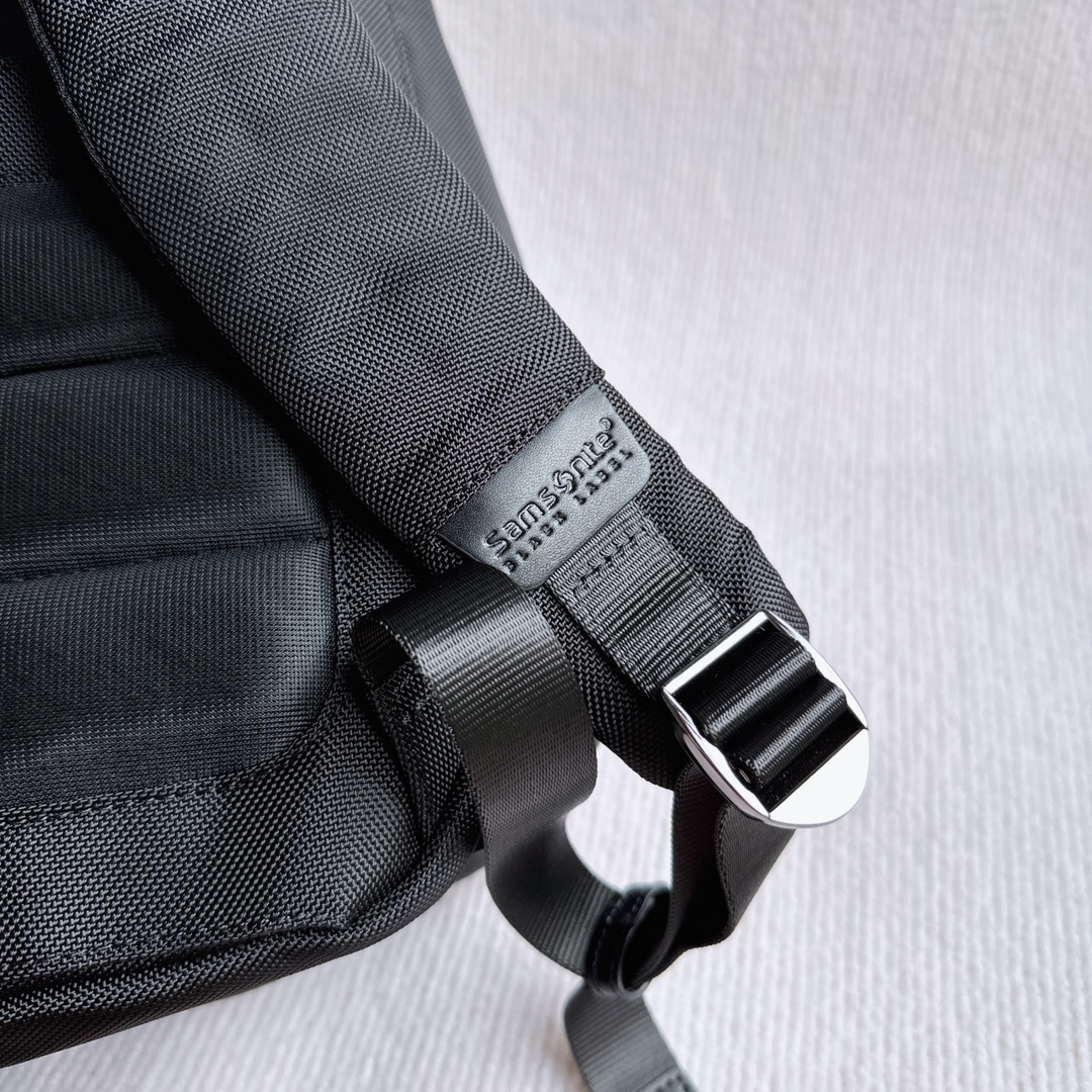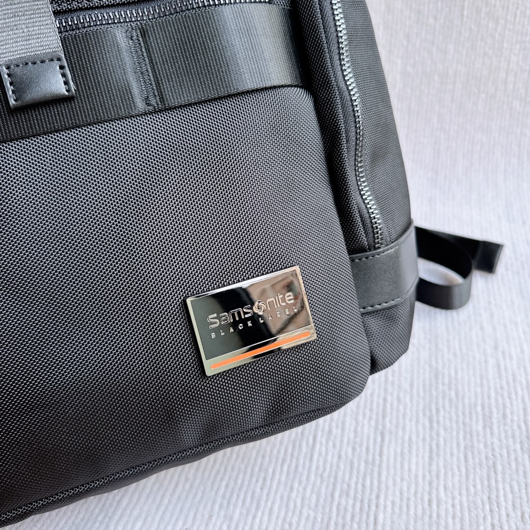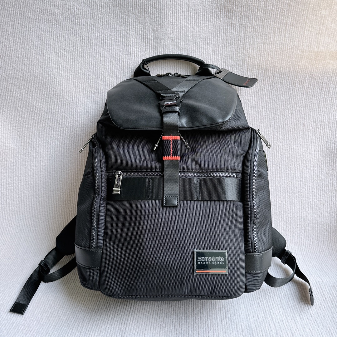 Samsonite 多功能双肩背包,防水织物面料配牛皮,有专门电脑隔层,背部是人体工学设计,可以插在拉杆箱上面。尺寸:25×42×18