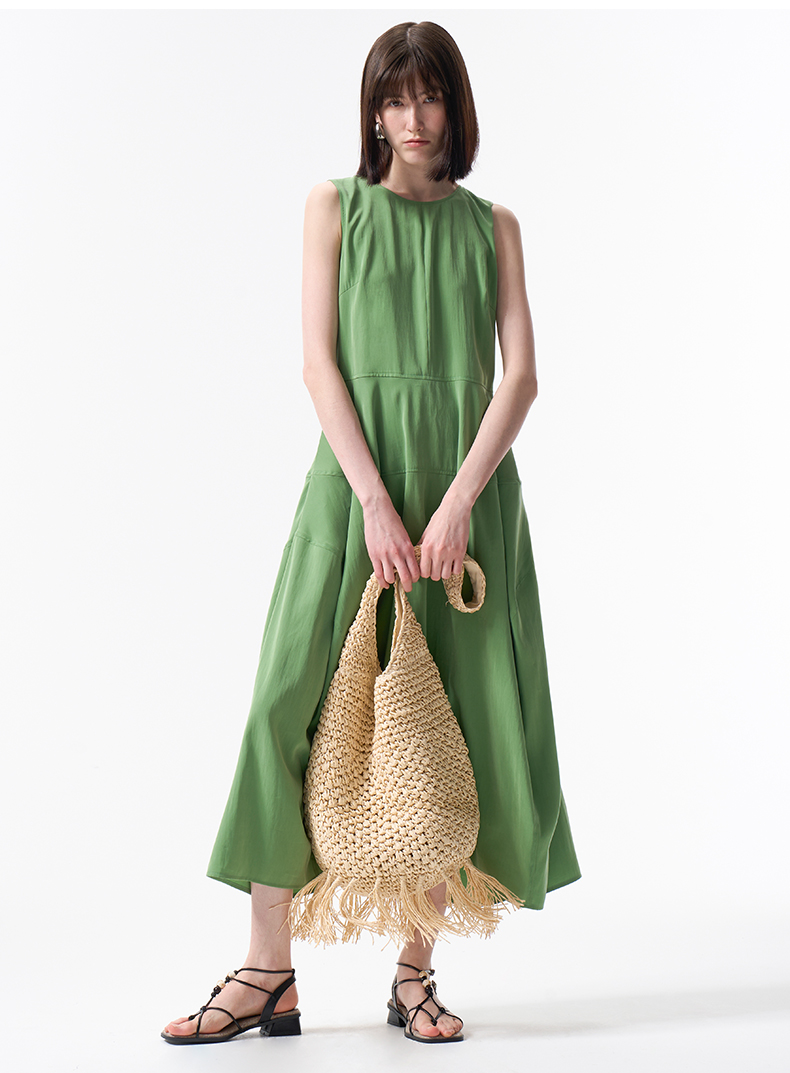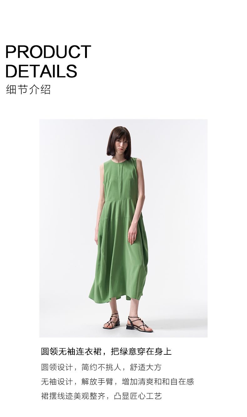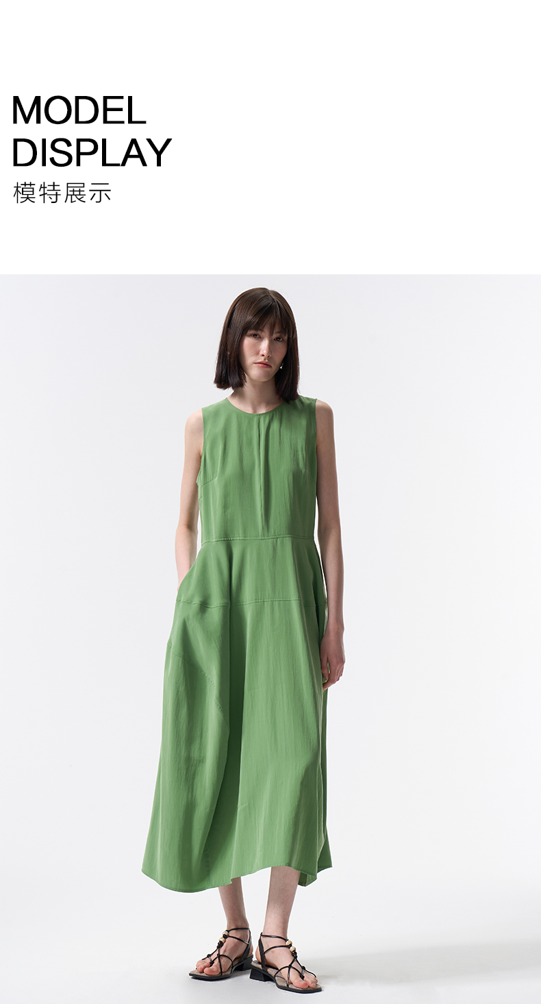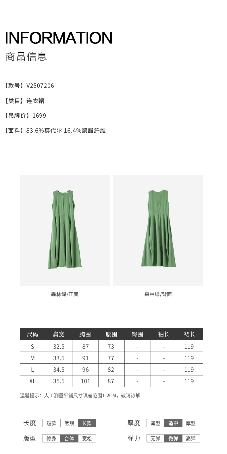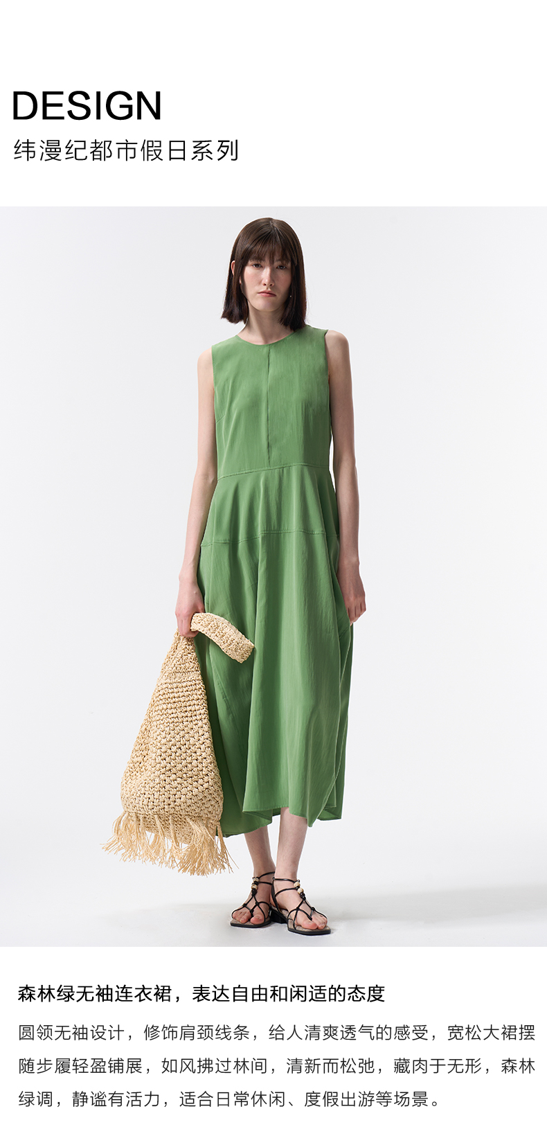 VIMAGE纬漫纪2026夏季新款慵懒宽松森林绿莫代尔无袖垂坠连衣裙V2507206