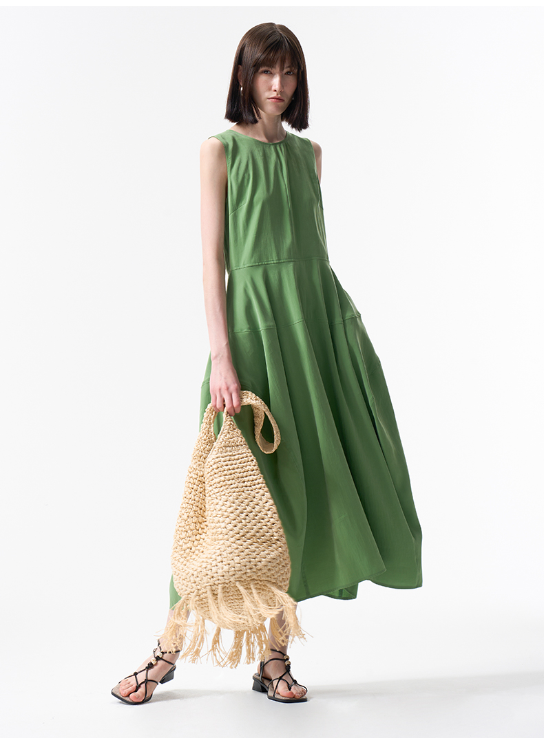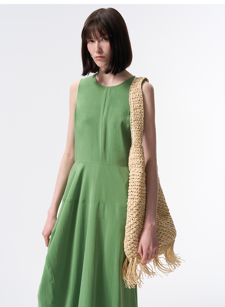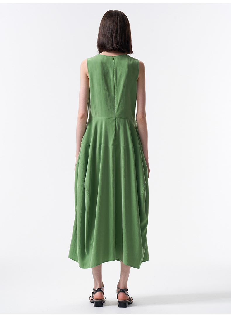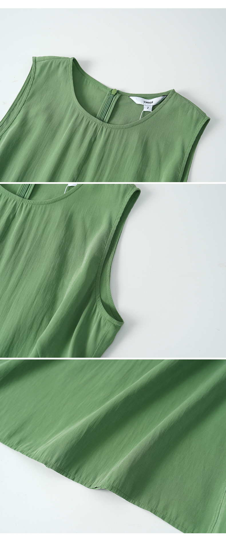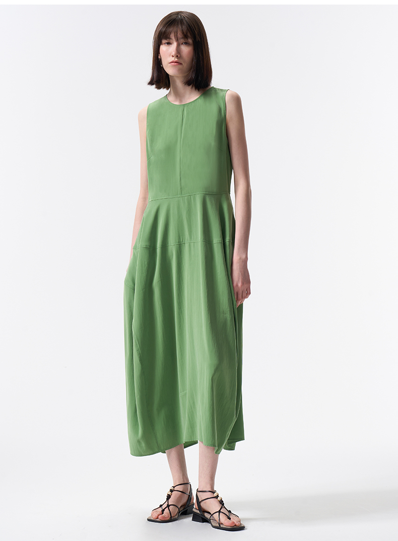 VIMAGE纬漫纪2026夏季新款慵懒宽松森林绿莫代尔无袖垂坠连衣裙V2507206