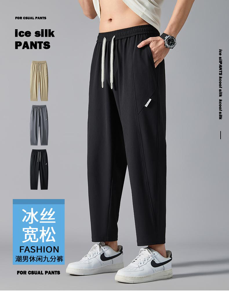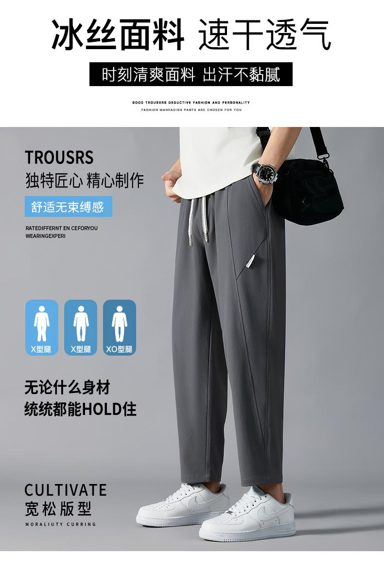 【超大码】【DH】大依优型大码潮流冰丝裤夏季裤子直筒加大码男士运动裤弹力空调裤胖子300斤
