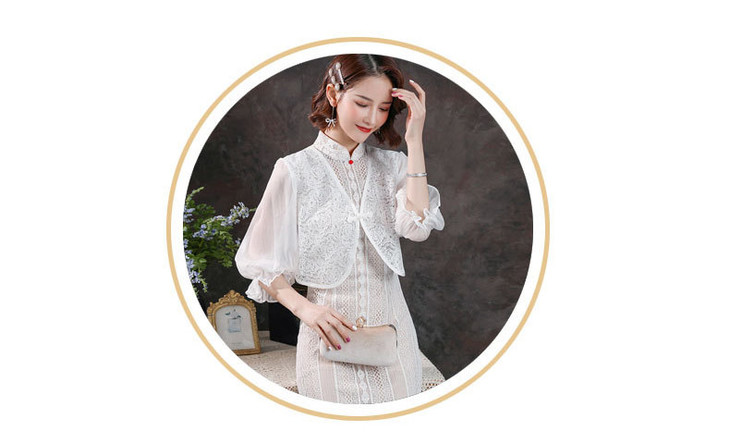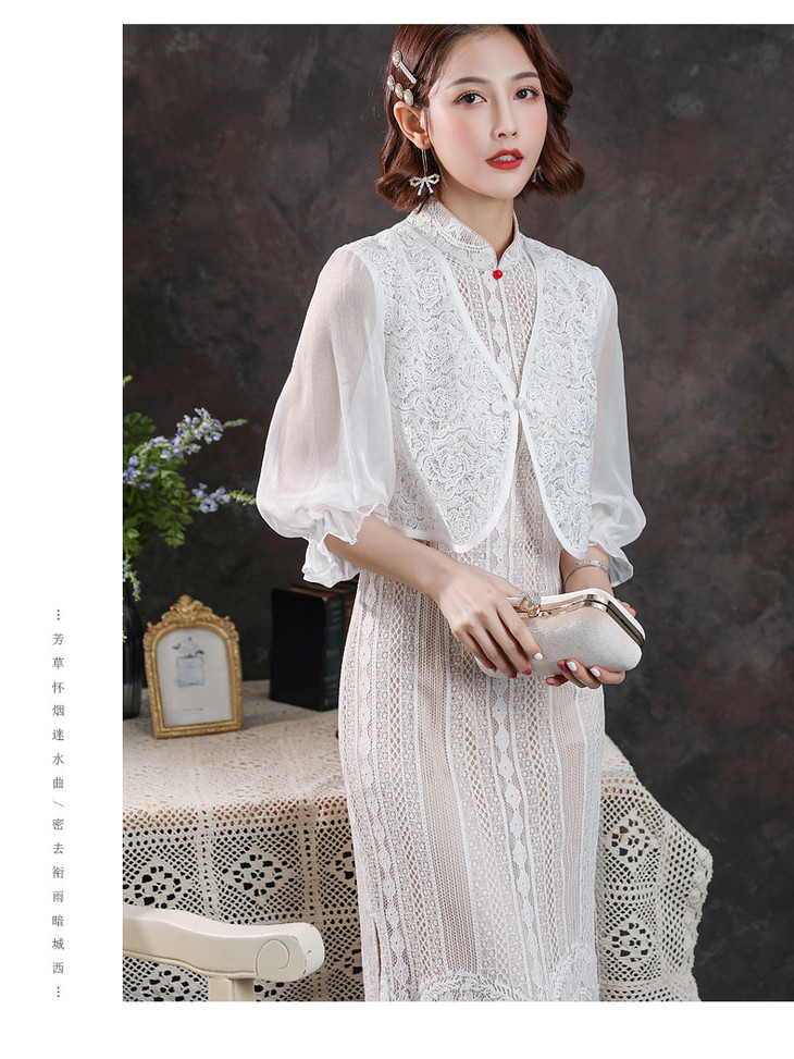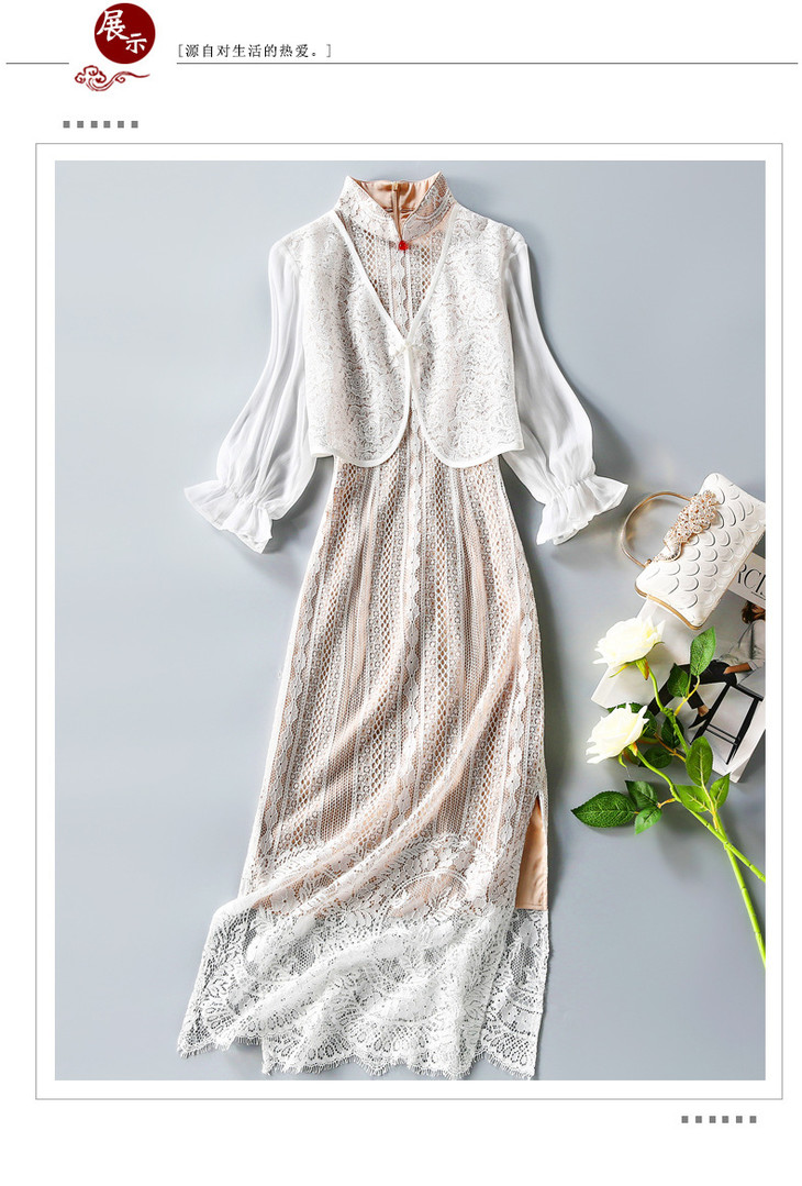 ZSM-200421修身改良高端蕾丝假两件灯笼袖旗袍