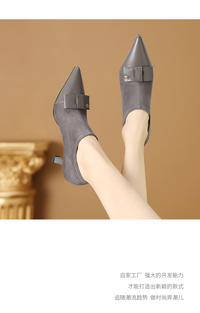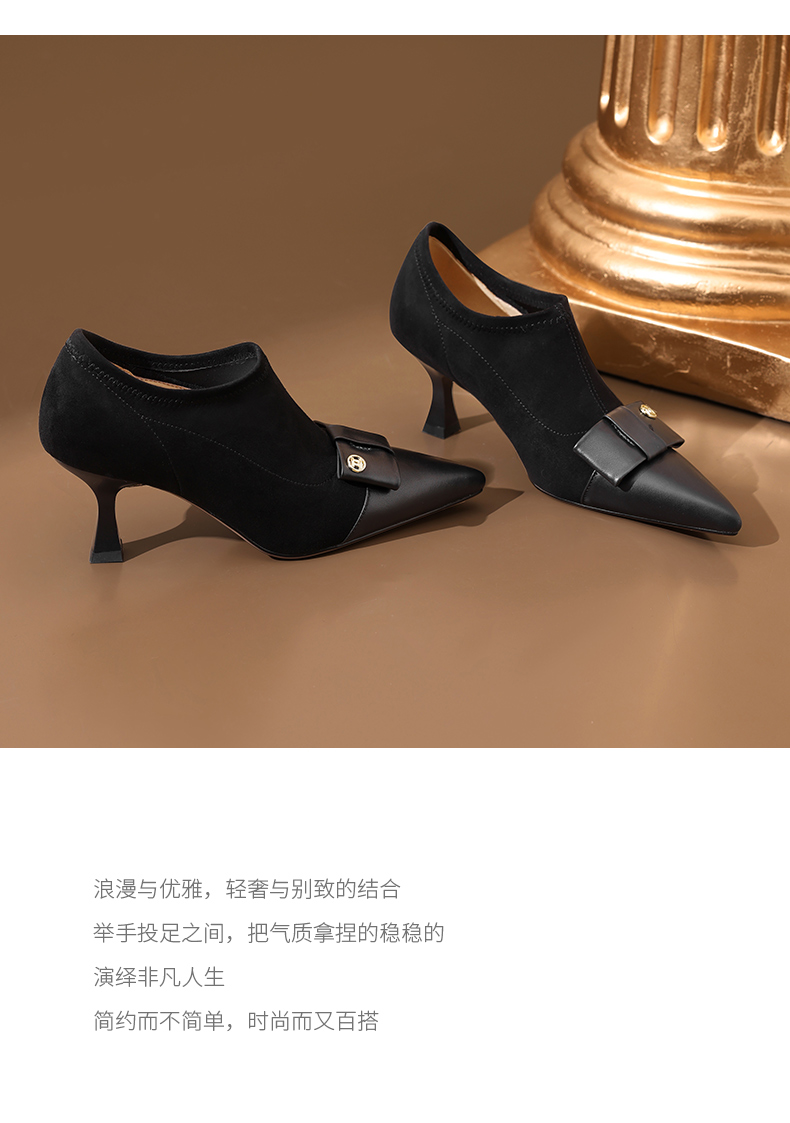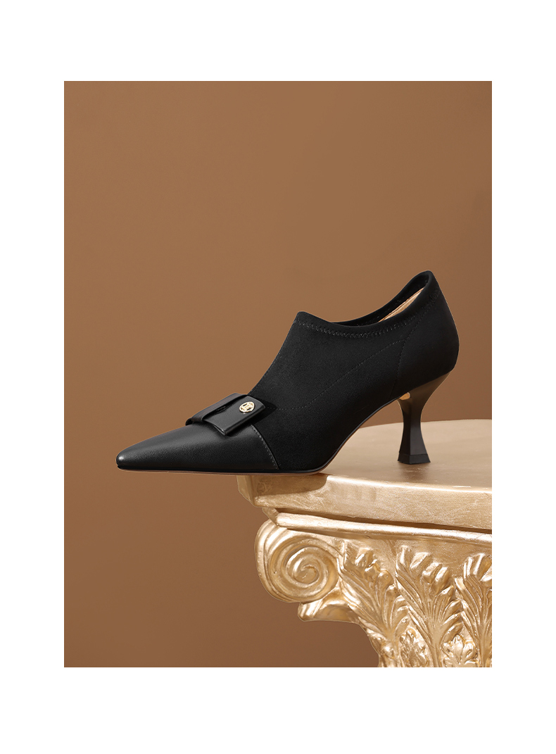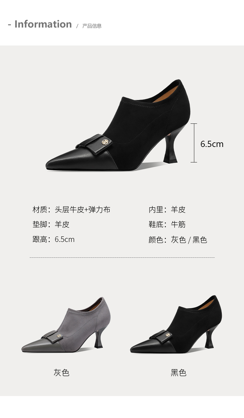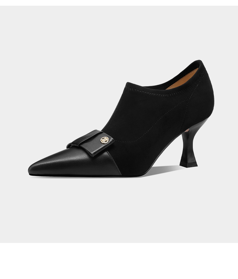 秋冬新款,尖头拼接弹力深口高跟单鞋SJS-S104-877