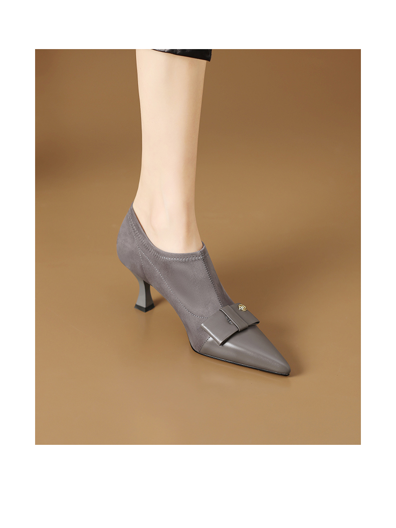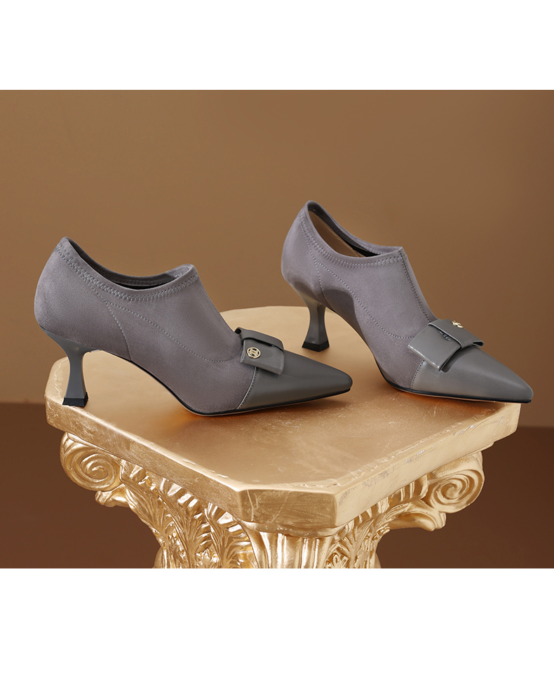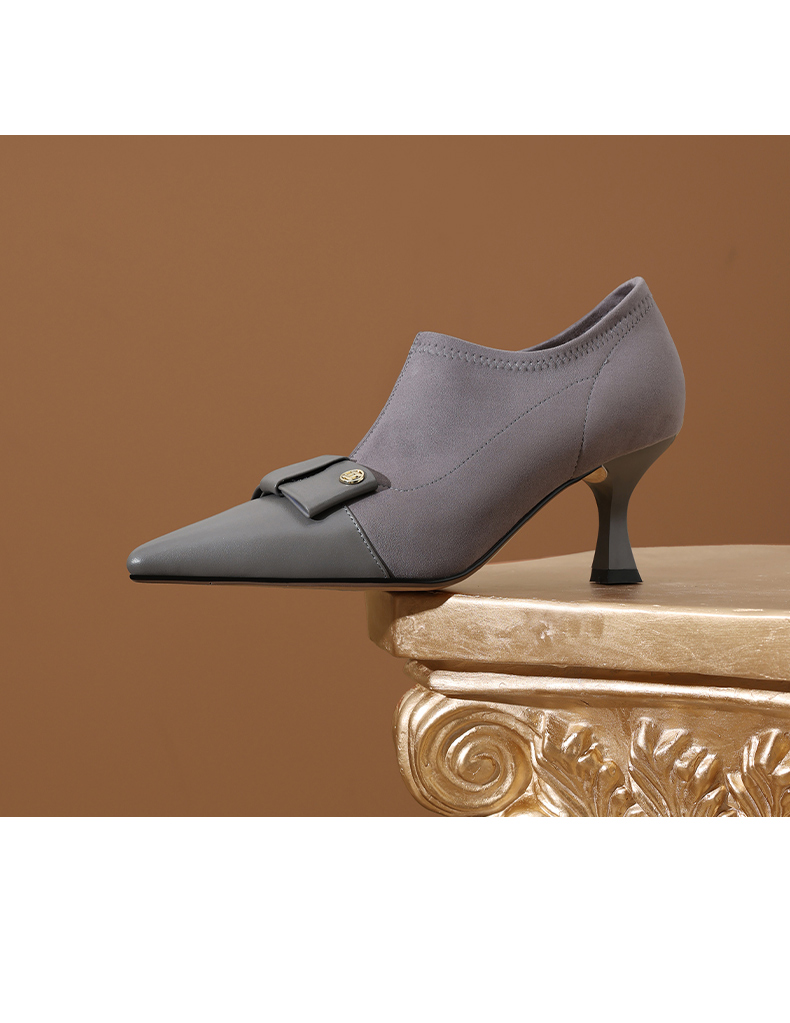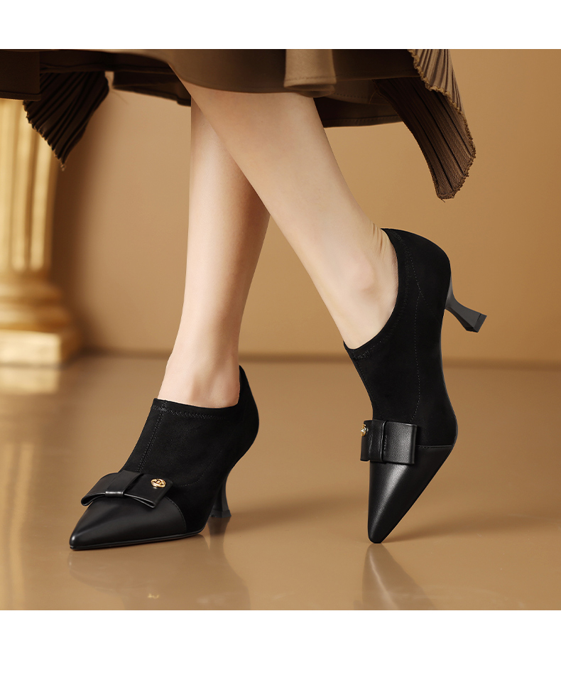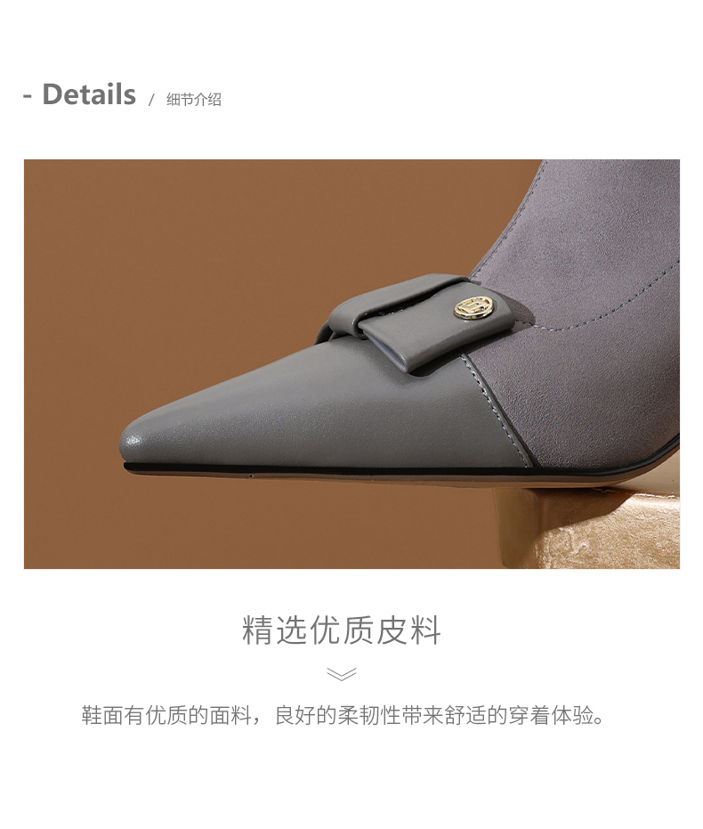秋冬新款,尖头拼接弹力深口高跟单鞋SJS-S104-877