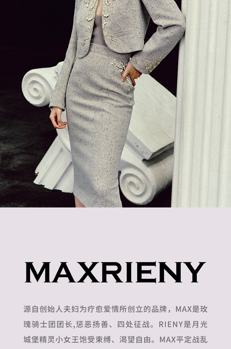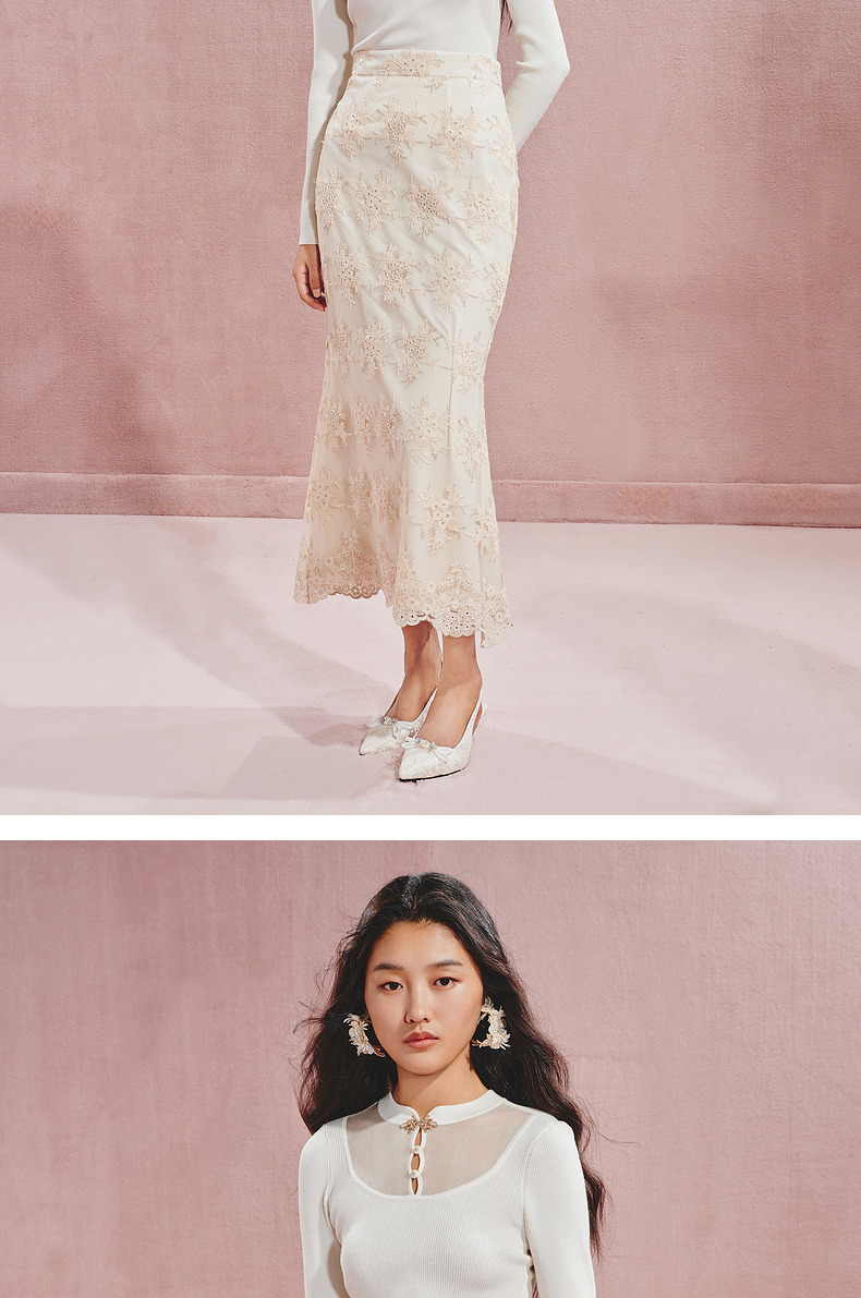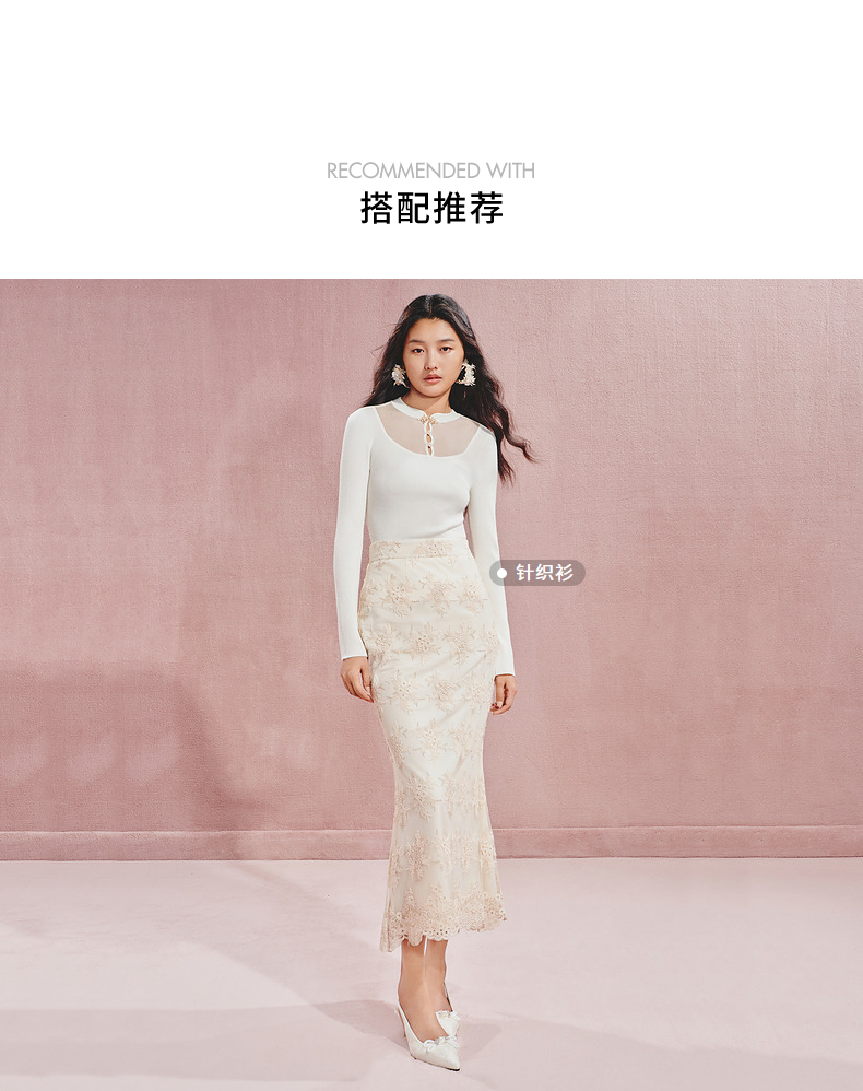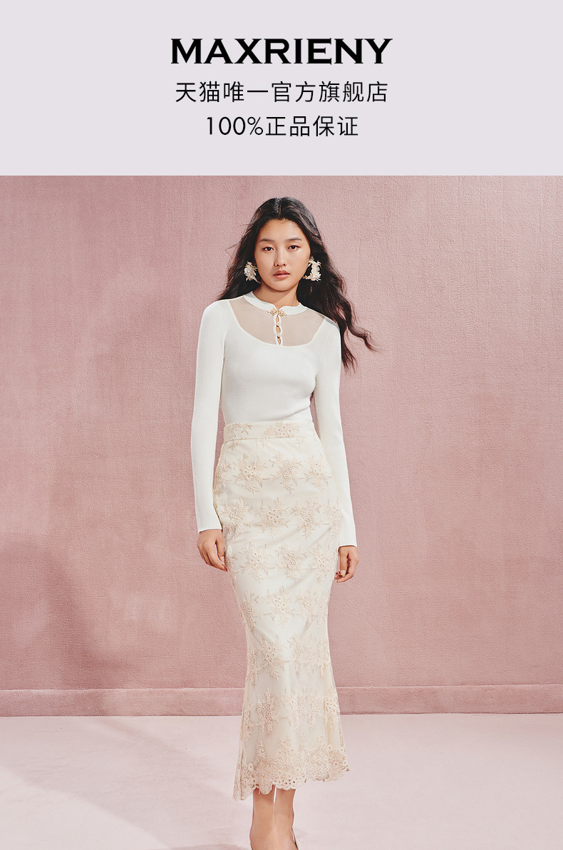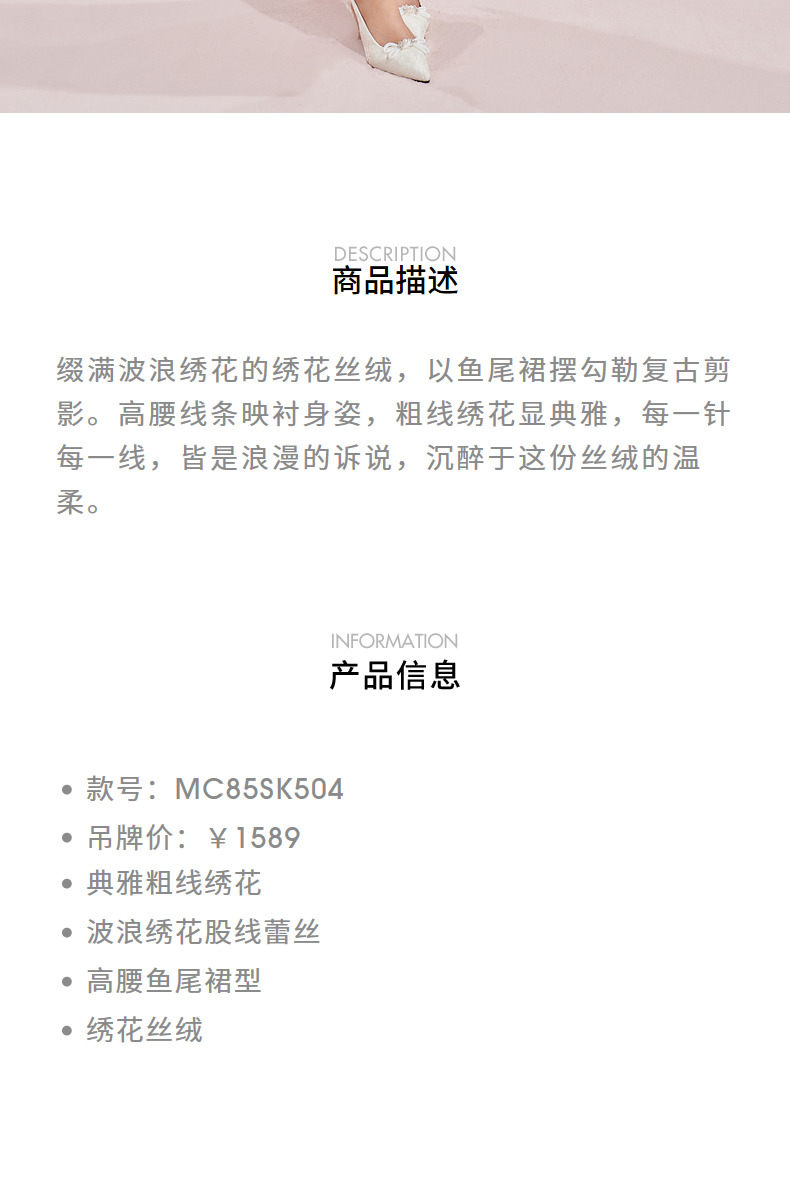 【宫廷巴洛克-商场同款】MAXRIENY复古浪漫感丝绒刺绣鱼尾半裙(货号:MC85SK504)