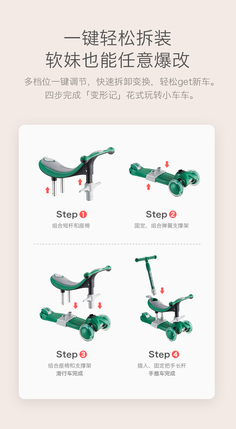 babycare儿童滑板车溜溜车6岁小孩三合一单脚踏板可坐骑滑滑车2岁