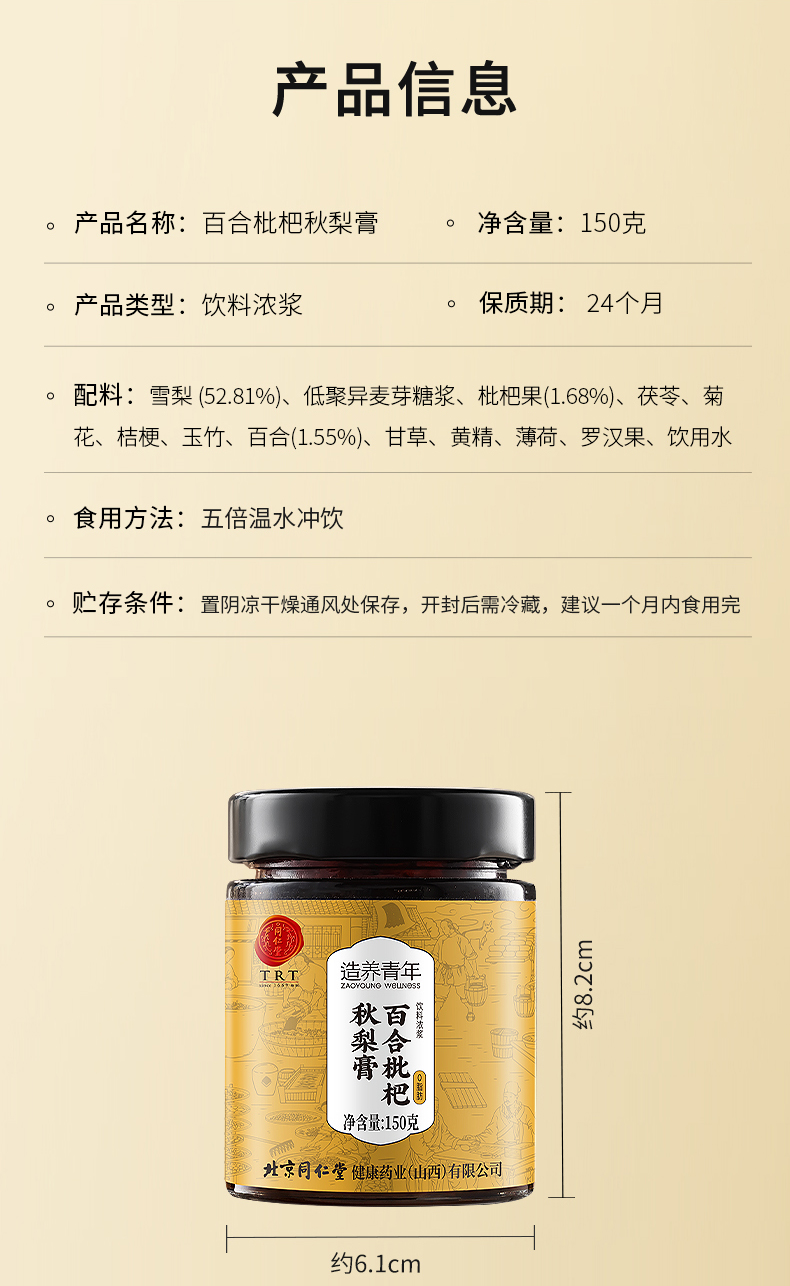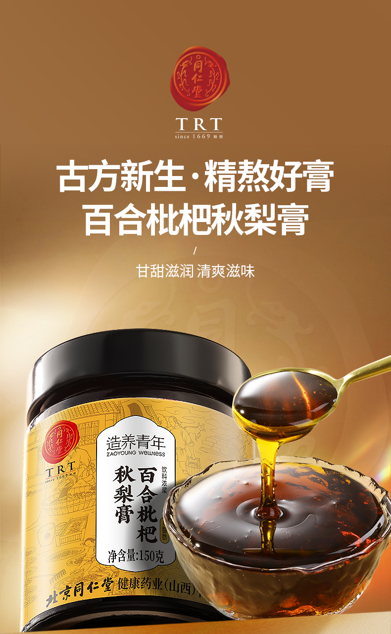 【正宗同仁堂品牌】北京同仁堂 造养青年 百合琵琶秋梨膏 150克 古法工艺 浓缩精华 SY