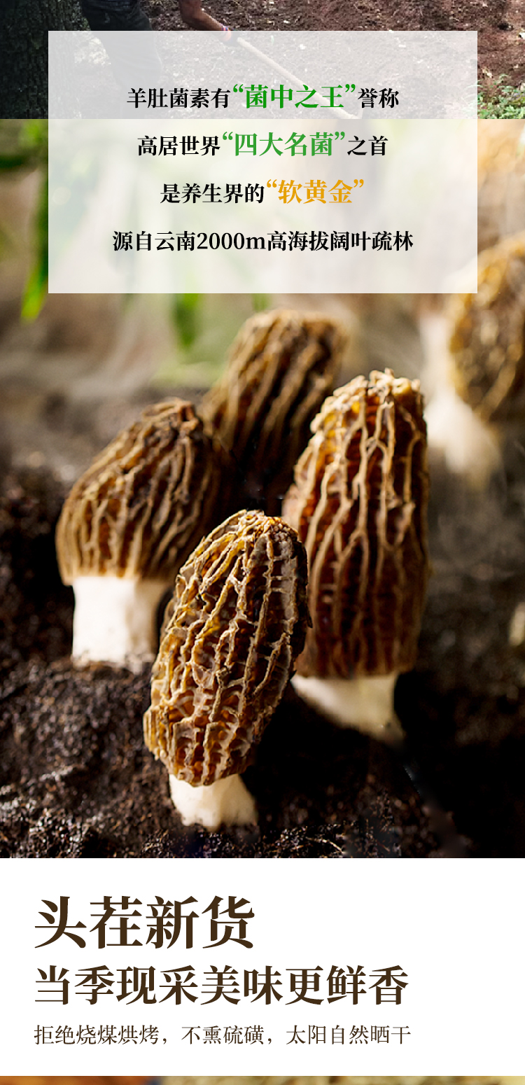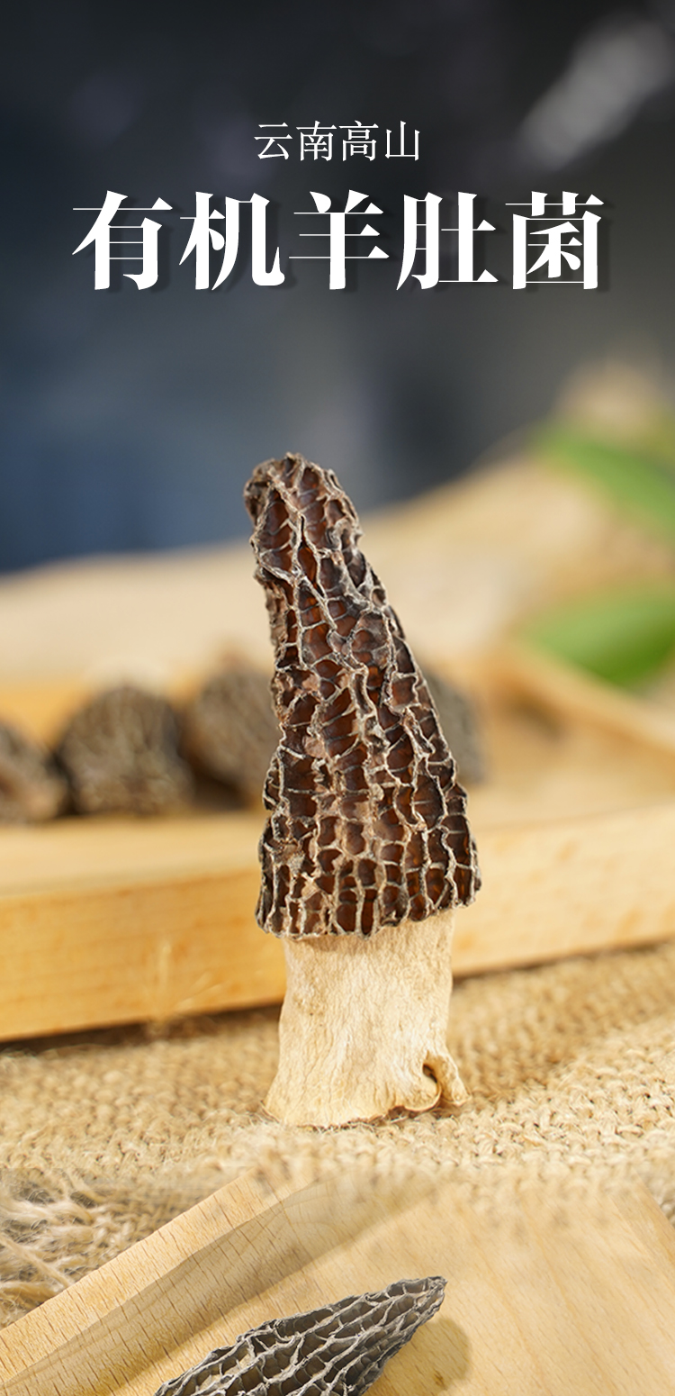 【云南高山有机羊肚菌】头茬新货 太阳自然晒干 精挑细选 大小均匀 纹路清晰 煲汤 炖煮 素炒皆可 2种规格任选