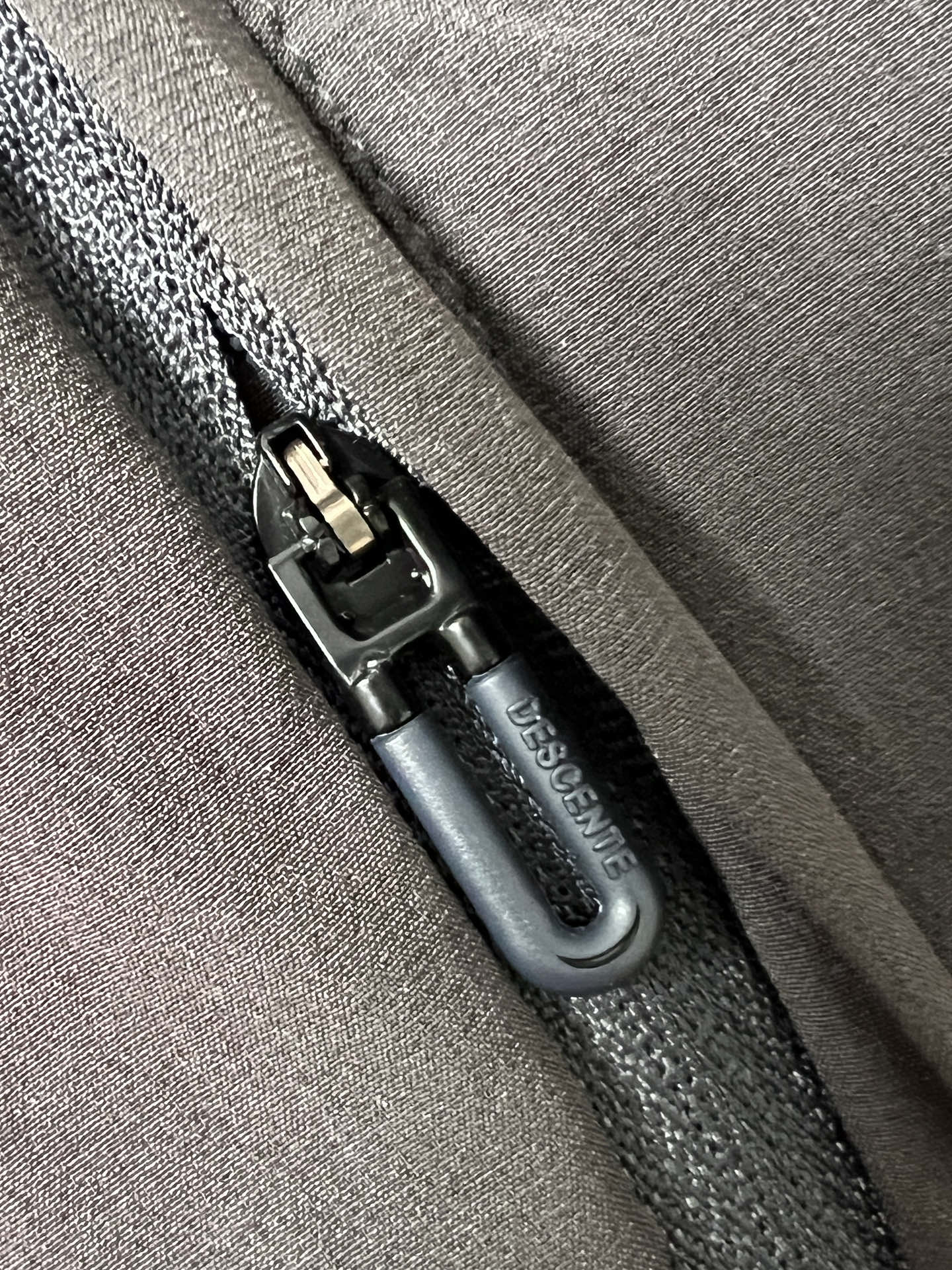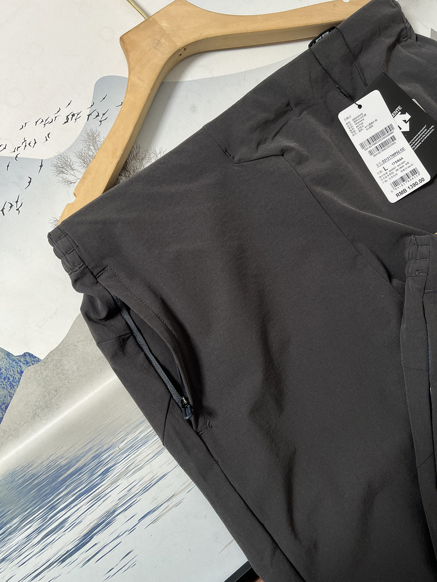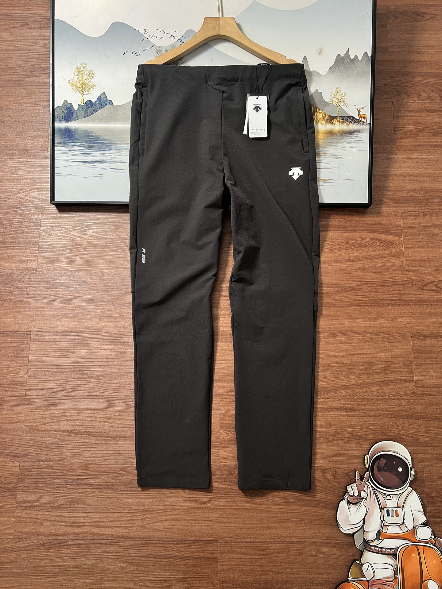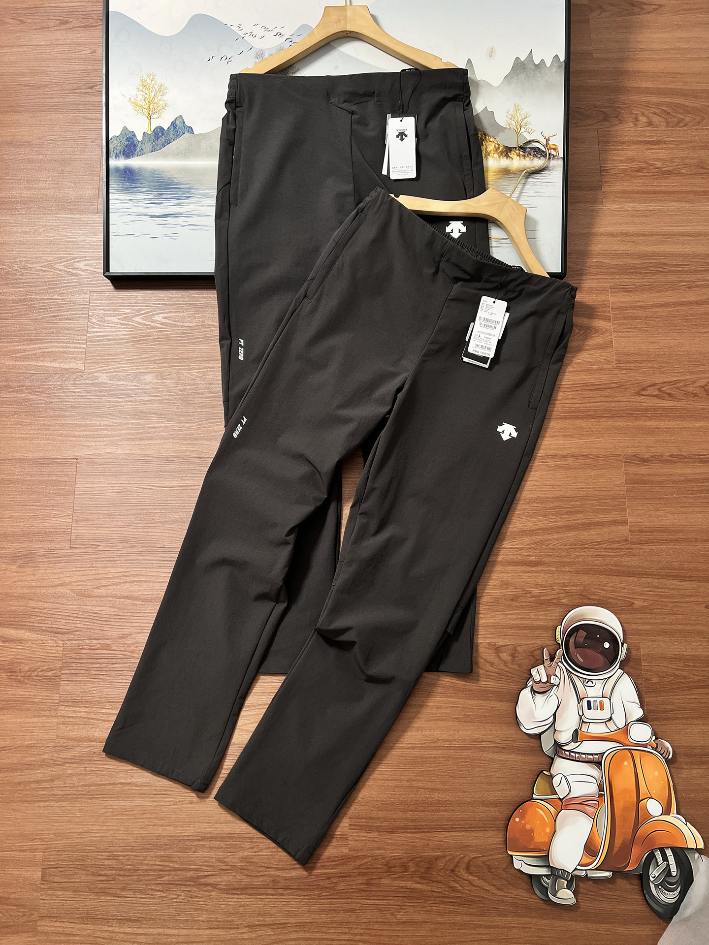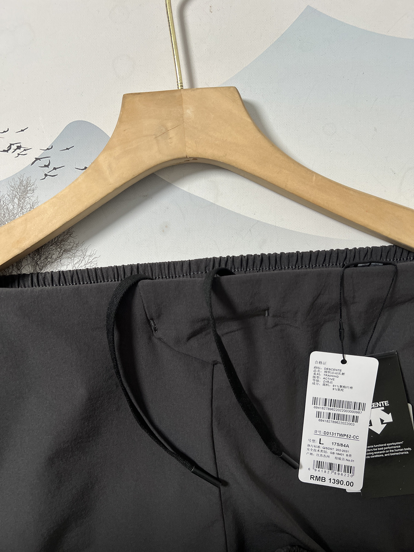 腰间松紧拉绳设计,可任意拉伸松紧,适合多种身材。腰间两侧各有一个口袋,并且为拉链设计,可方便存放一些易丢物品,便捷实用。口袋下方印有迪桑特标志,小小的标志低调而又有一番风味。右口袋下方印有一些字母,给单调的裤子增添了些许特点,不会太繁杂,让人看着舒服。
