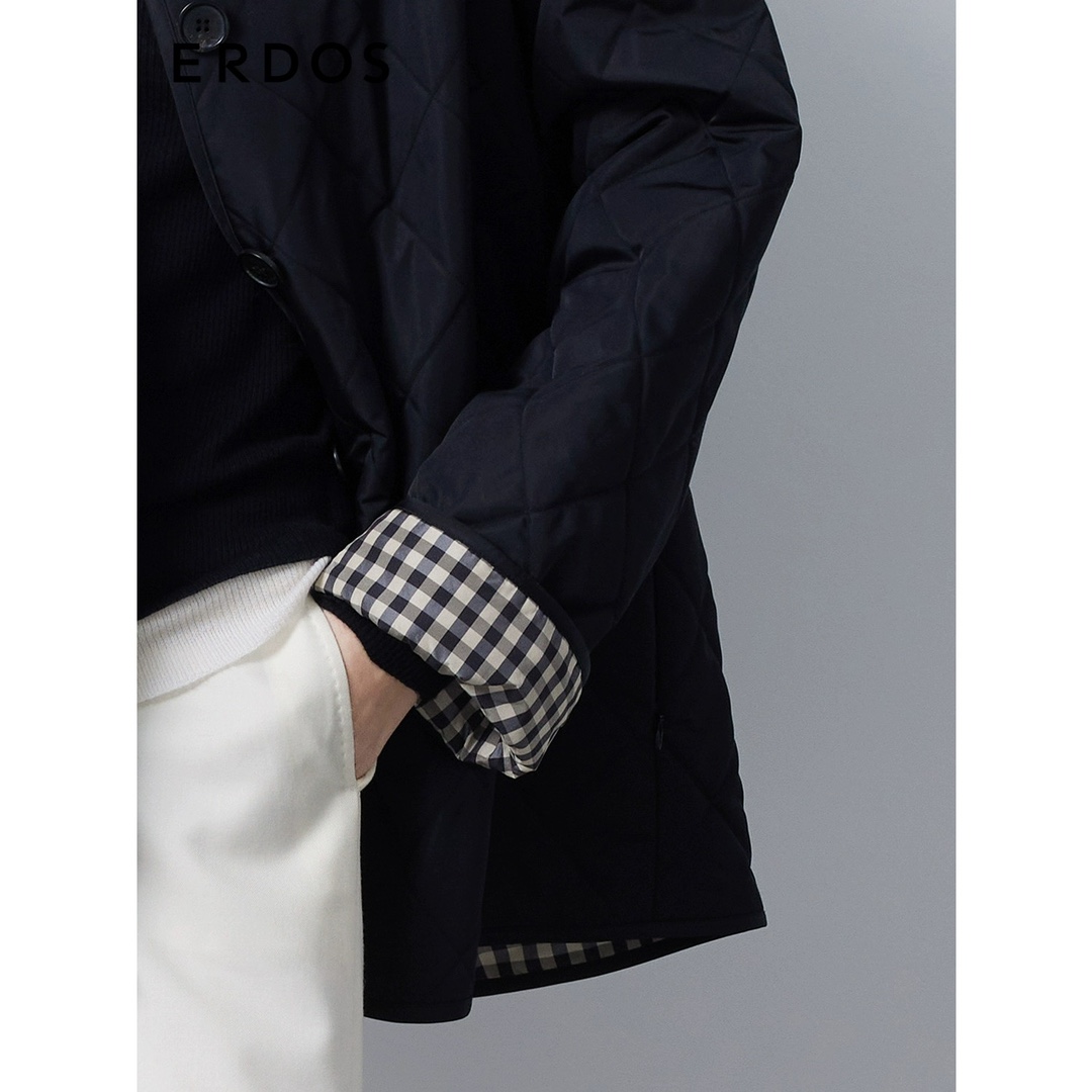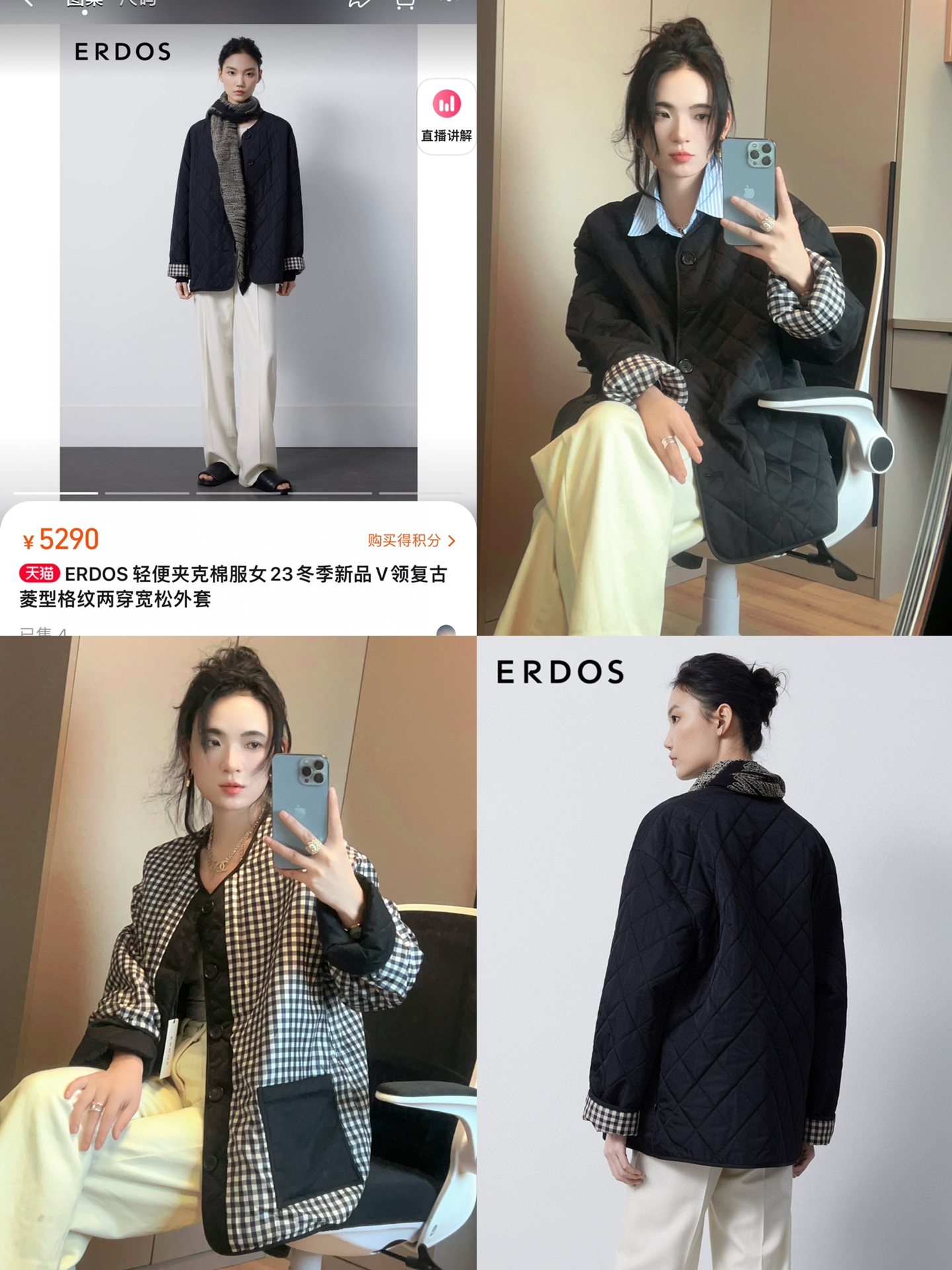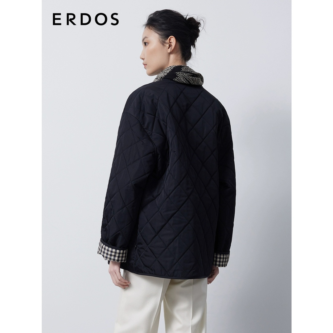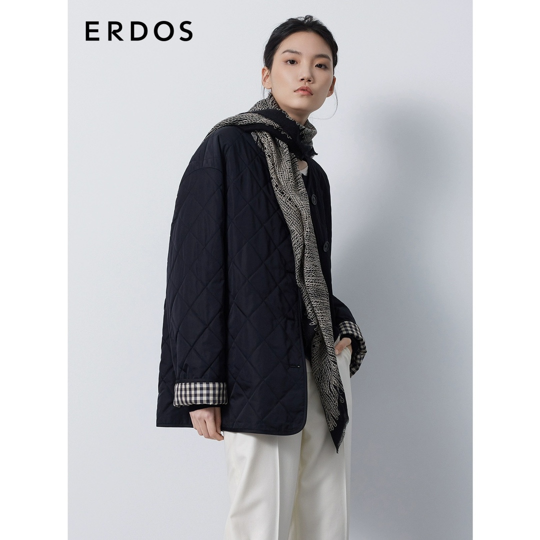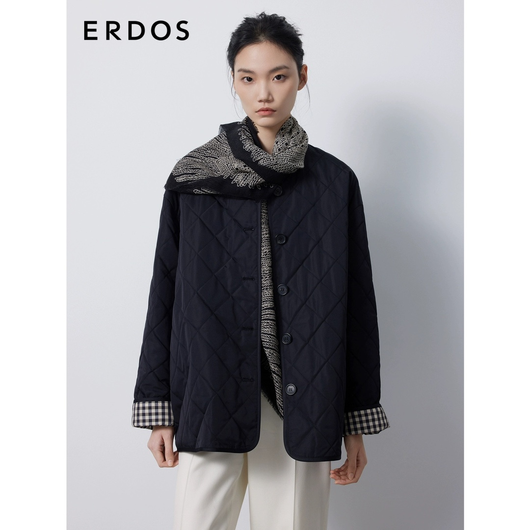 ERD&OS 轻便夹克棉服女23冬季新品V领复古菱型格纹两穿宽松外套,正反两面穿!