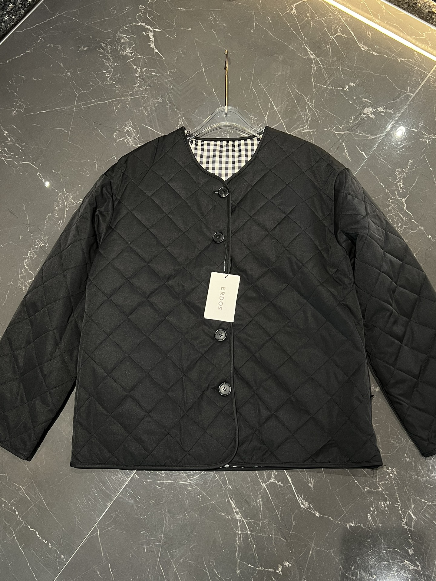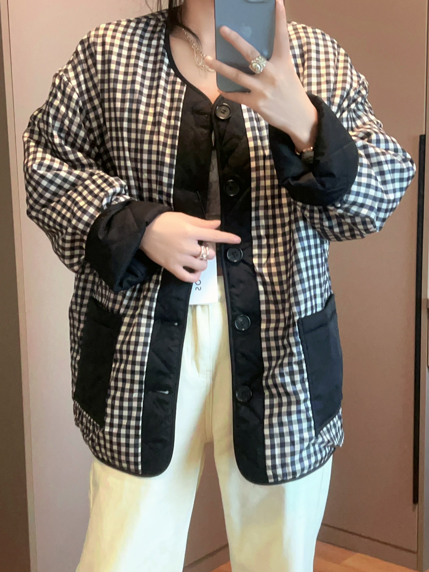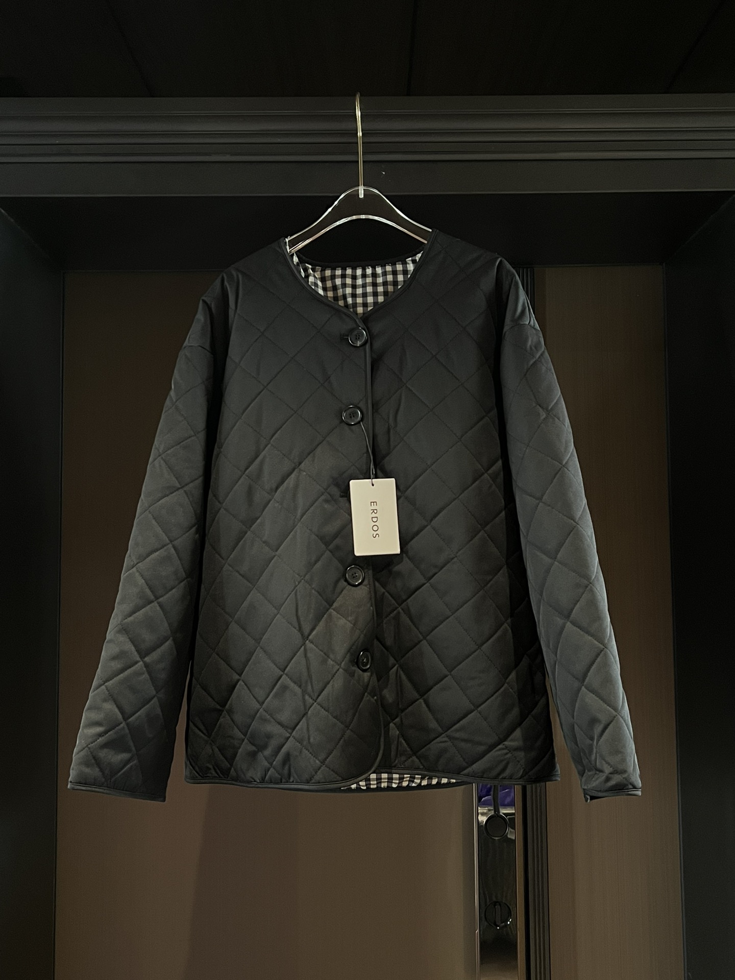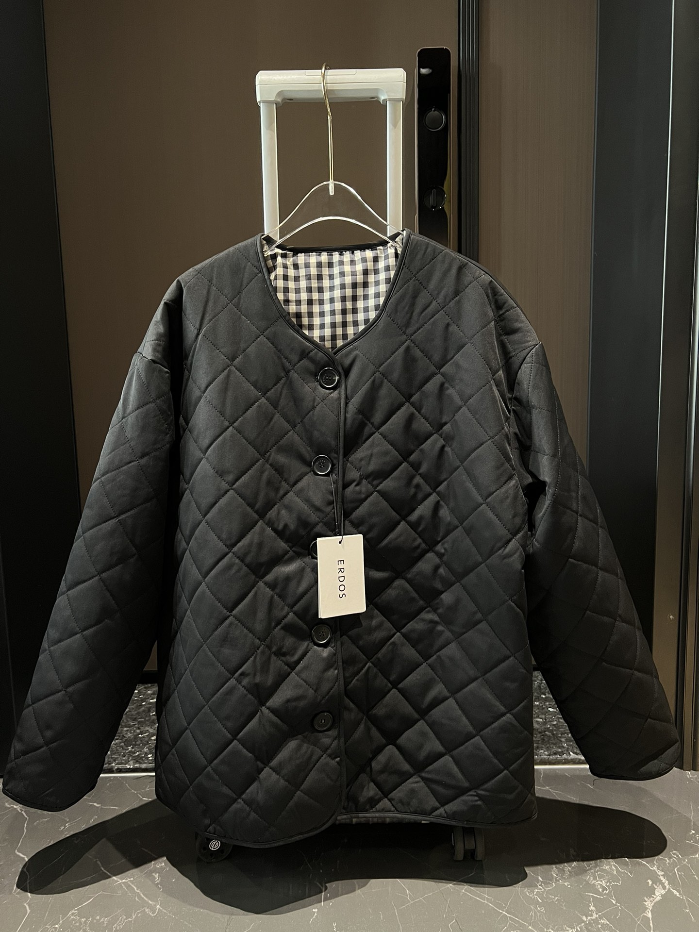 ERD&OS 轻便夹克棉服女23冬季新品V领复古菱型格纹两穿宽松外套,正反两面穿!