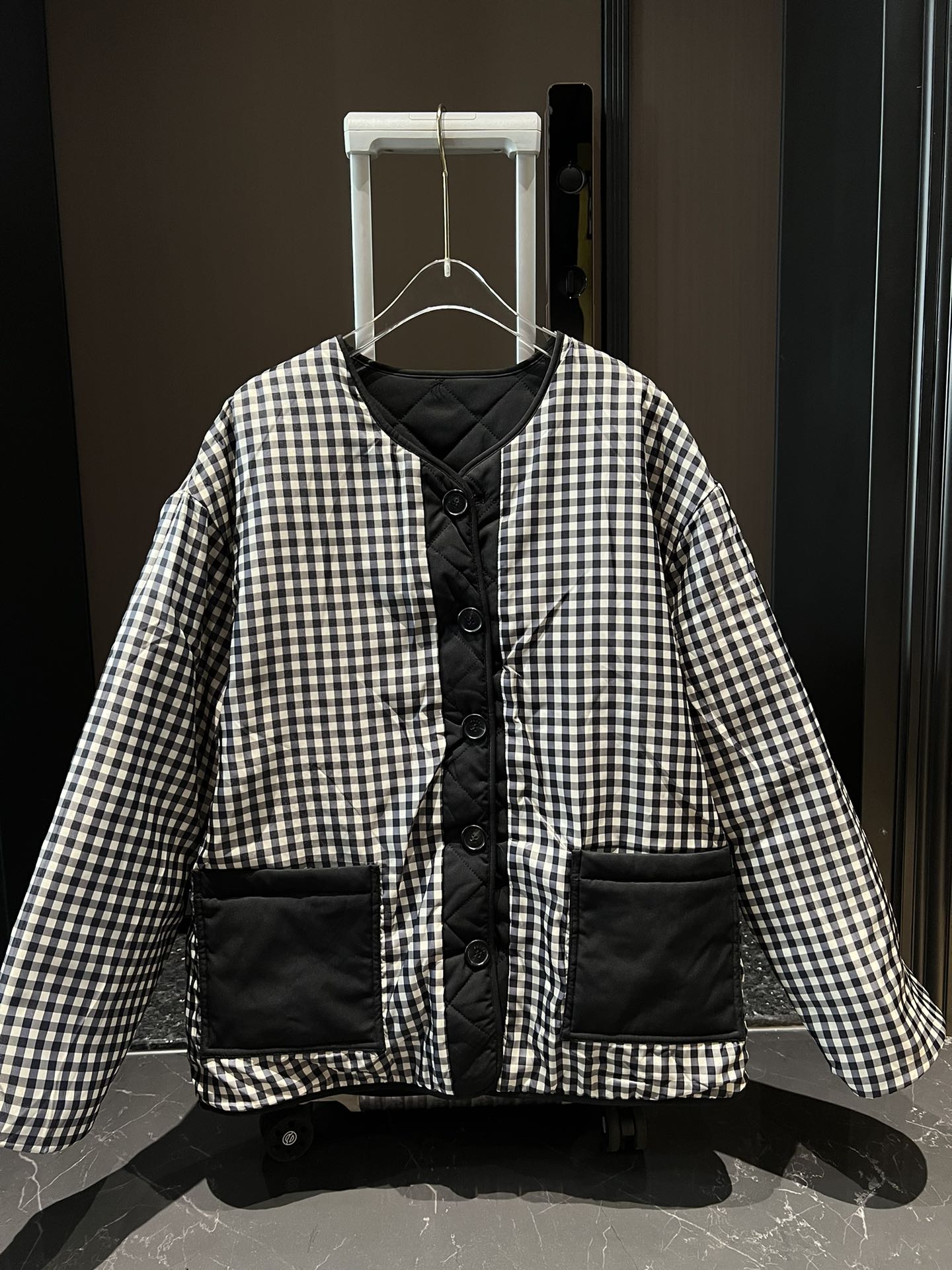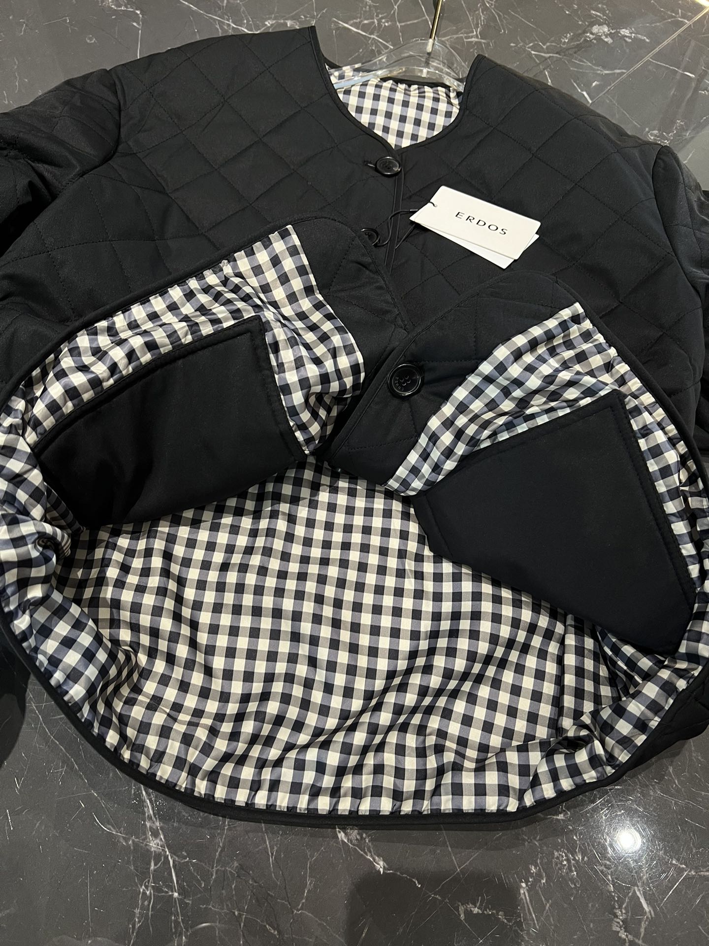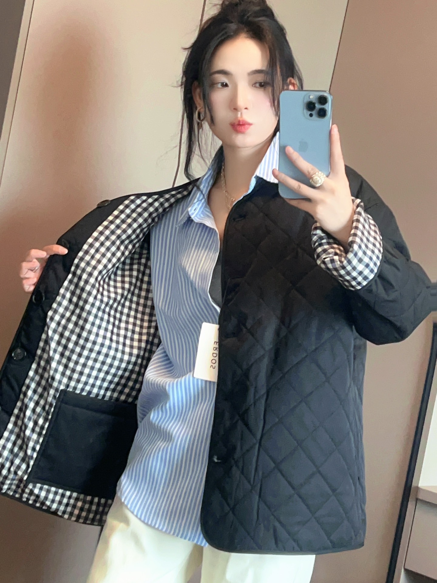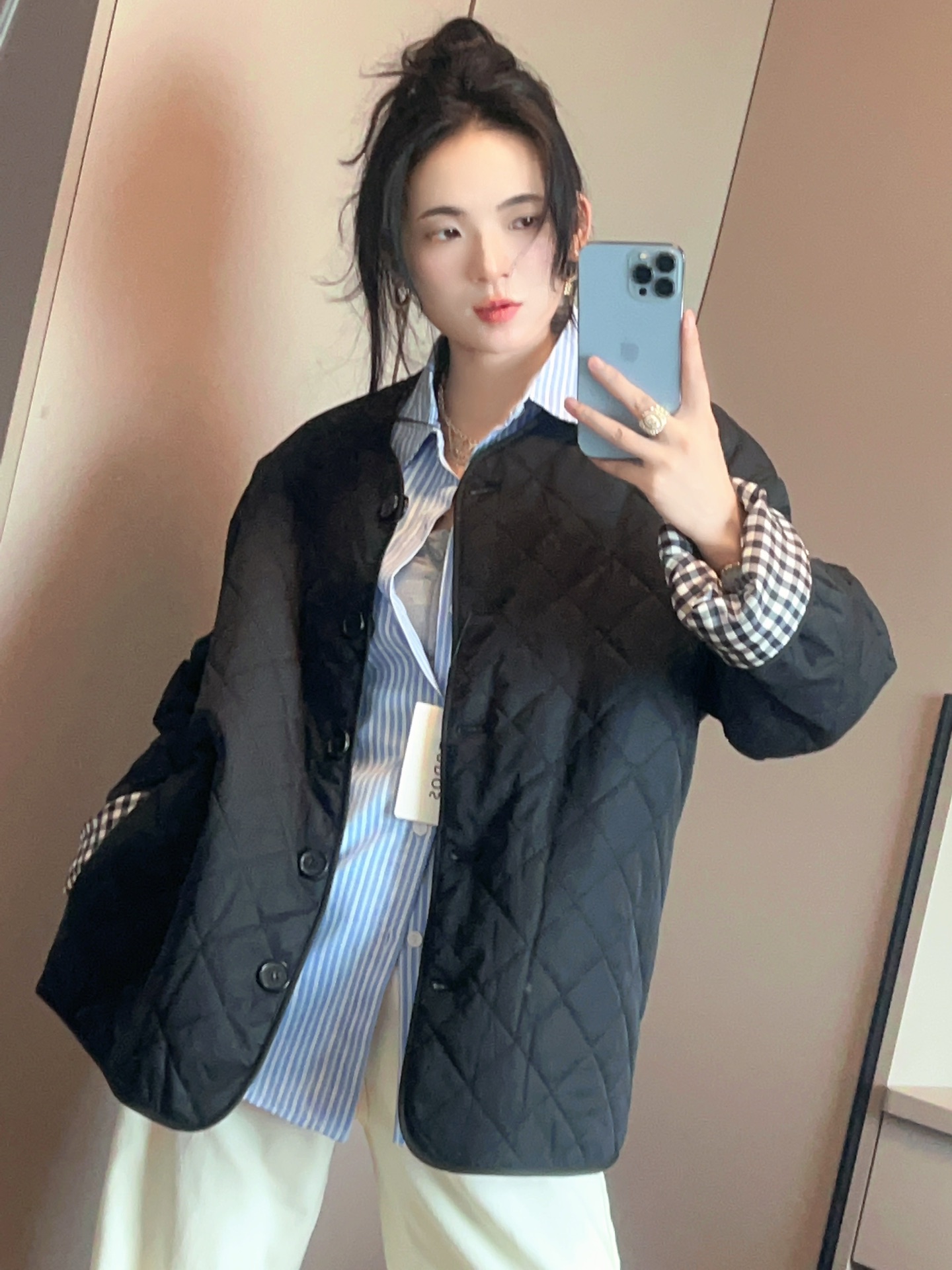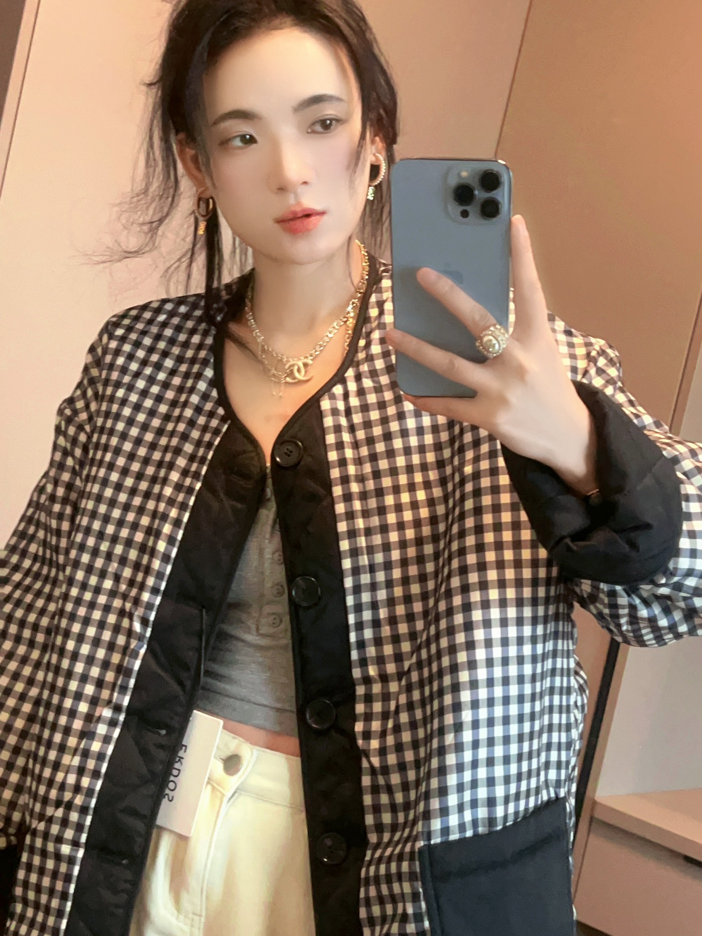 ERD&OS 轻便夹克棉服女23冬季新品V领复古菱型格纹两穿宽松外套,正反两面穿!