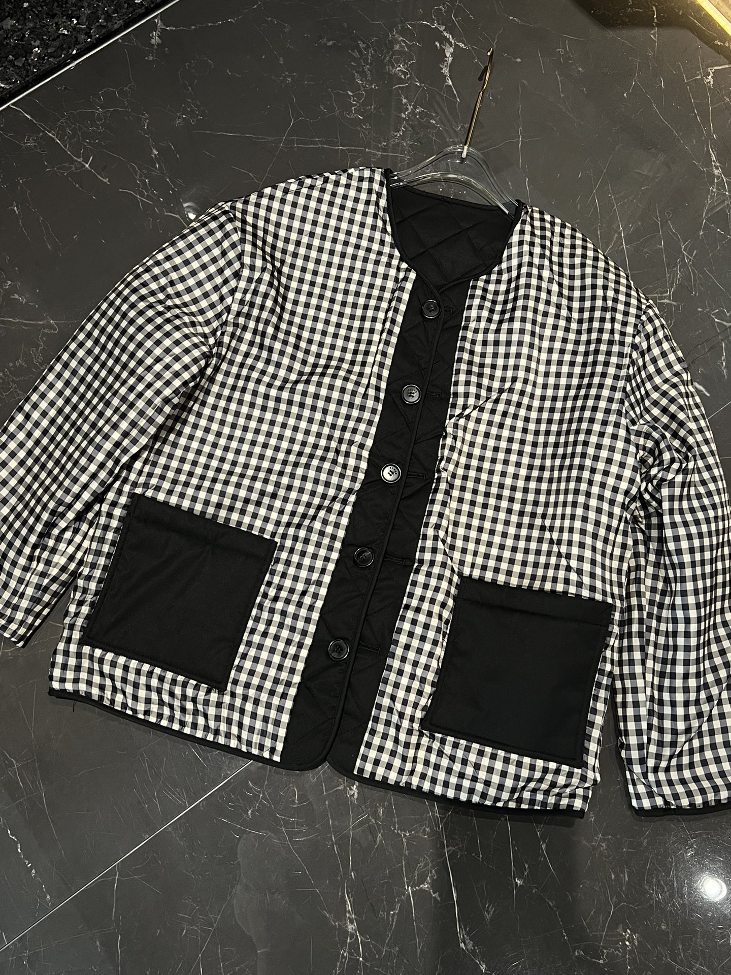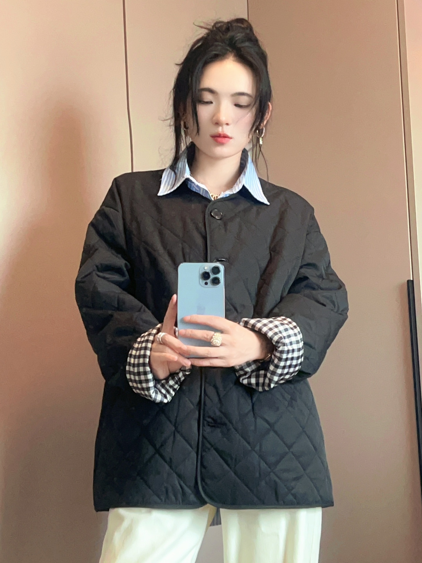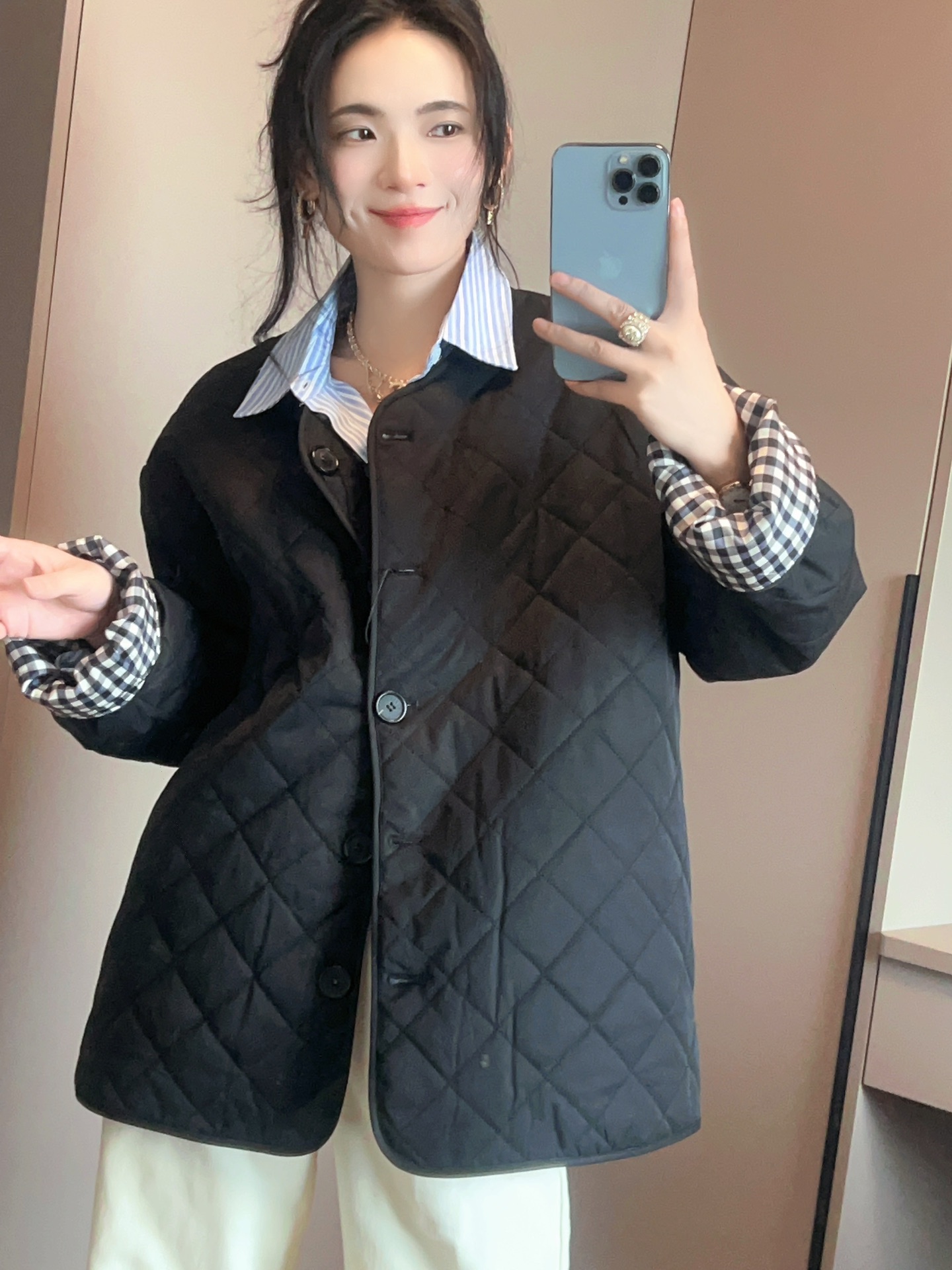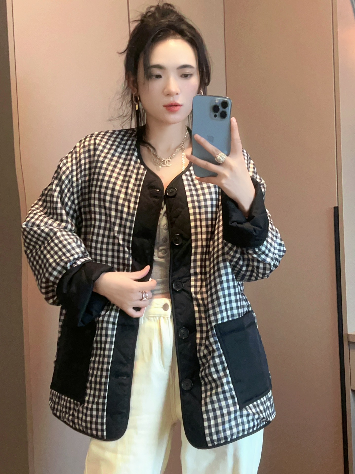 ERD&OS 轻便夹克棉服女23冬季新品V领复古菱型格纹两穿宽松外套,正反两面穿!