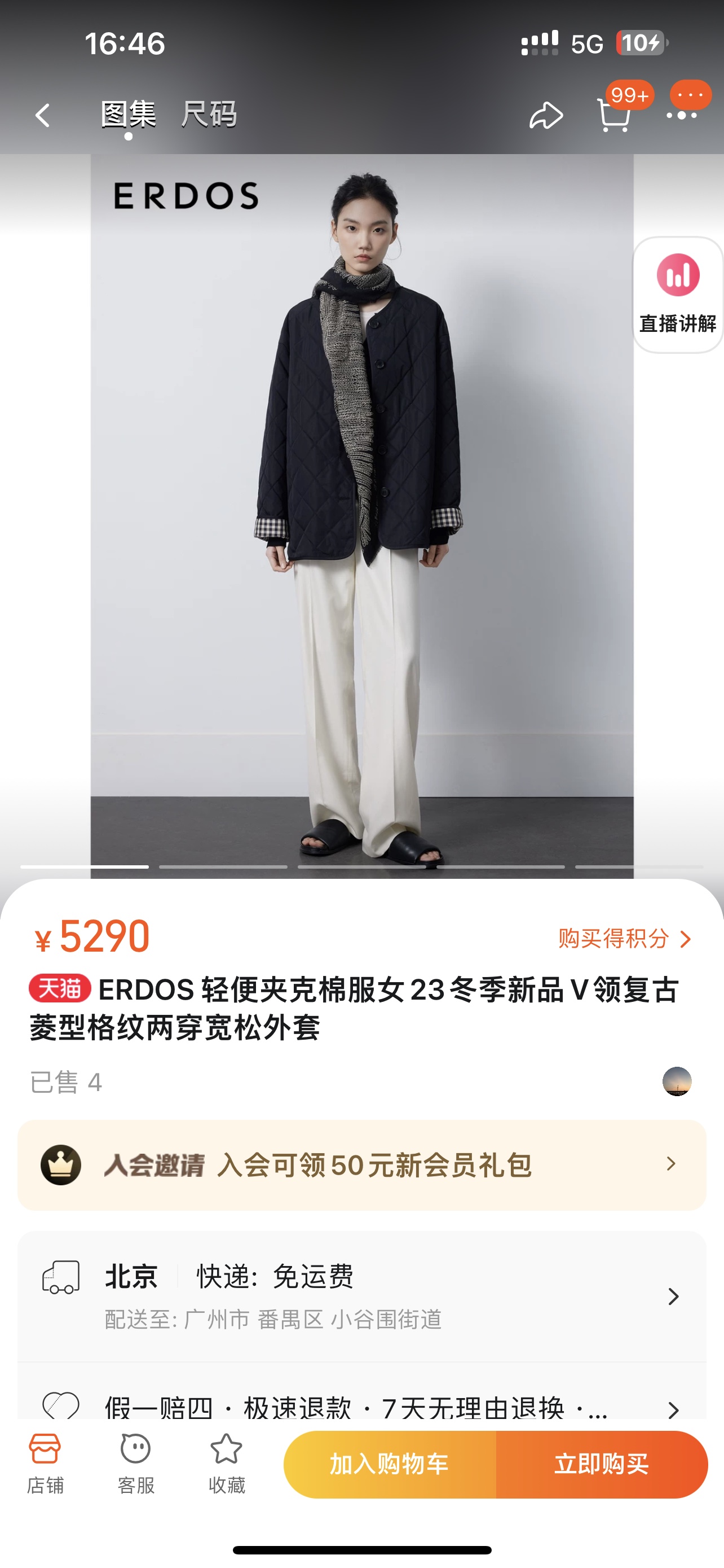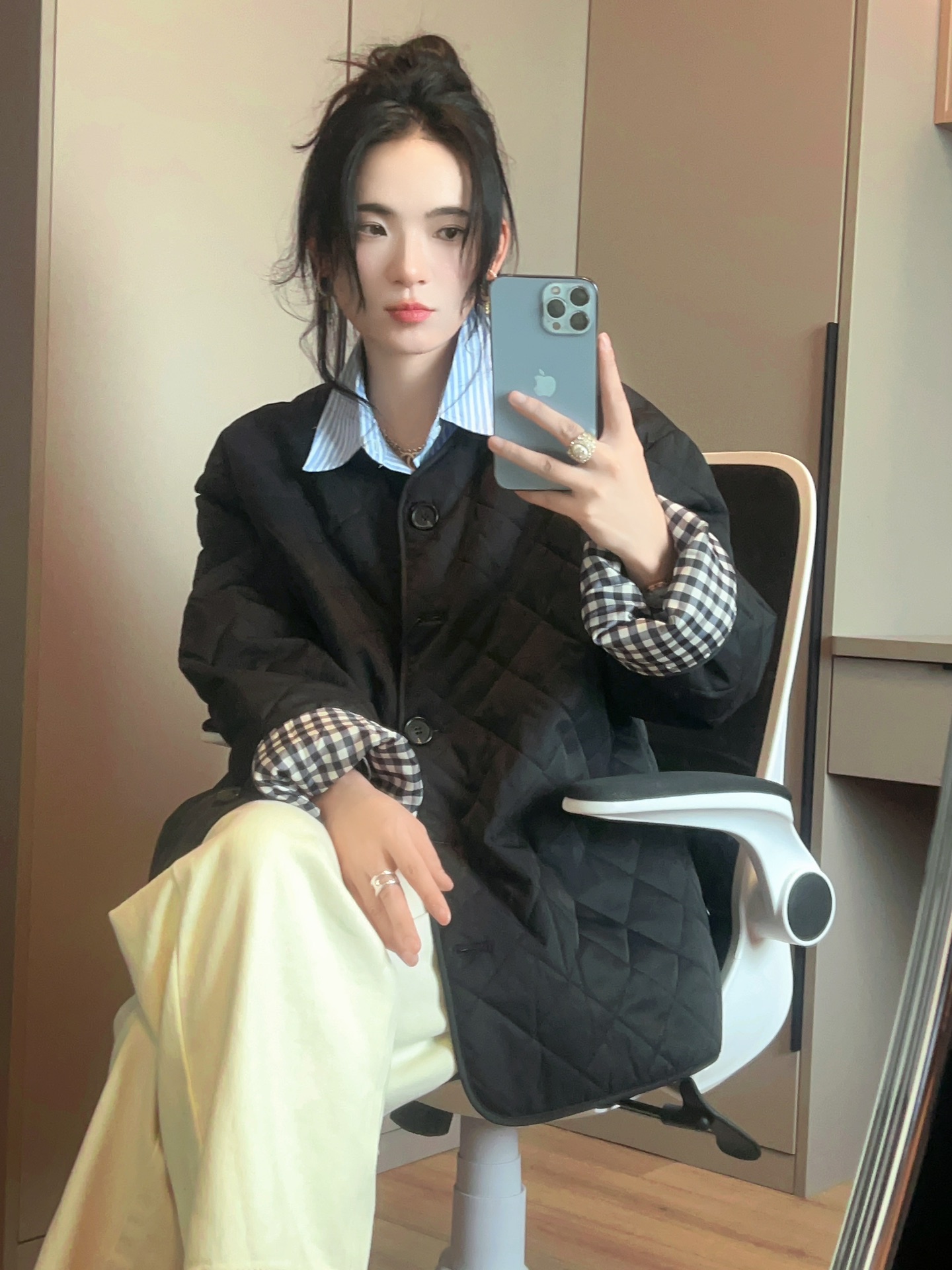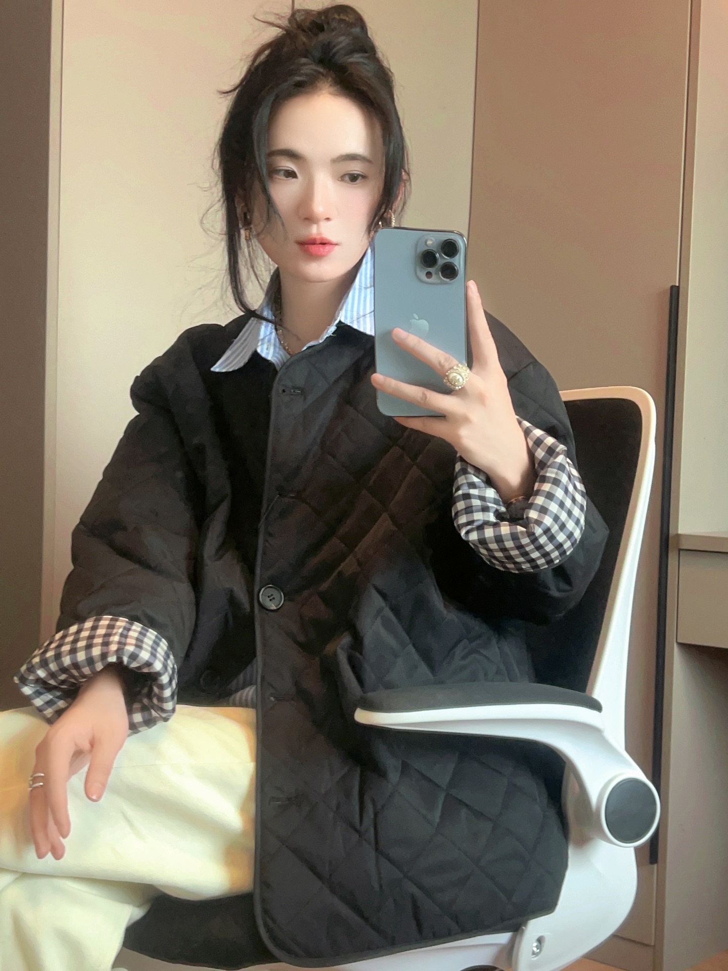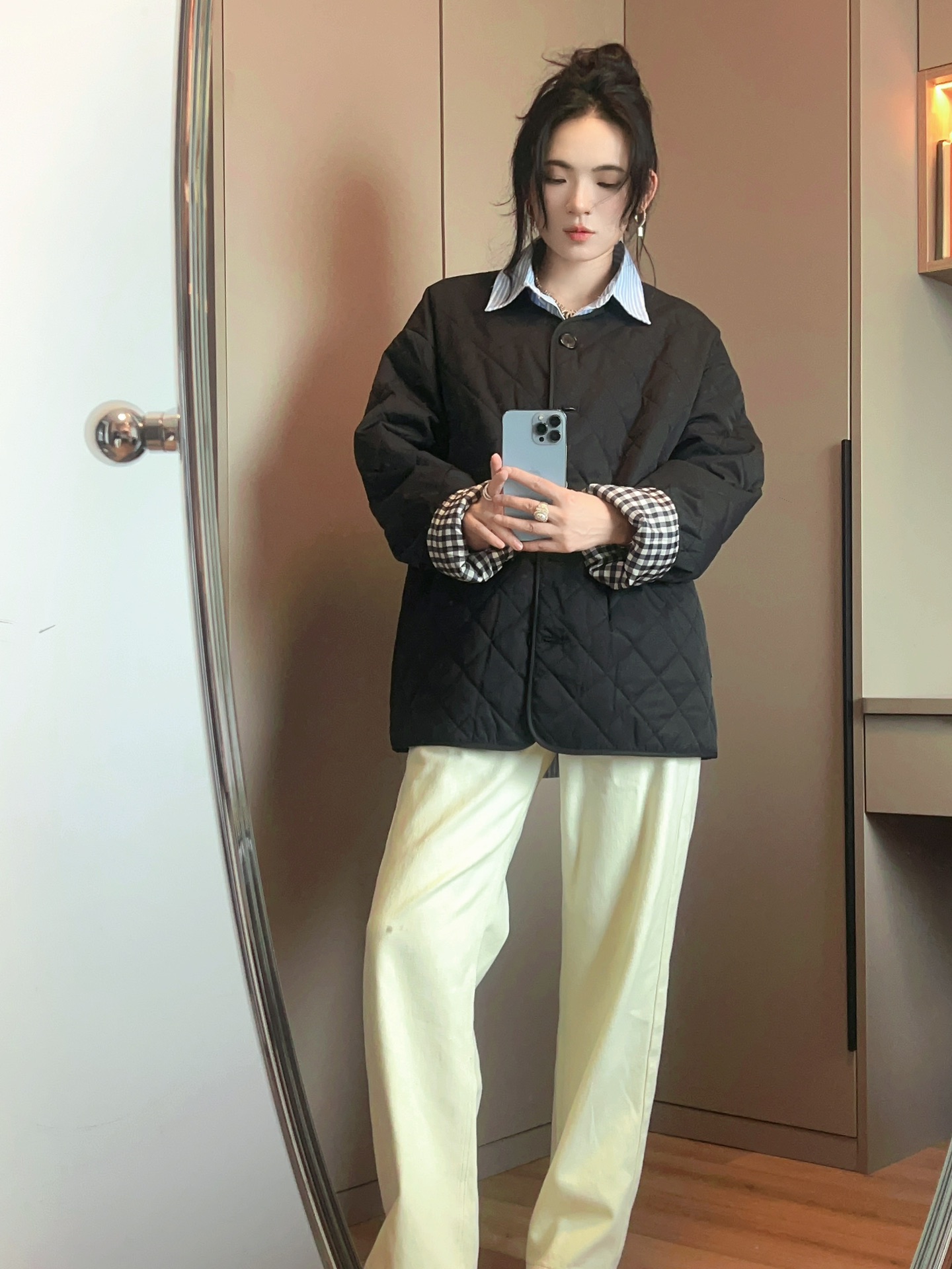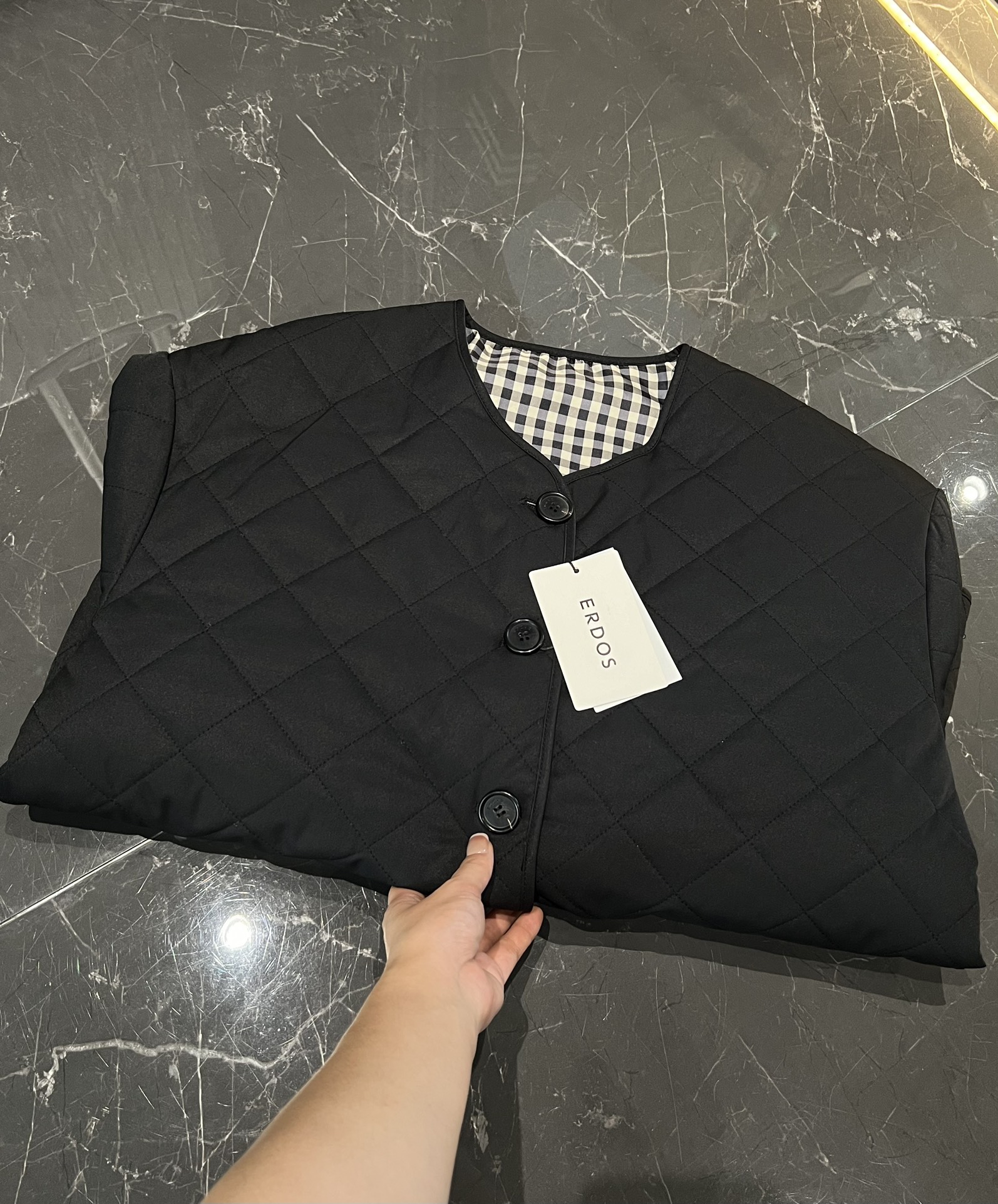 ERD&OS 轻便夹克棉服女23冬季新品V领复古菱型格纹两穿宽松外套,正反两面穿!