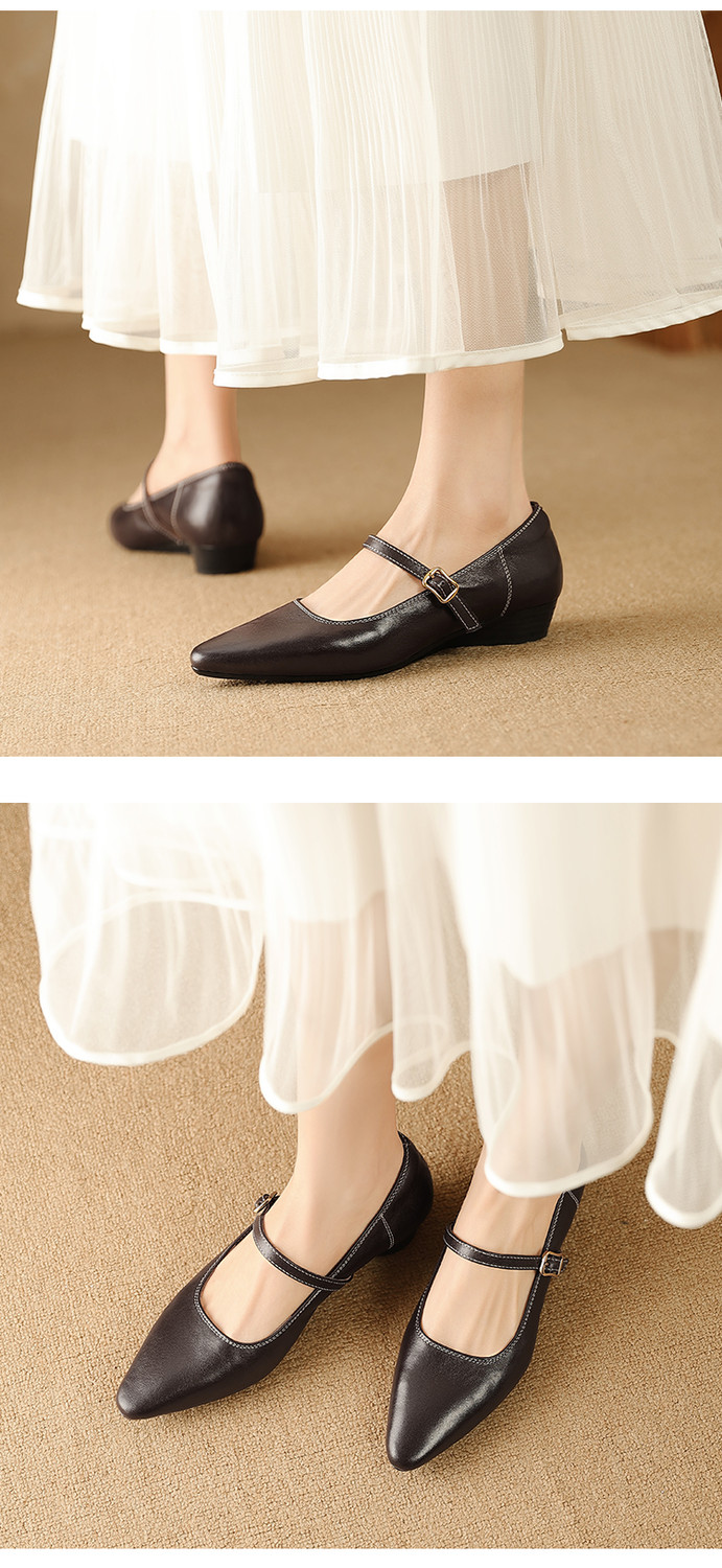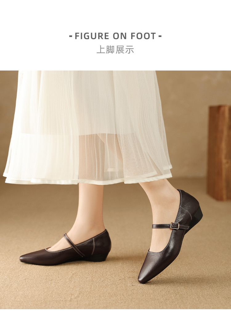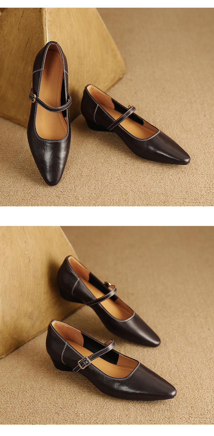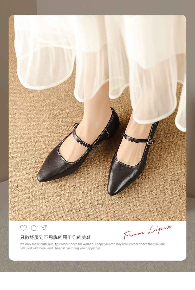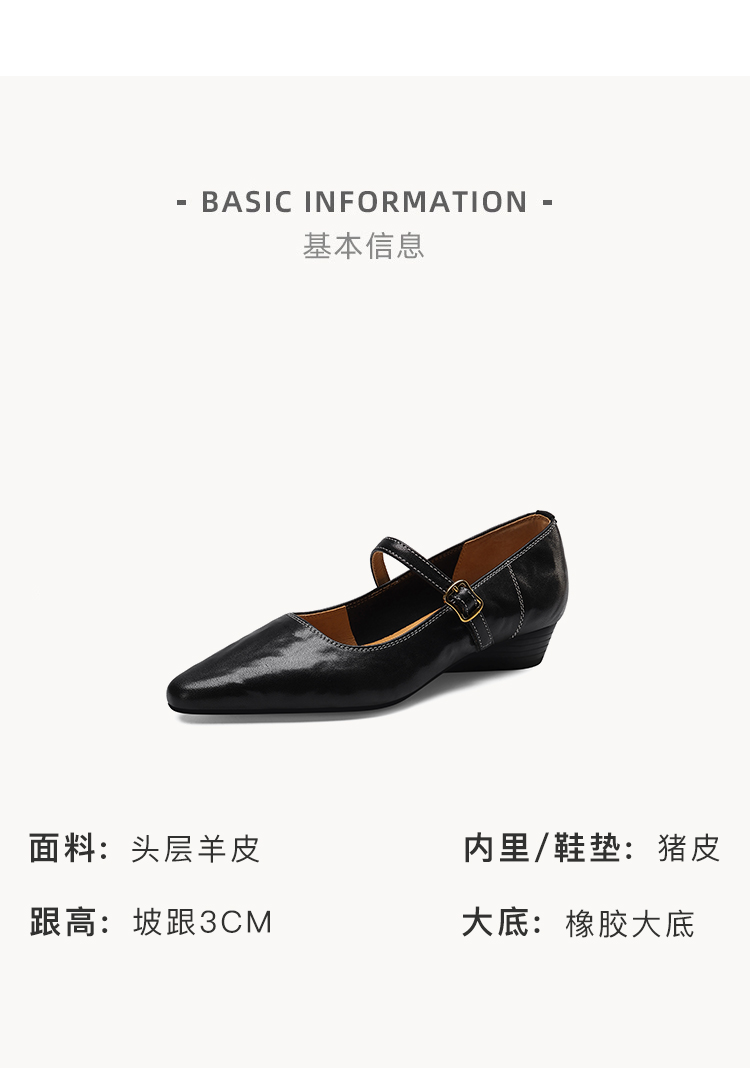 【预售5天】复古时尚坡跟浅口真皮单鞋新款一字扣带玛丽珍鞋LG&930-1771