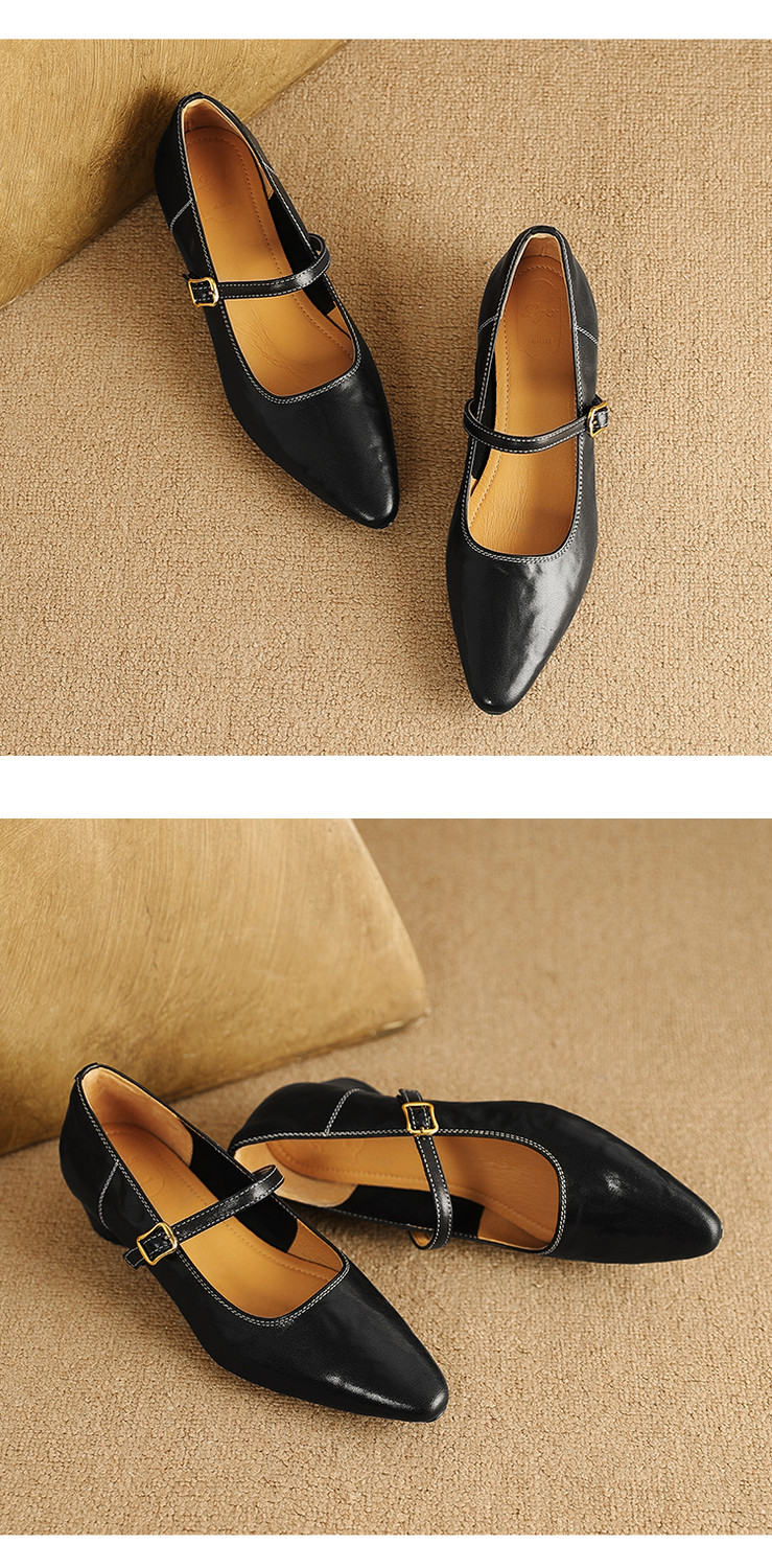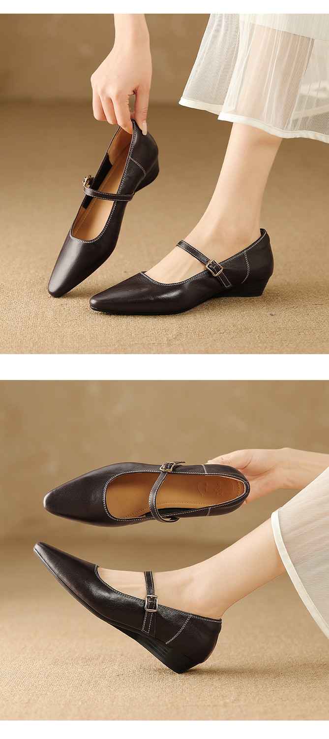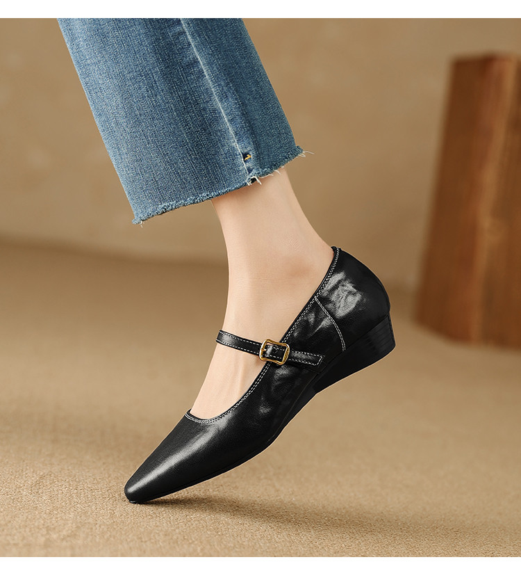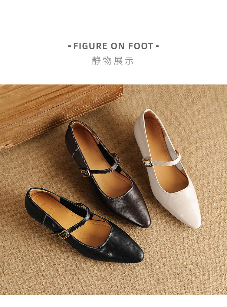 【预售5天】复古时尚坡跟浅口真皮单鞋新款一字扣带玛丽珍鞋LG&930-1771