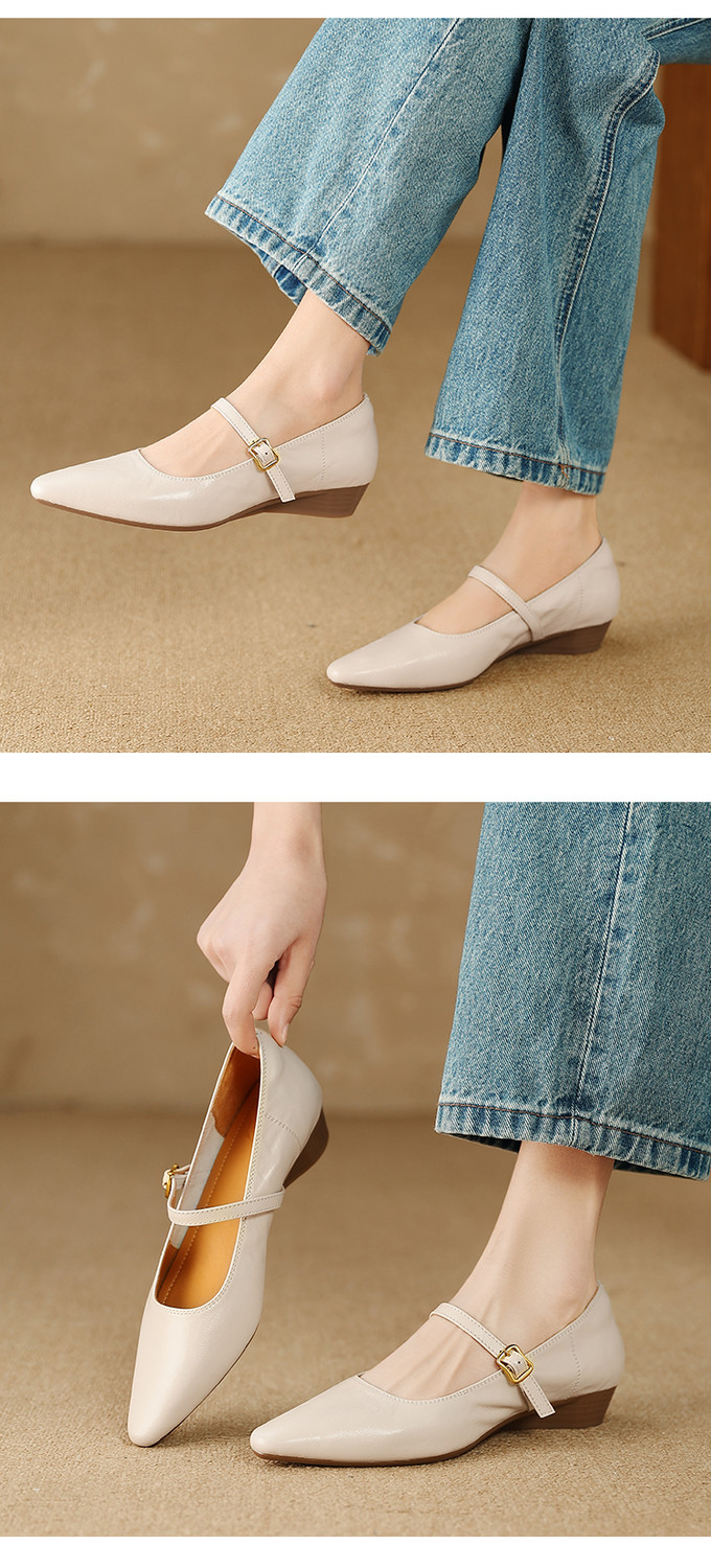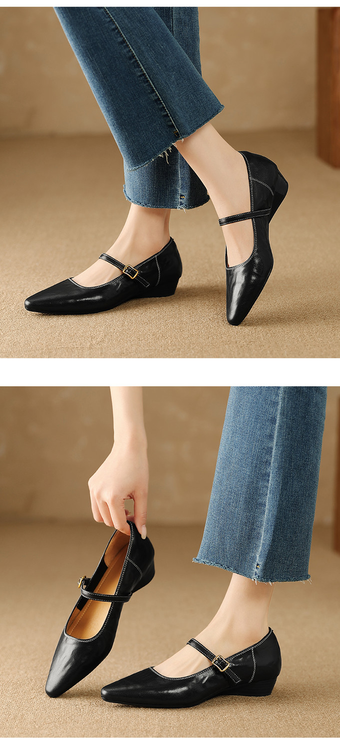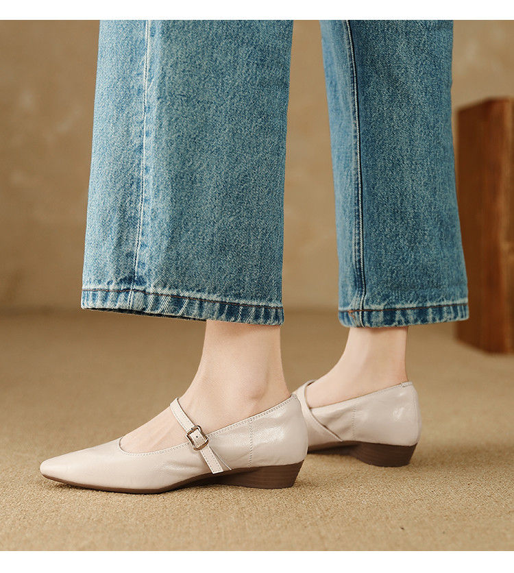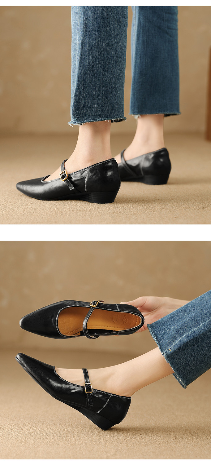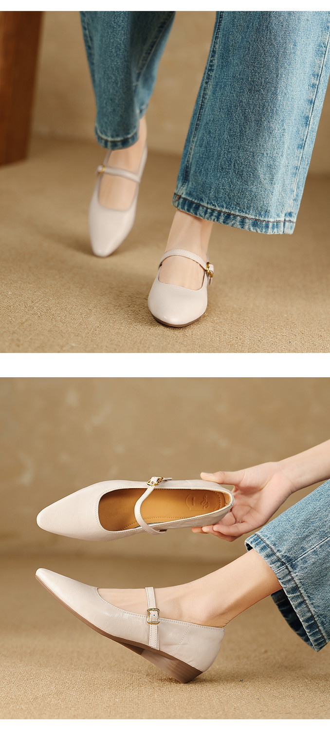 【预售5天】复古时尚坡跟浅口真皮单鞋新款一字扣带玛丽珍鞋LG&930-1771