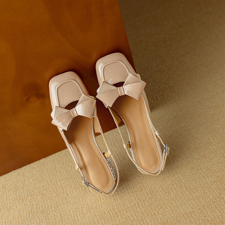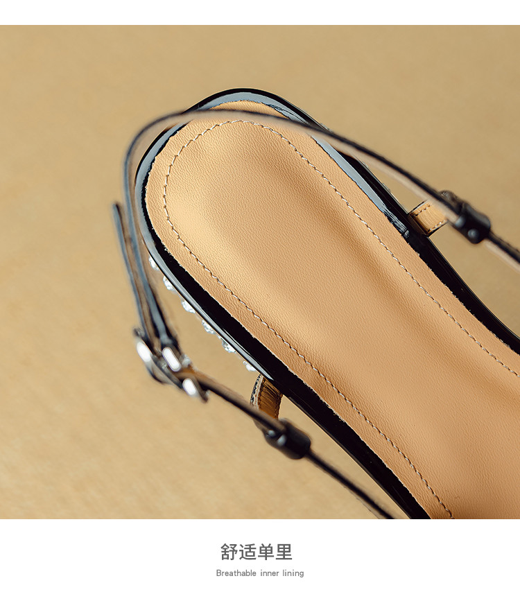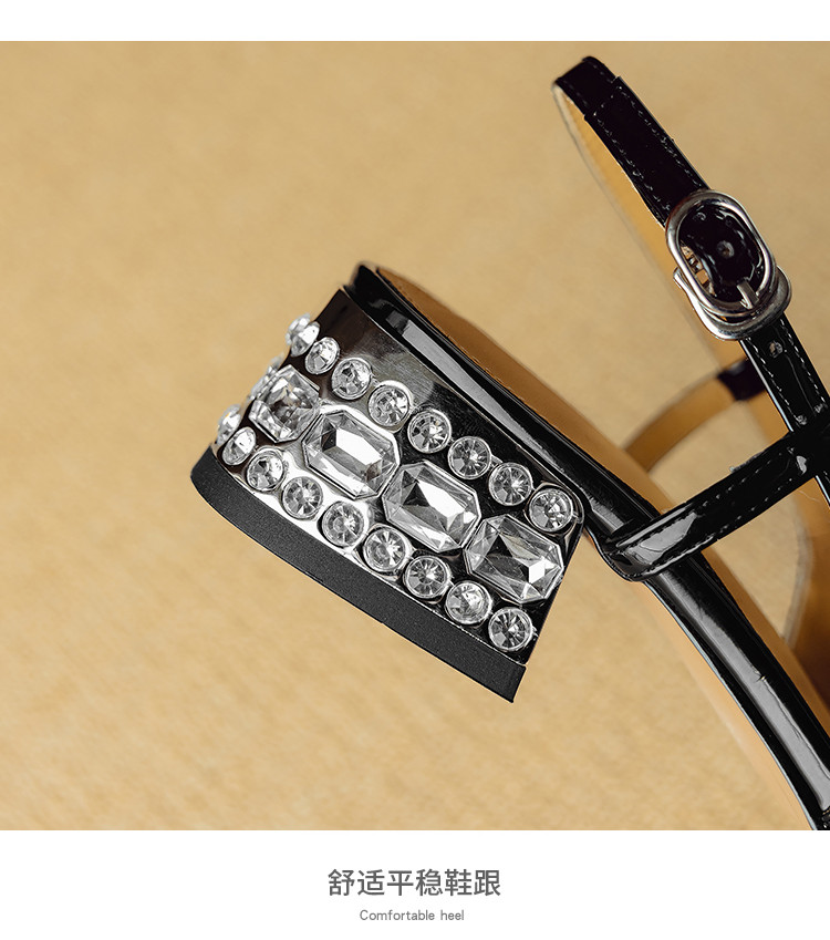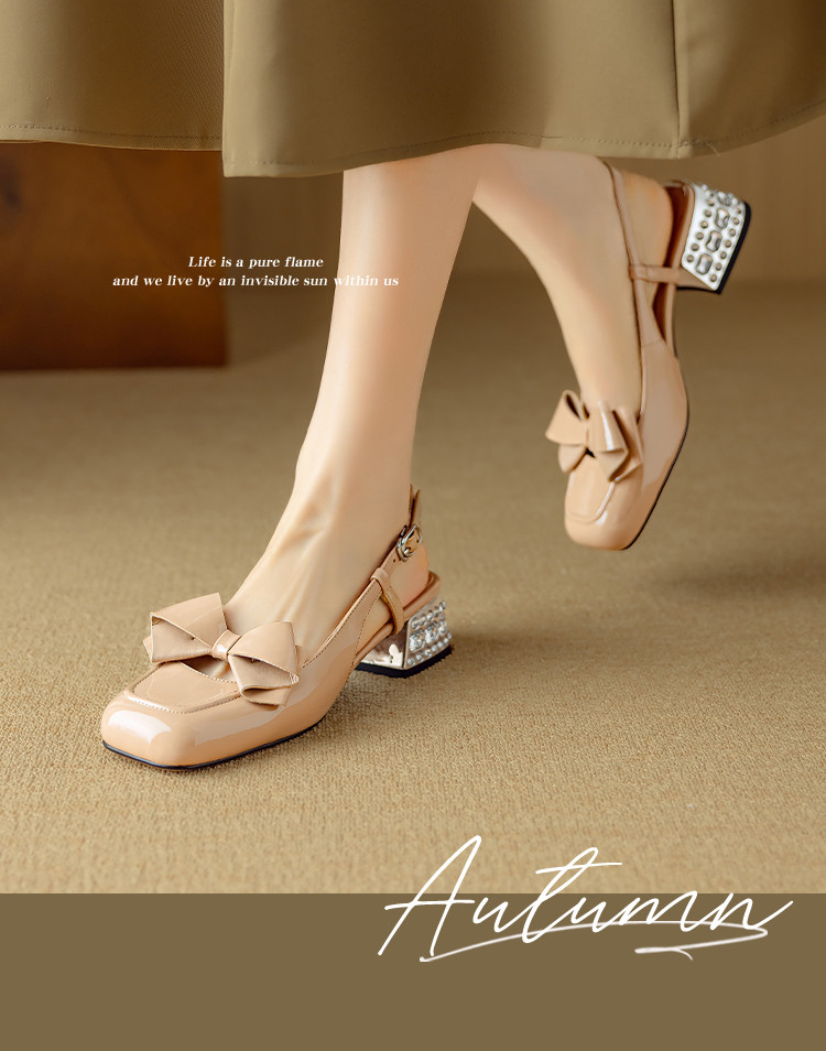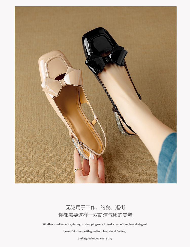 【预售5天】巨好看~水钻粗跟后绊带包头凉鞋女方头甜美蝴蝶结漆皮中空鞋NJMK&K1332
