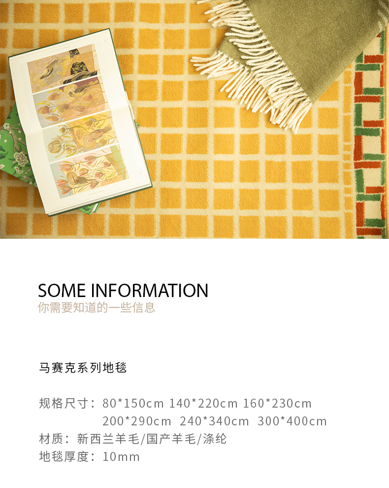 马赛克系列地毯新西兰羊毛地毯茶几客厅防滑地垫