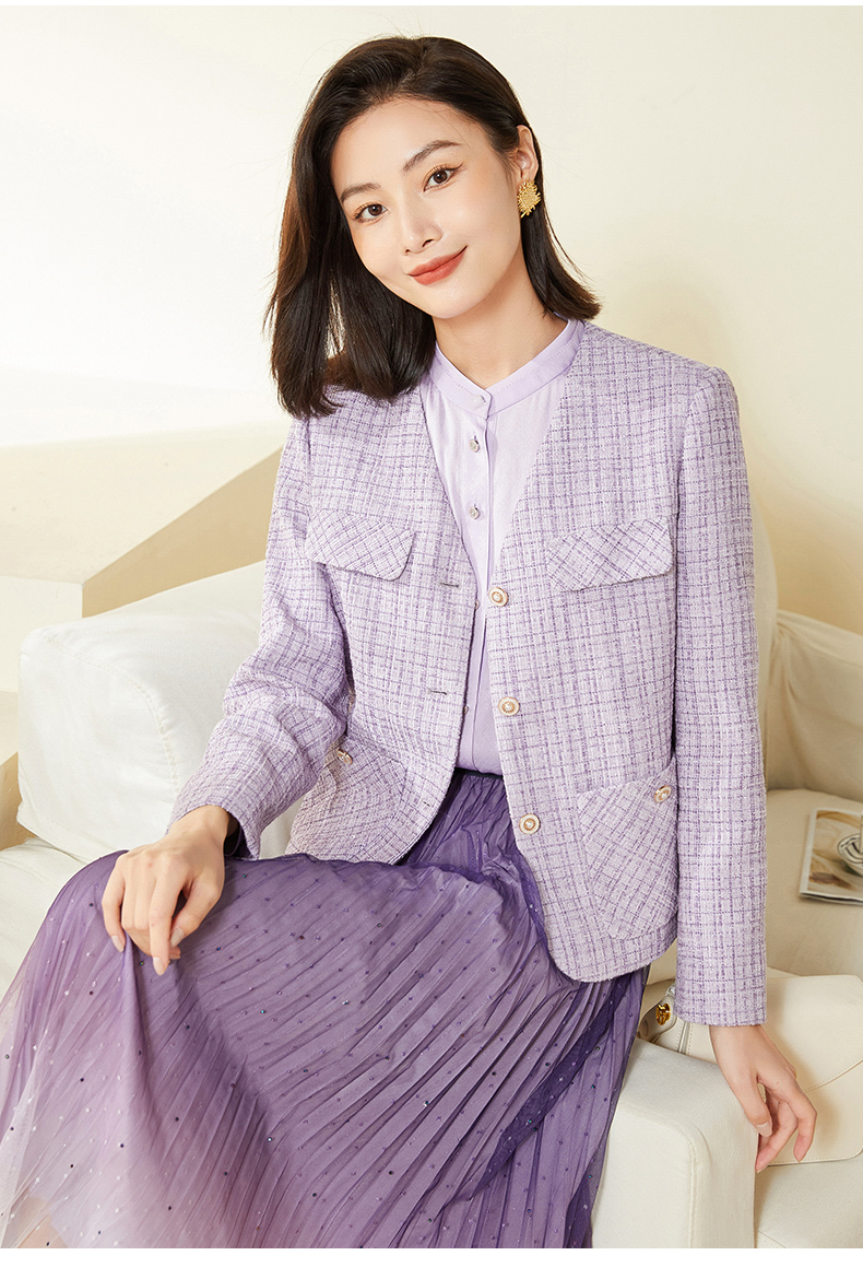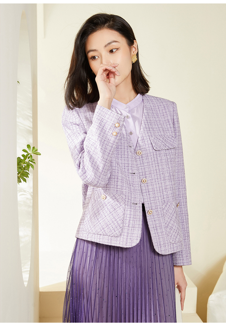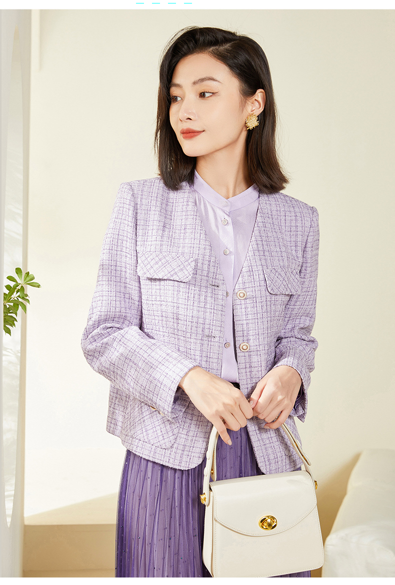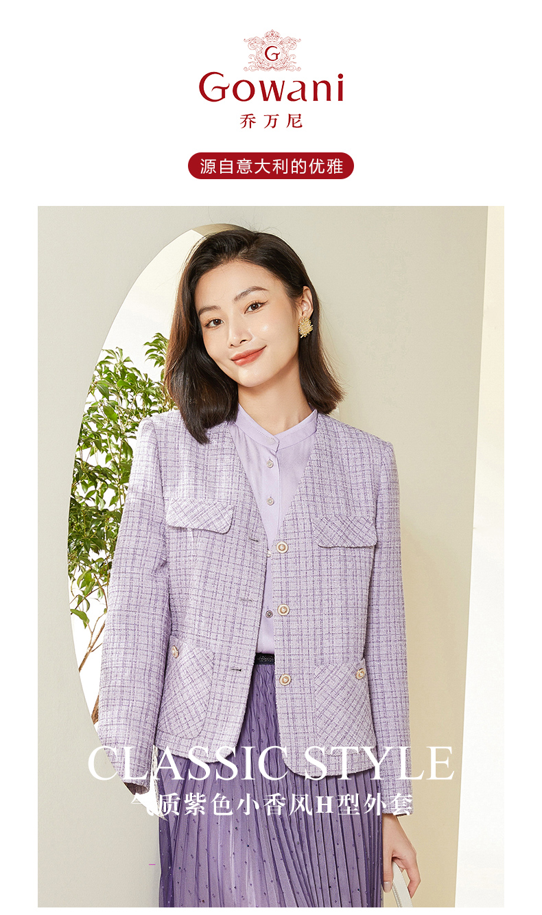 乔万尼短款小香风外套女新款高级精致感气质紫色EF3B821