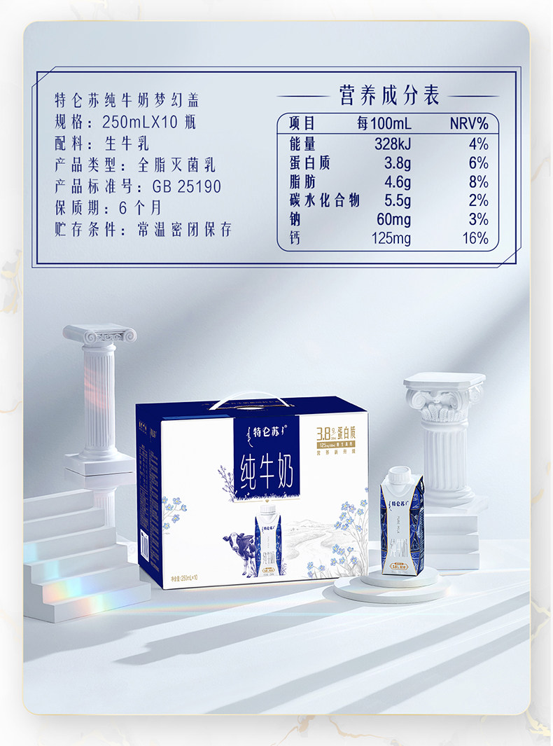 蒙牛特仑苏梦幻盖纯牛奶 250ml*10 学生营养早餐奶【9月29日产】