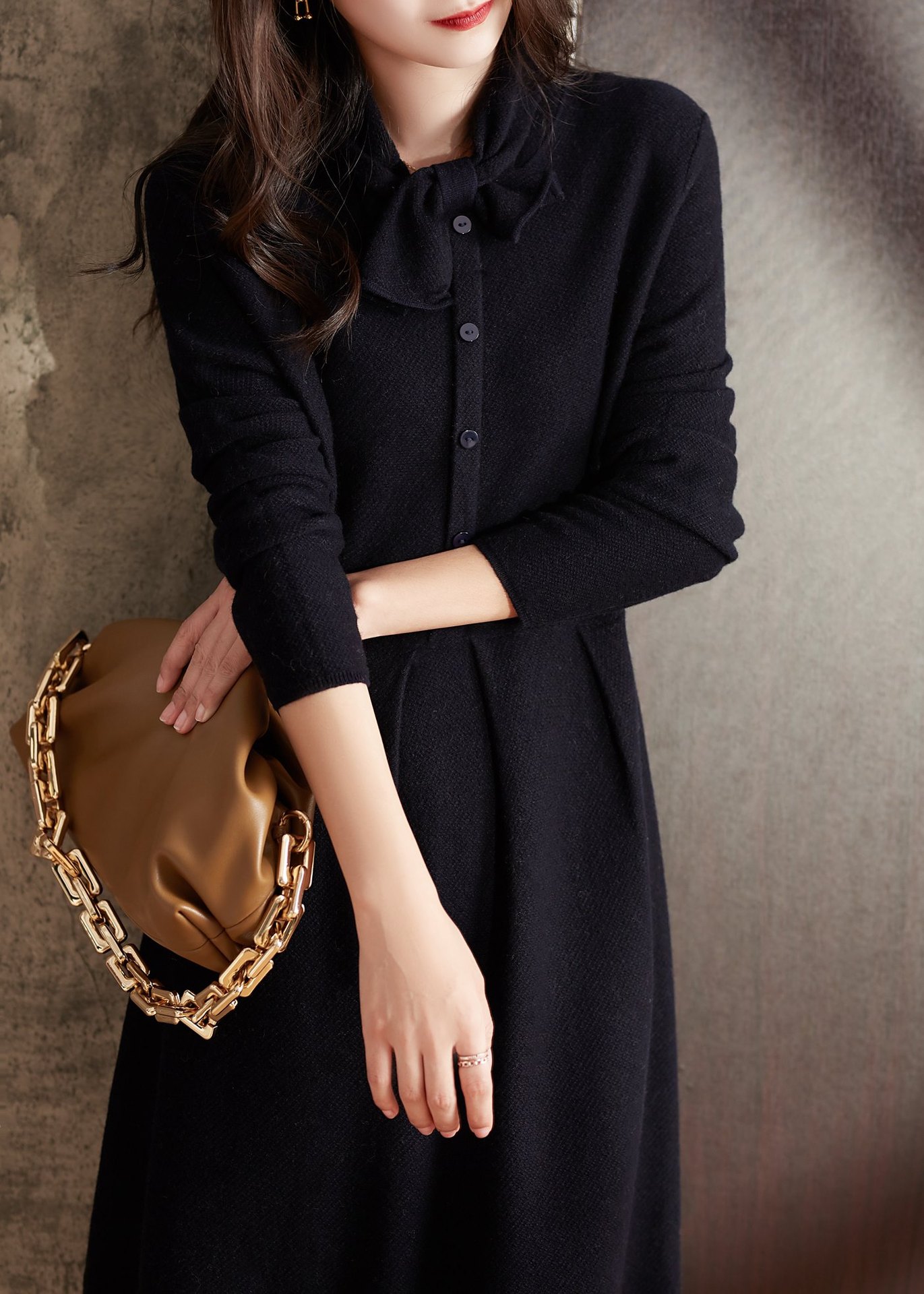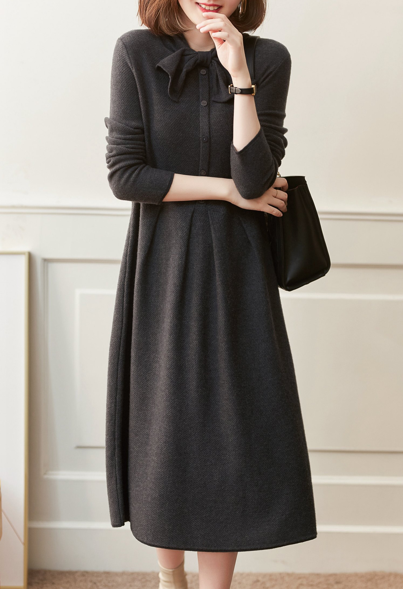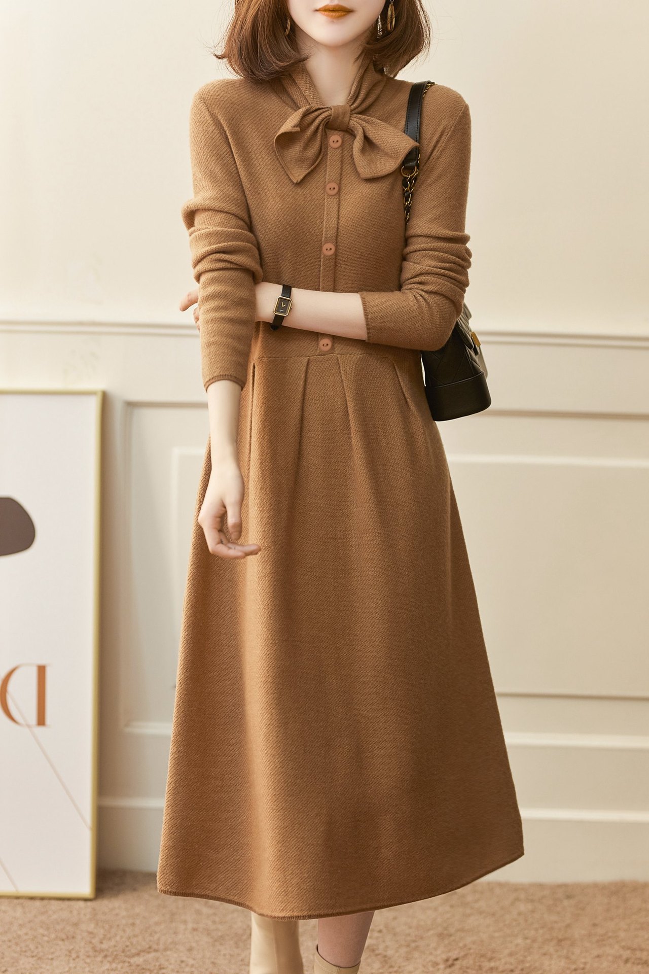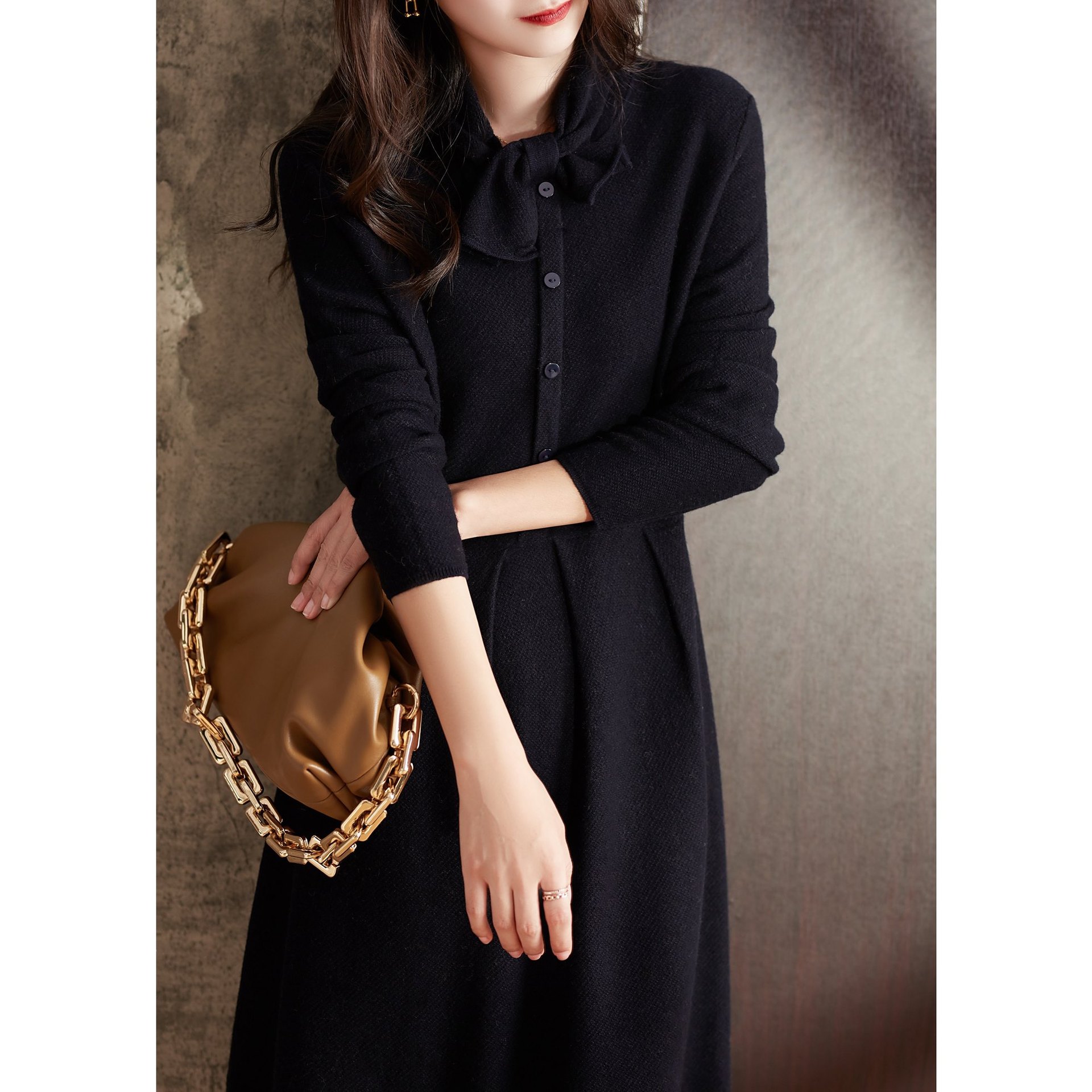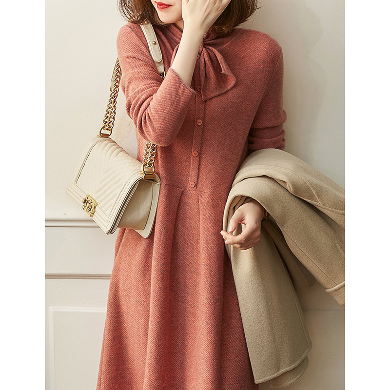 雀说 秋冬新款连衣裙高级感裙子法式复古温柔风优雅针织裙3ZF-121108