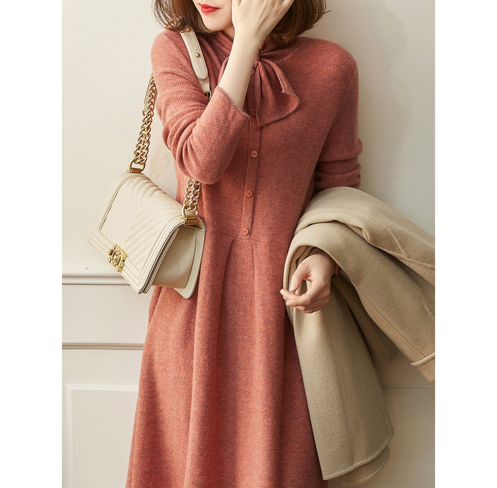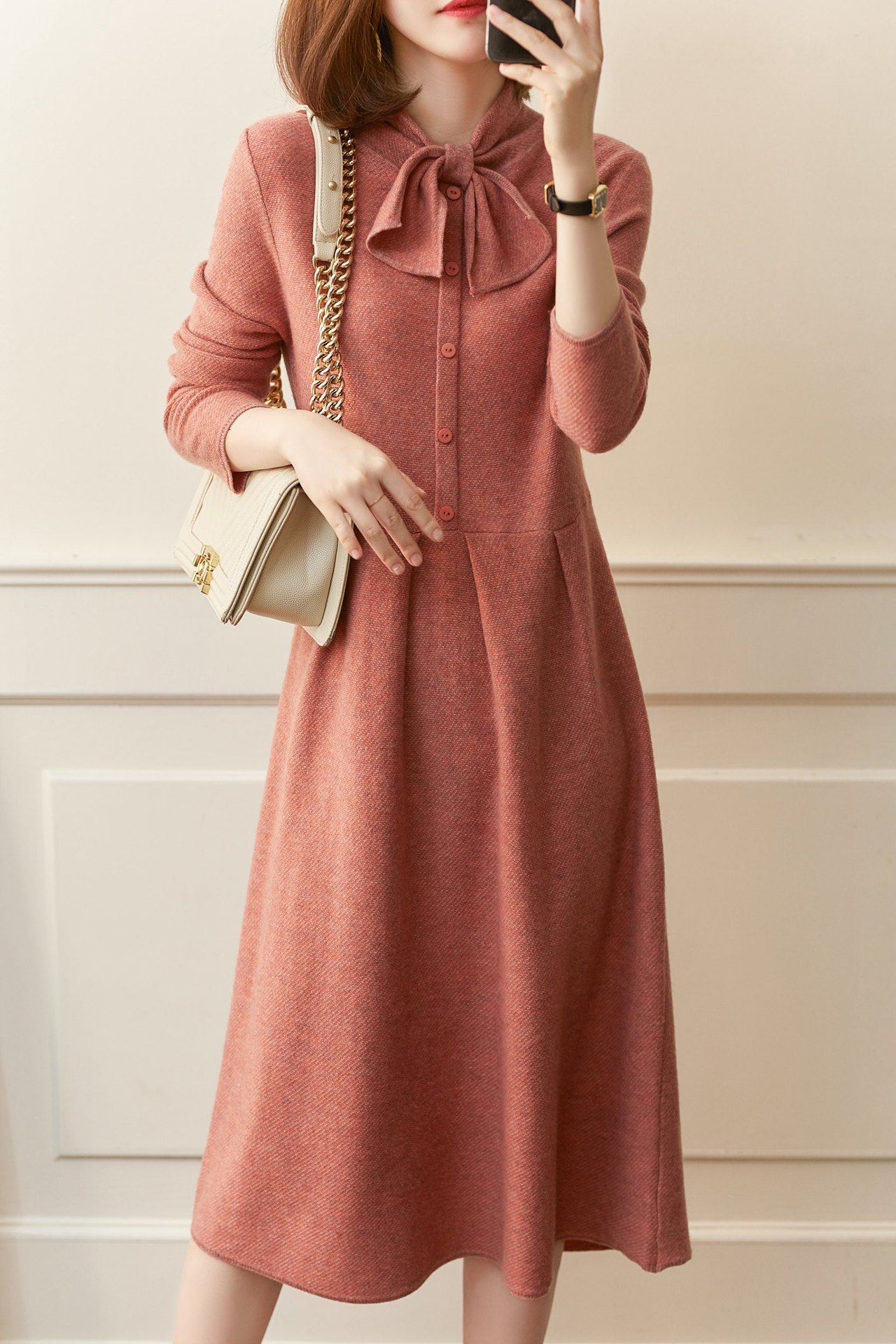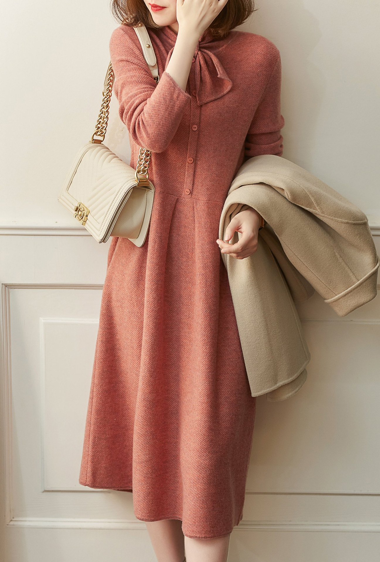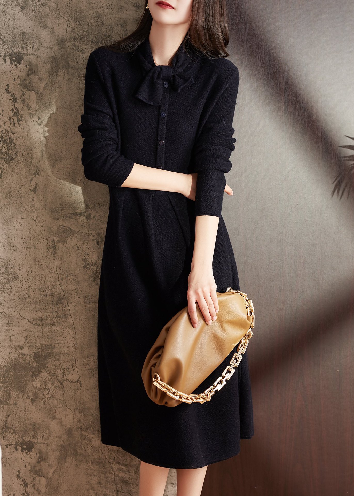 雀说 秋冬新款连衣裙高级感裙子法式复古温柔风优雅针织裙3ZF-121108