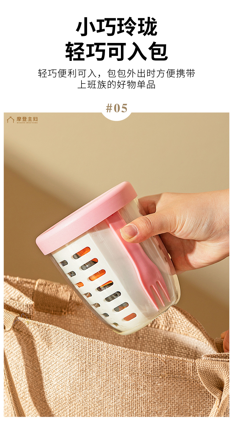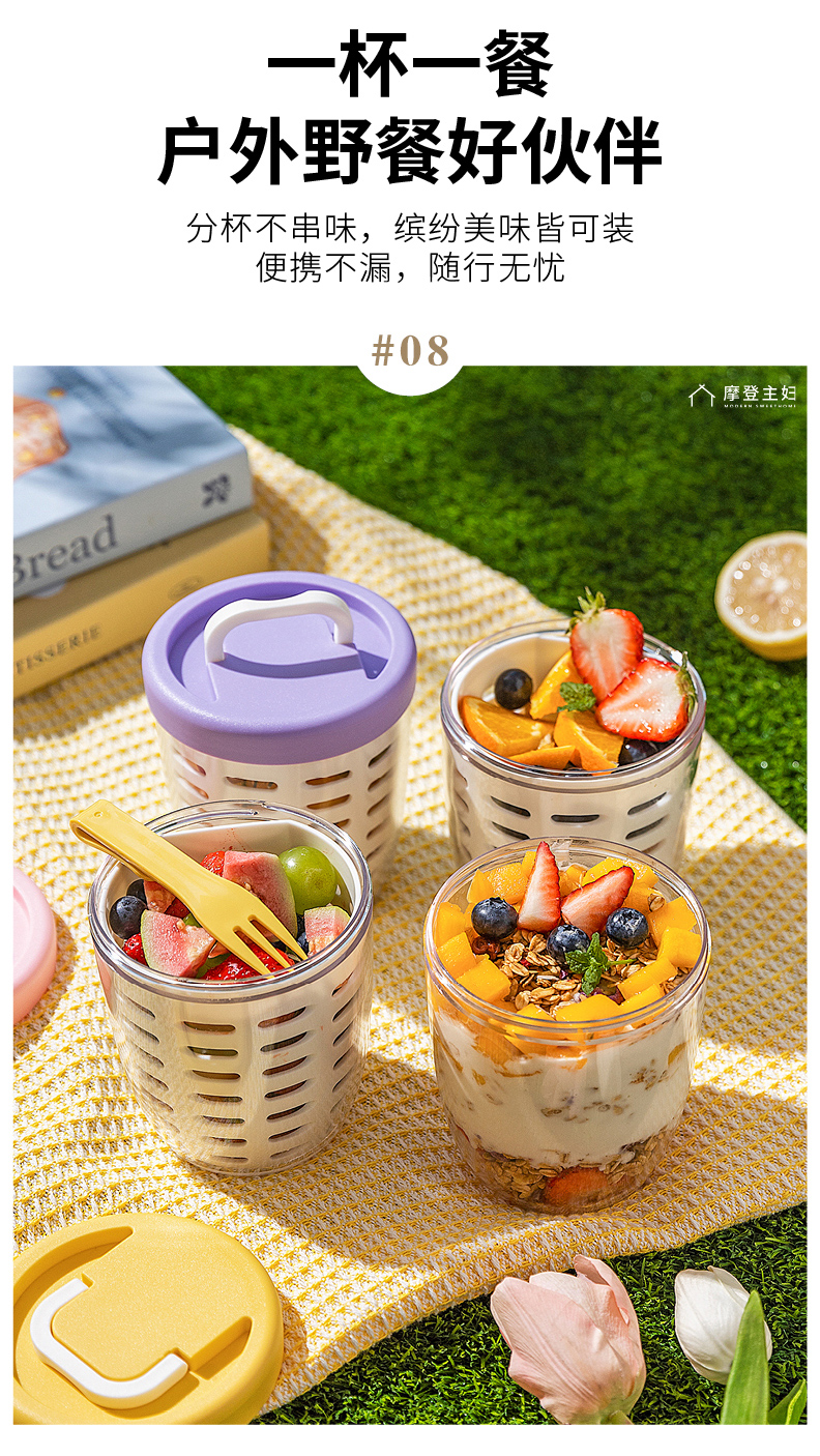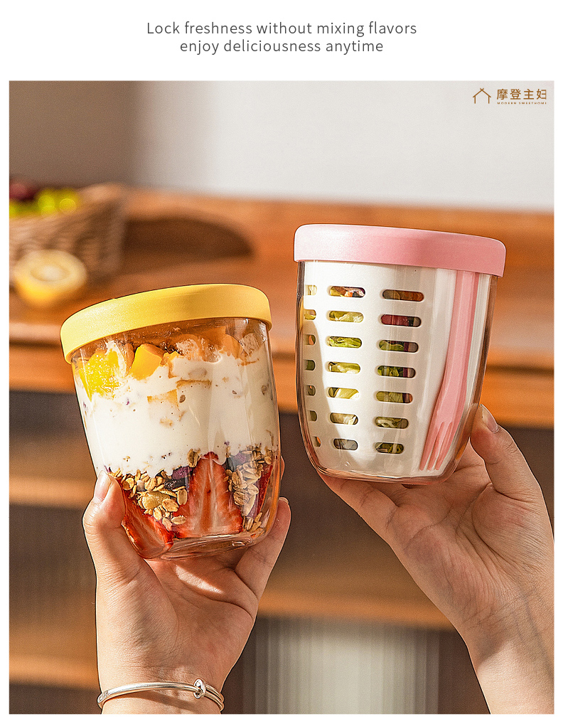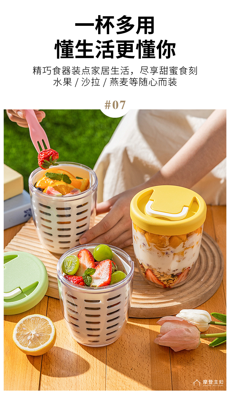 摩登主妇隔夜燕麦杯带盖勺便携早餐杯子便当盒水果杯沙拉杯酸奶杯