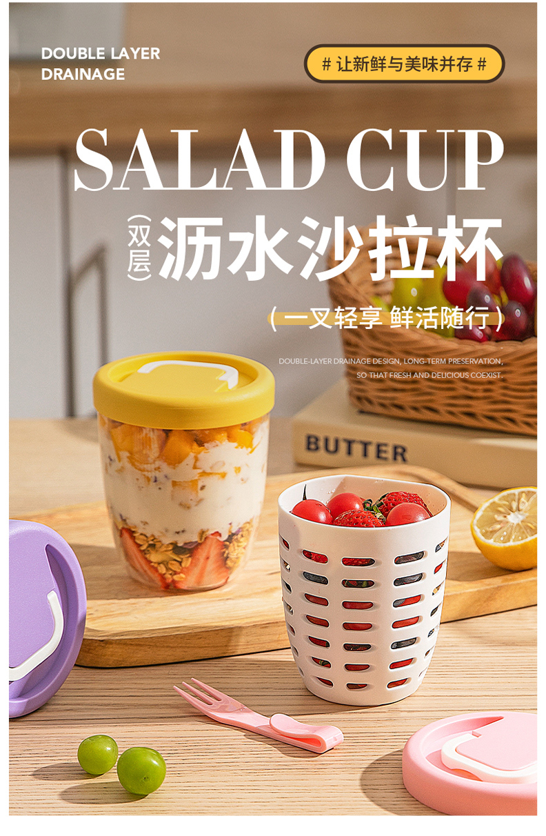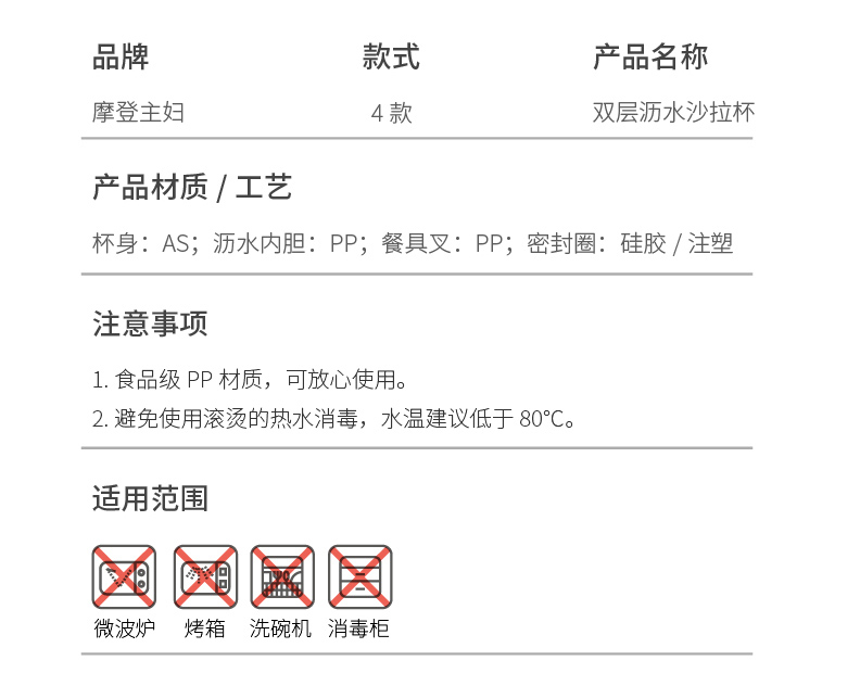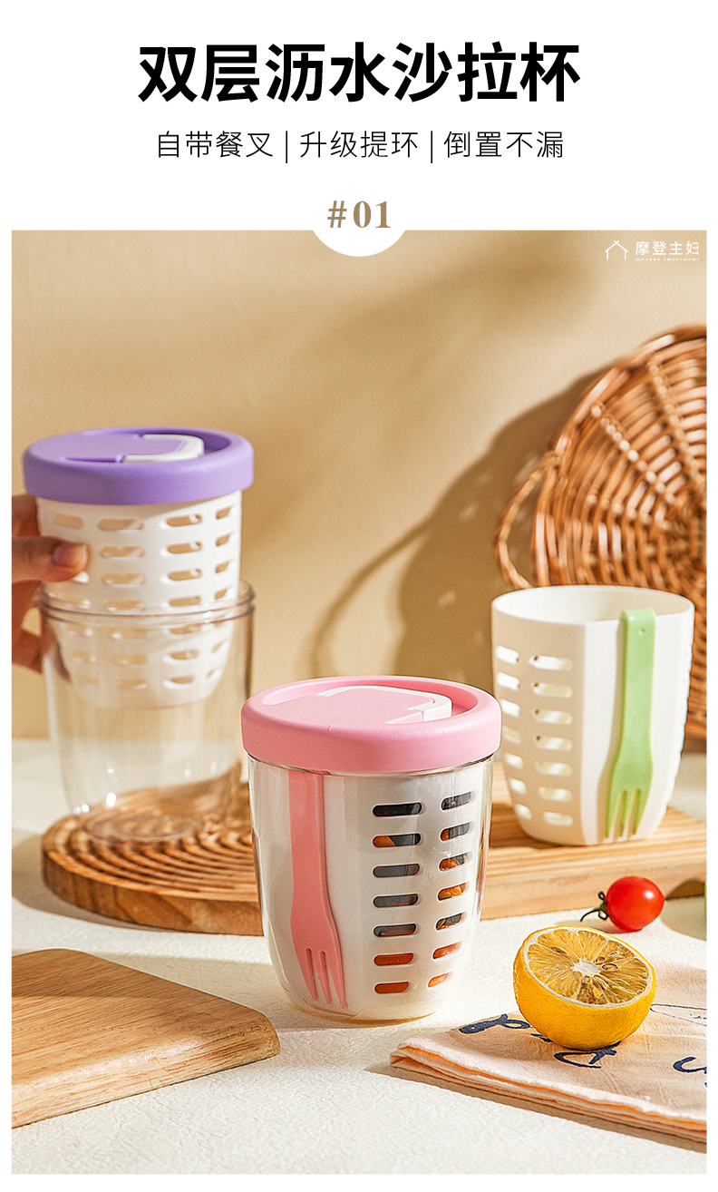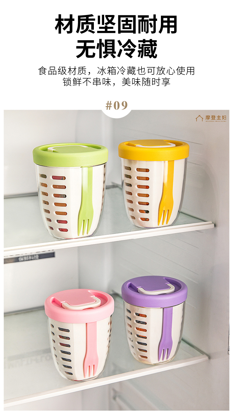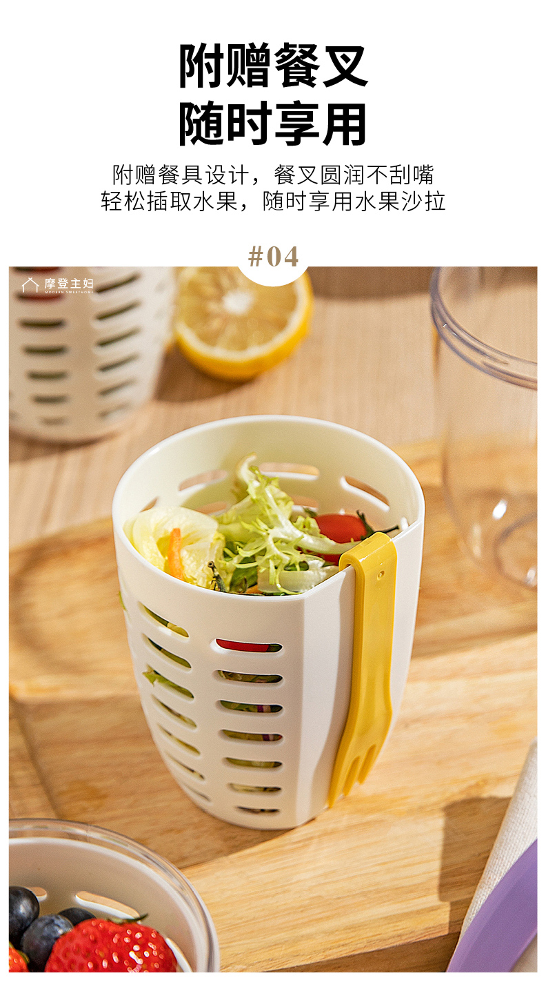 摩登主妇隔夜燕麦杯带盖勺便携早餐杯子便当盒水果杯沙拉杯酸奶杯