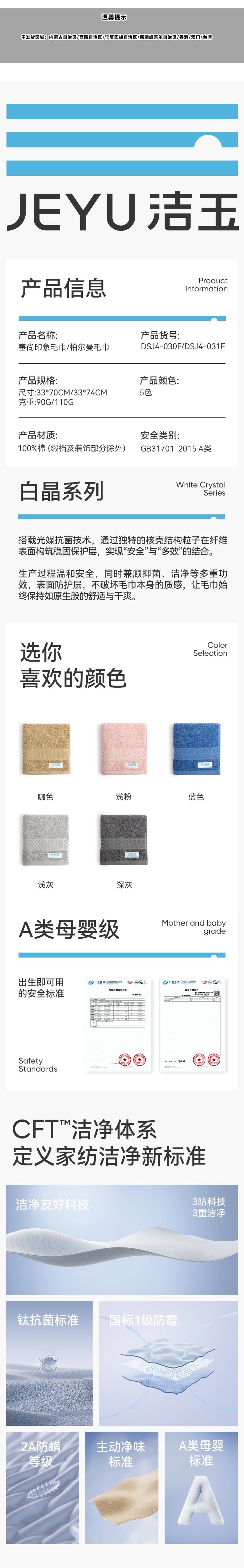 洁玉 柏尔曼毛巾双条装袋装混色 DSJ4-031F