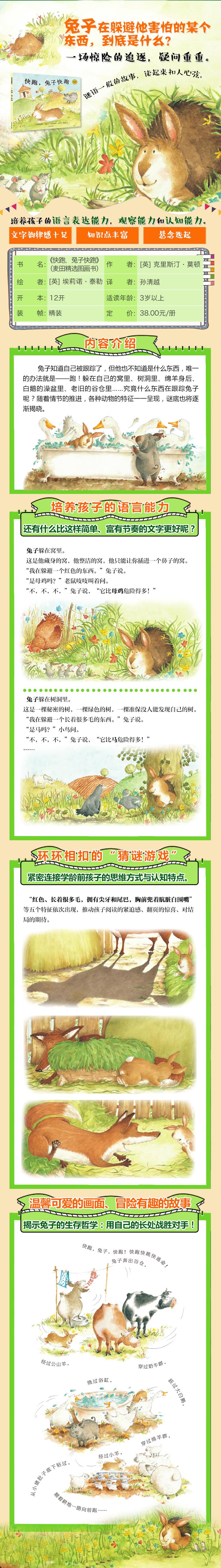兔子知道自己被跟踪了,但他也不知道是什么东西,专享的办法就是——跑!躲在自己的窝里、树洞里、绵羊身后、白鹅的澡盆里、老旧的谷仓里……究竟什么东西在跟踪兔子呢?随着情节的推进,各种动物的特征一一呈现,谜底也将逐渐揭晓。