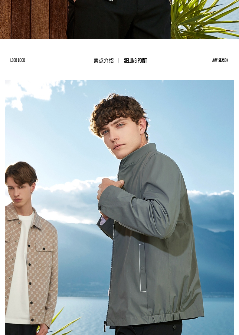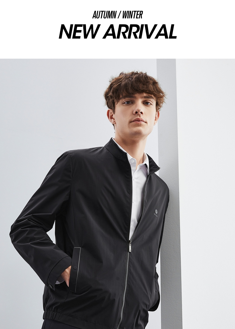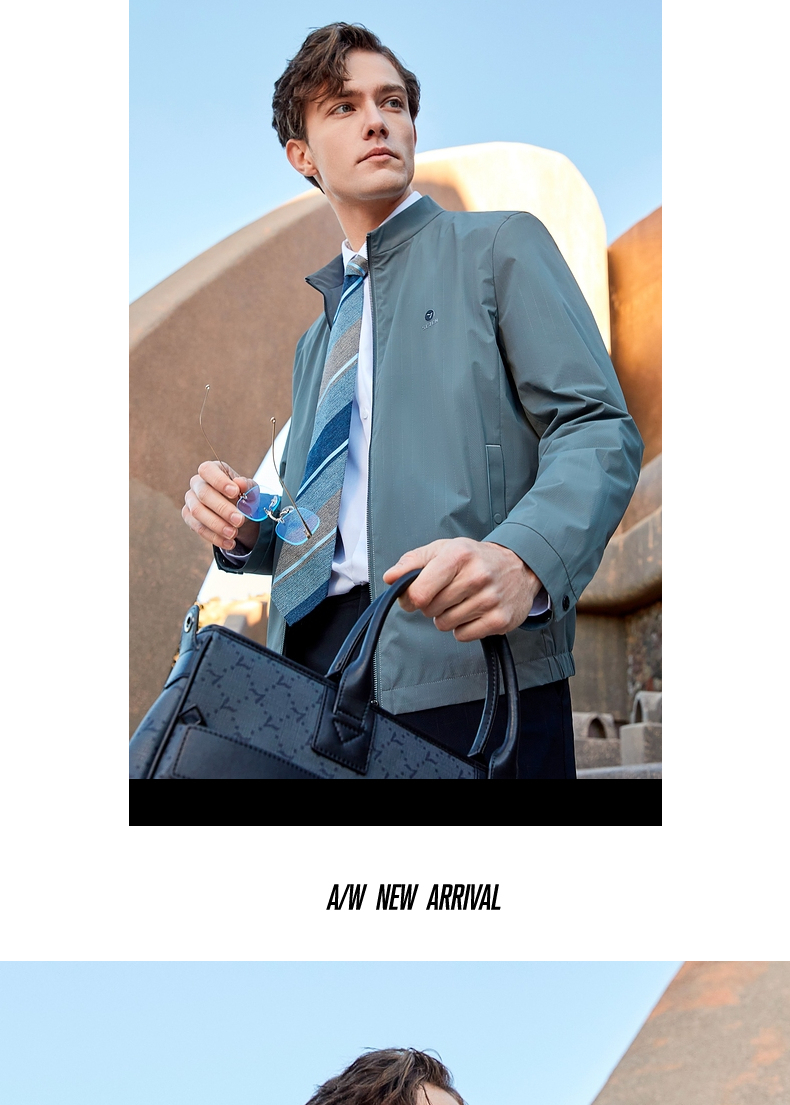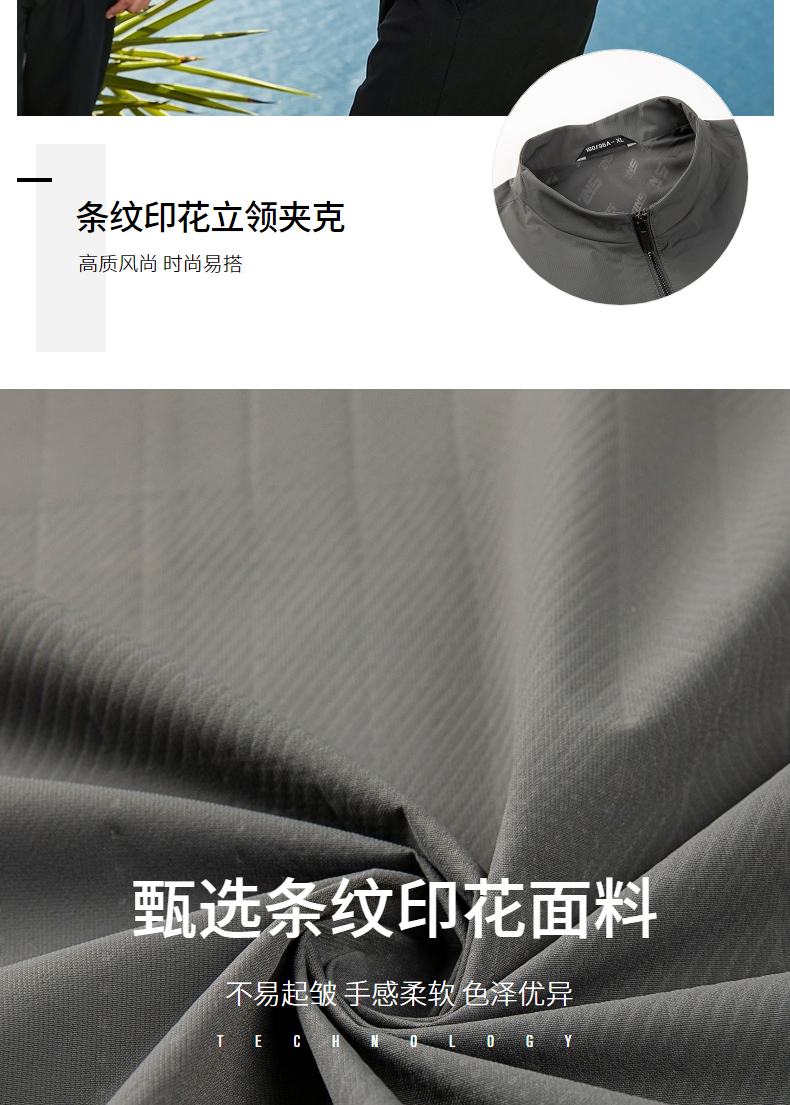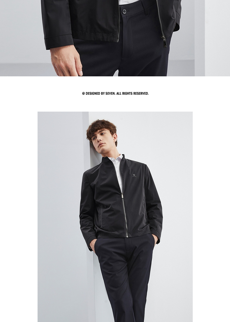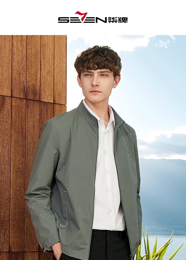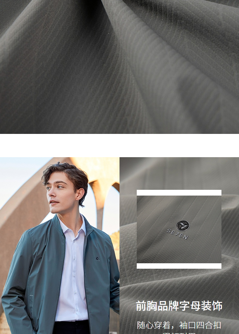 【特价】柒牌男士外套春秋季时尚休闲中青年男装条纹印花立领短款夹克 124K70070