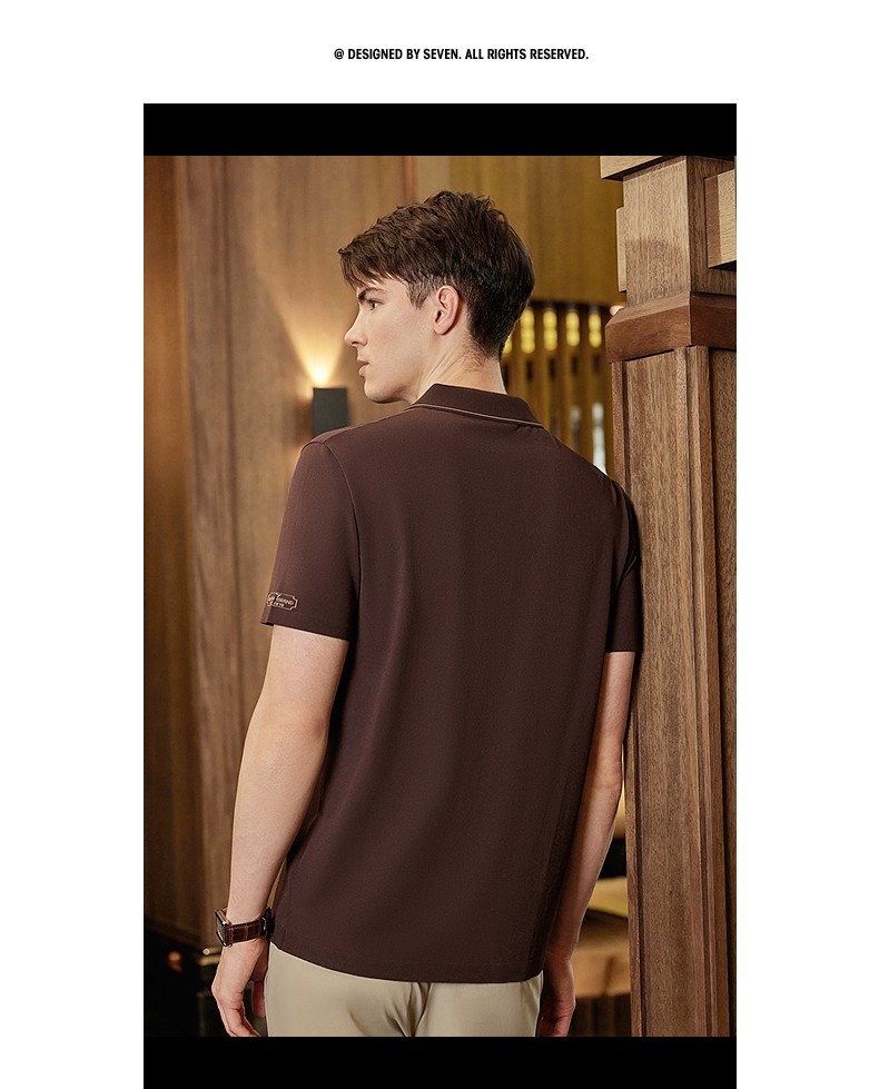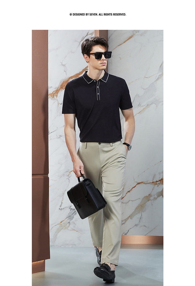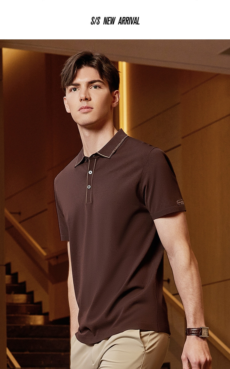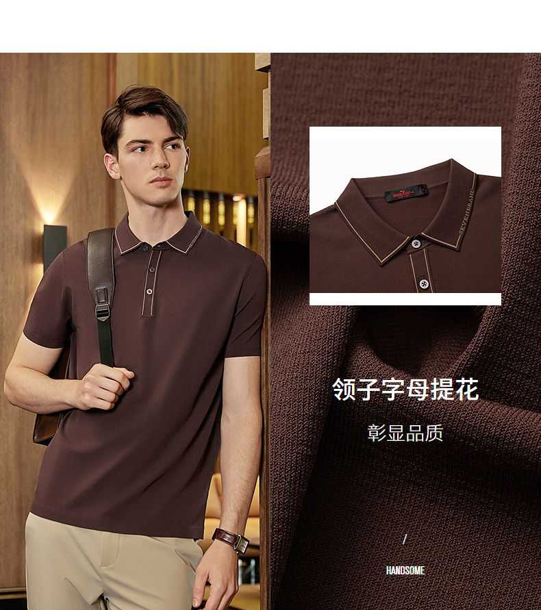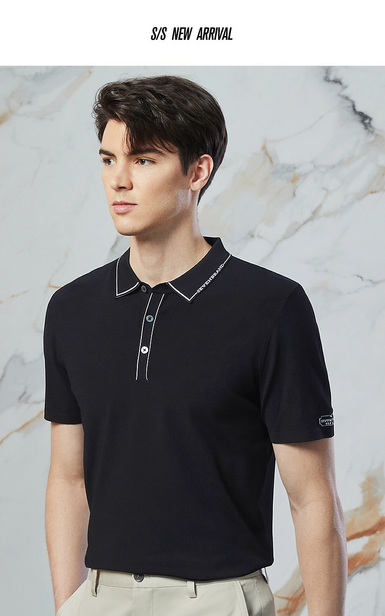 【高端系列】柒牌男士短袖polo衫夏季新款字母提花伊力特弹力上衣 126T70540