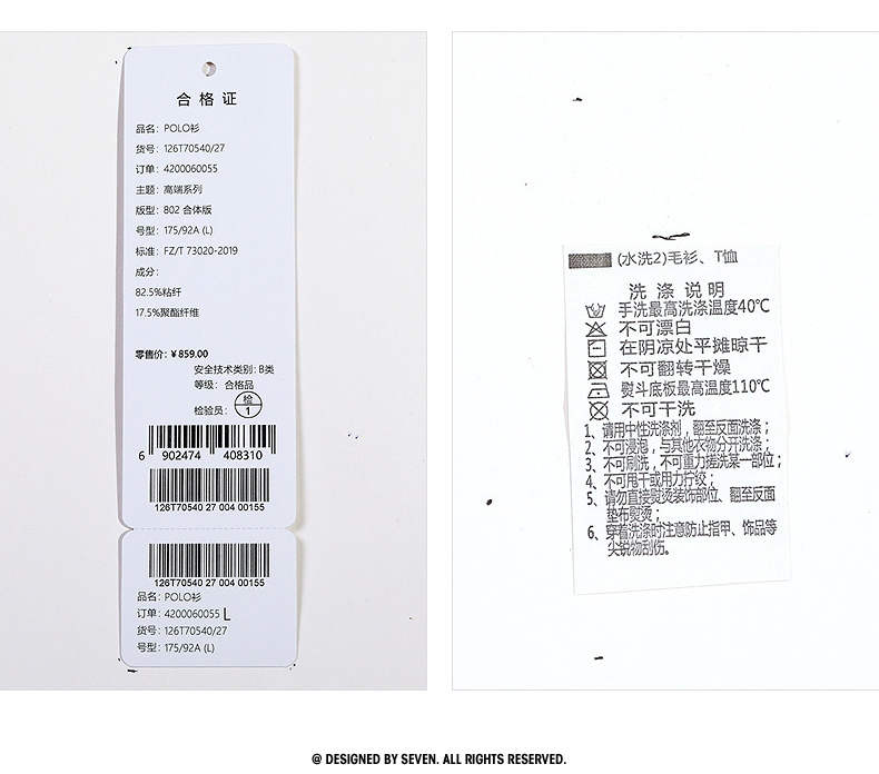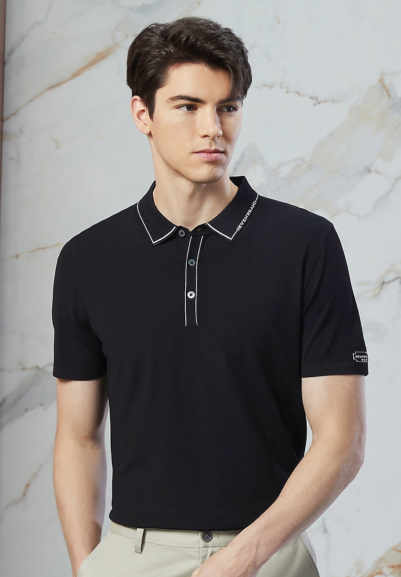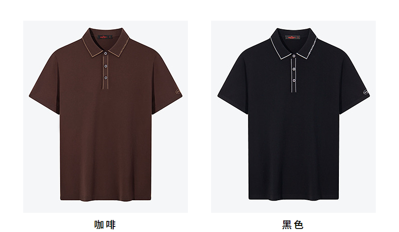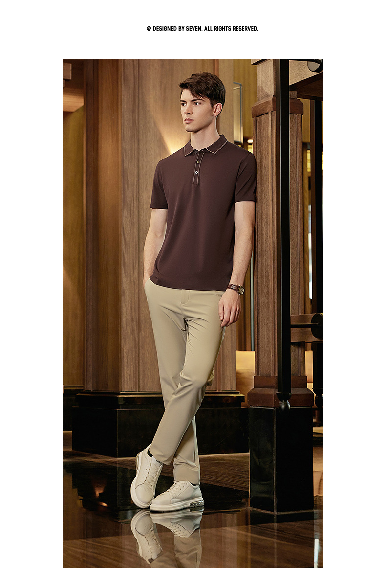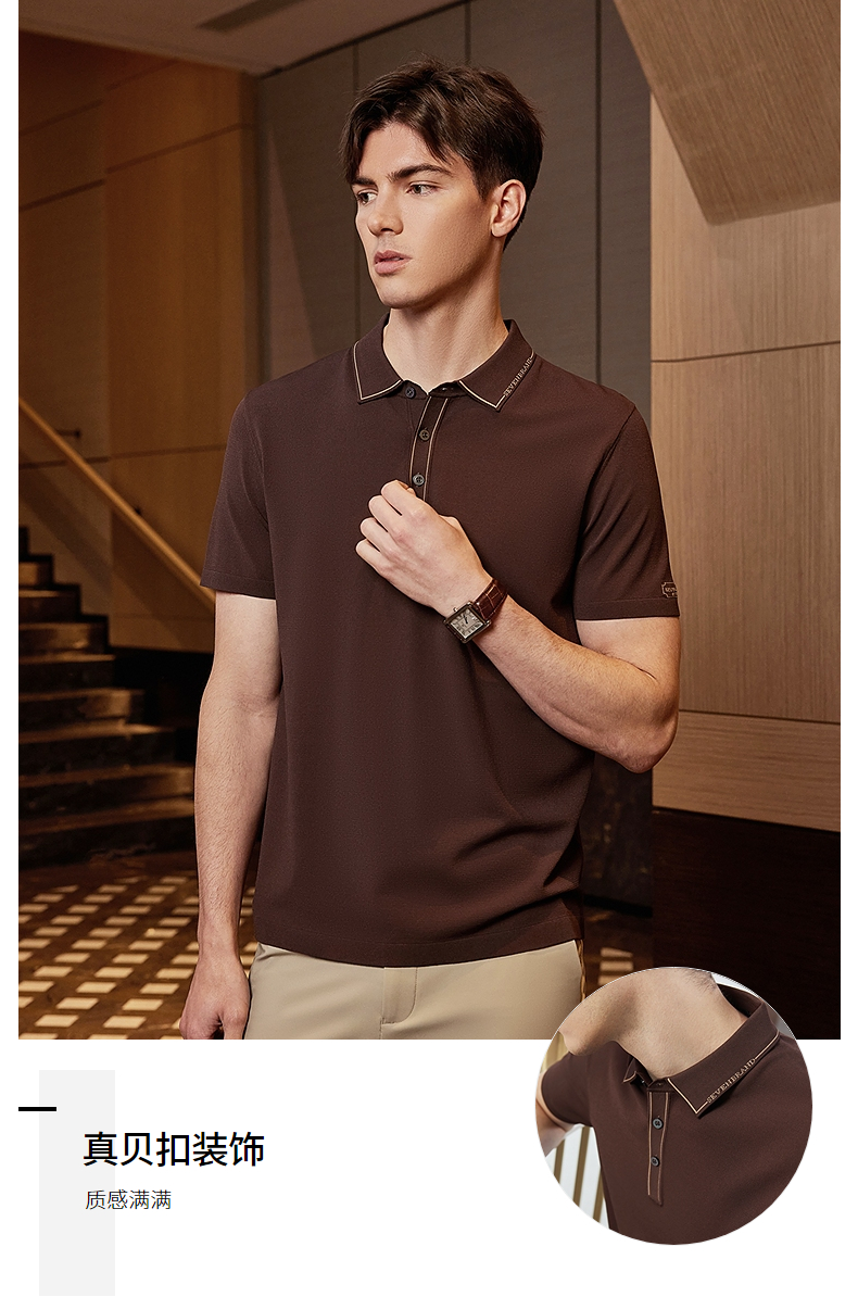 【高端系列】柒牌男士短袖polo衫夏季新款字母提花伊力特弹力上衣 126T70540
