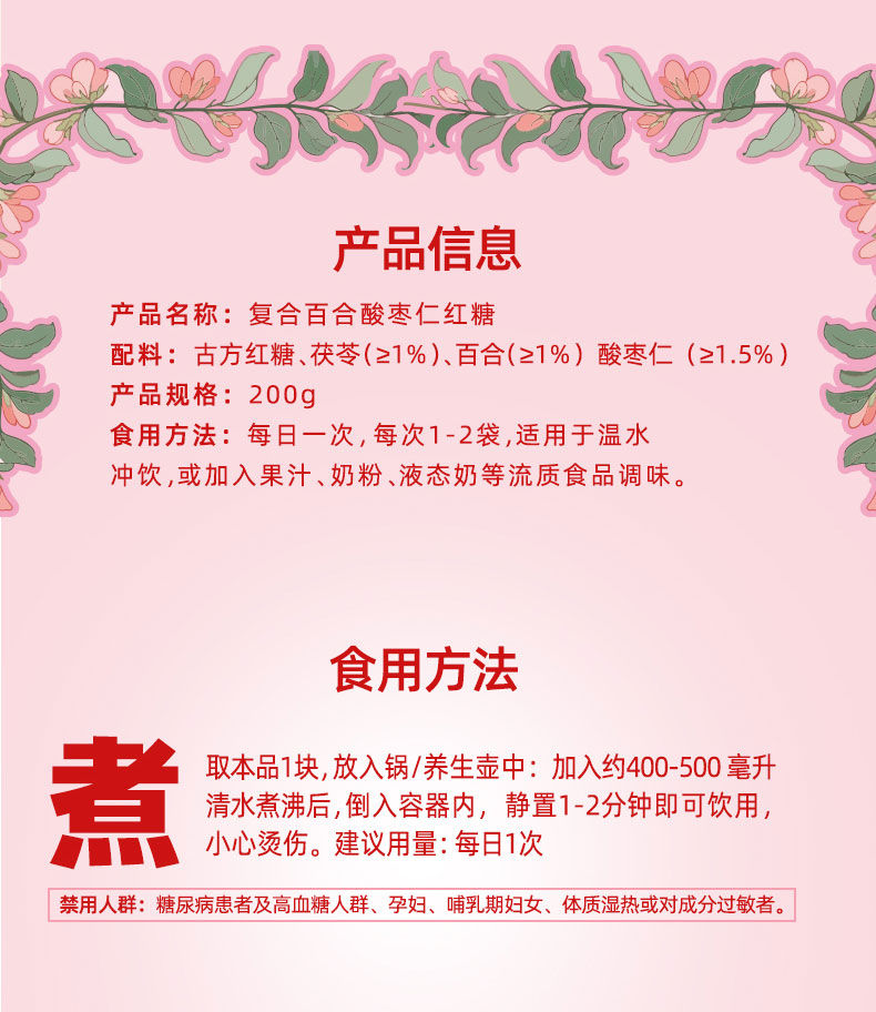 那几天复方百合酸枣仁茯苓红糖经期红糖
