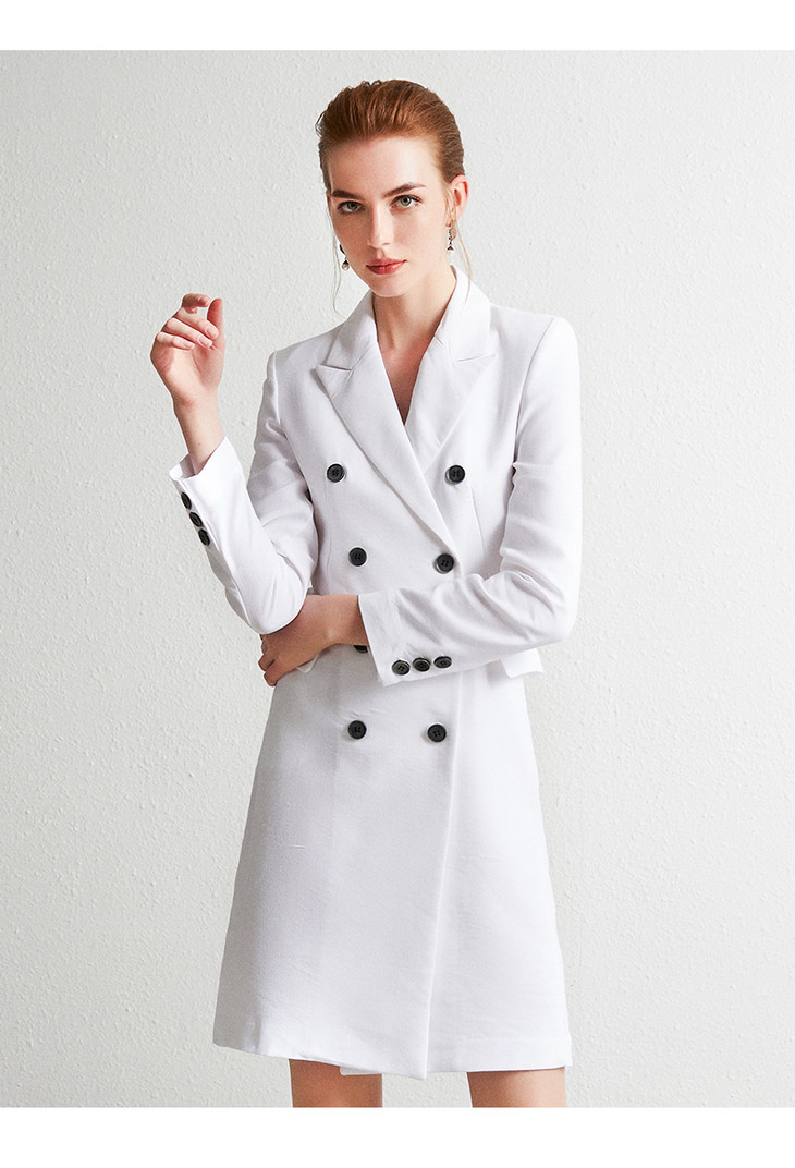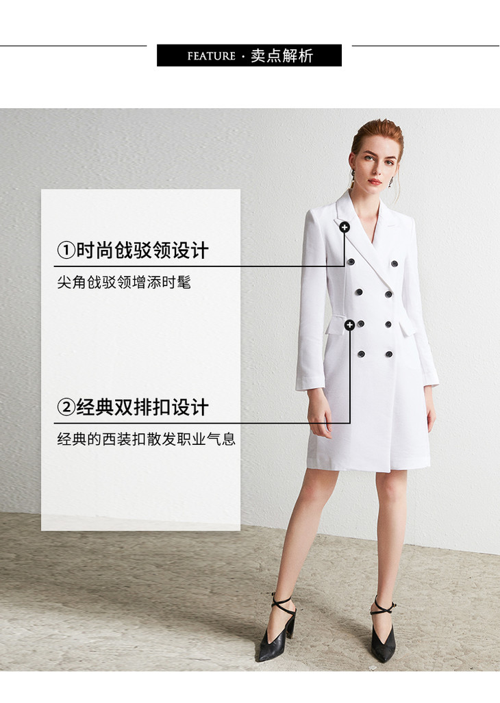 IWY/双排扣西装连衣裙白色立体修身后开叉Q9368-W