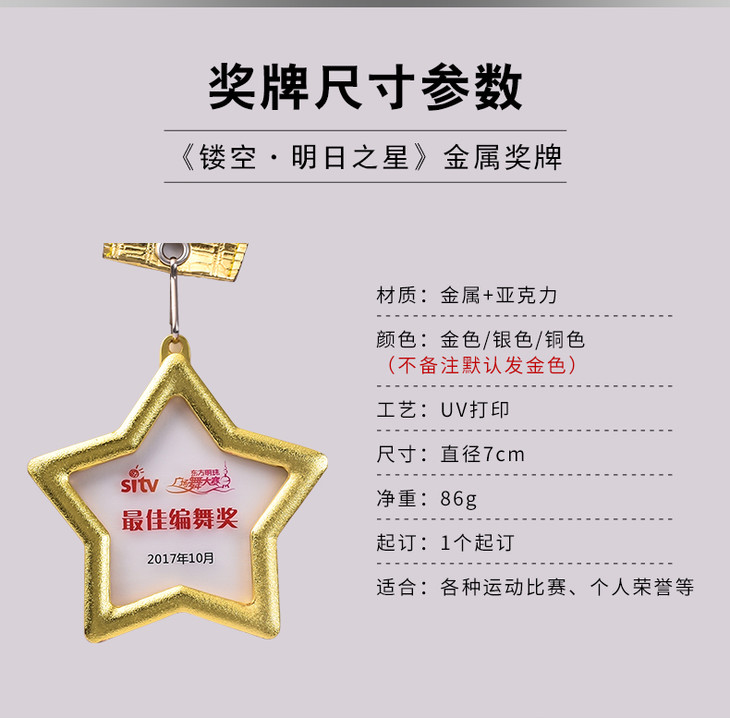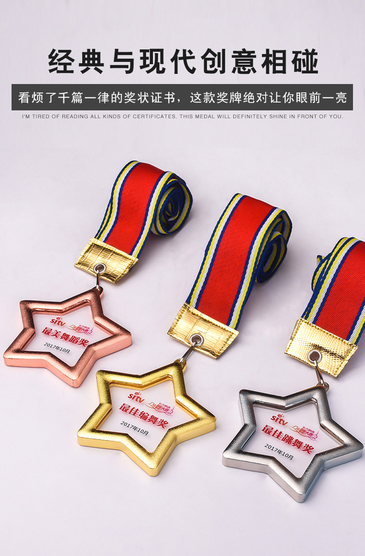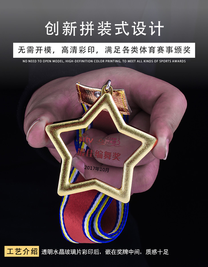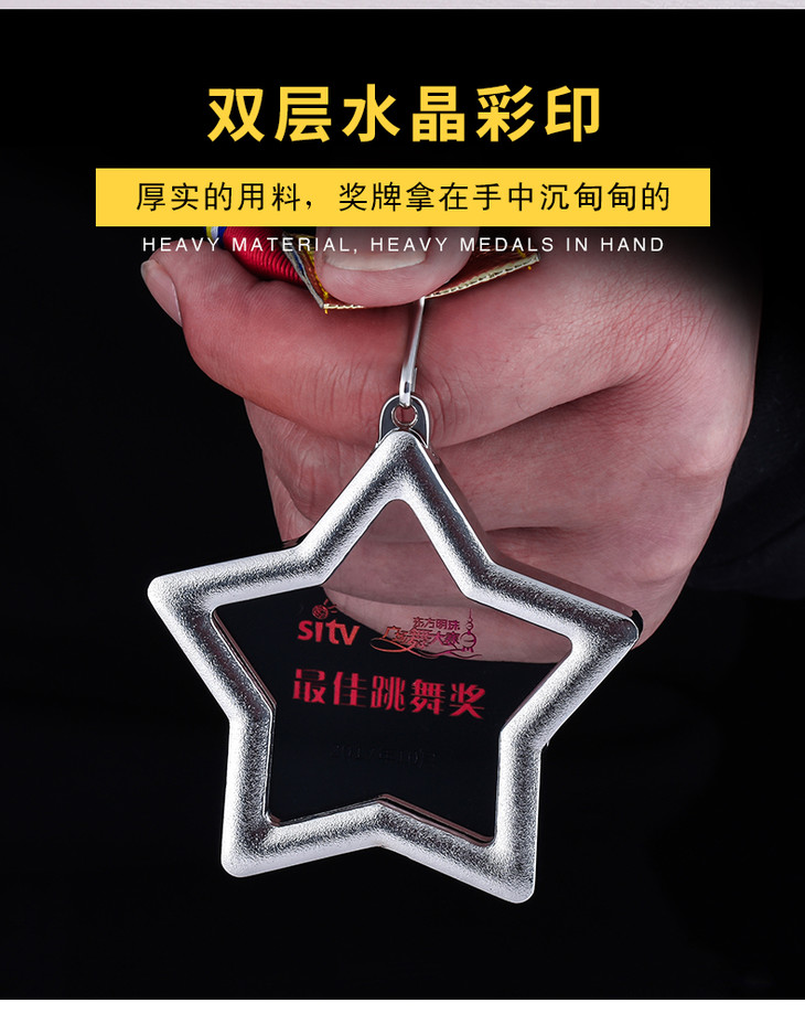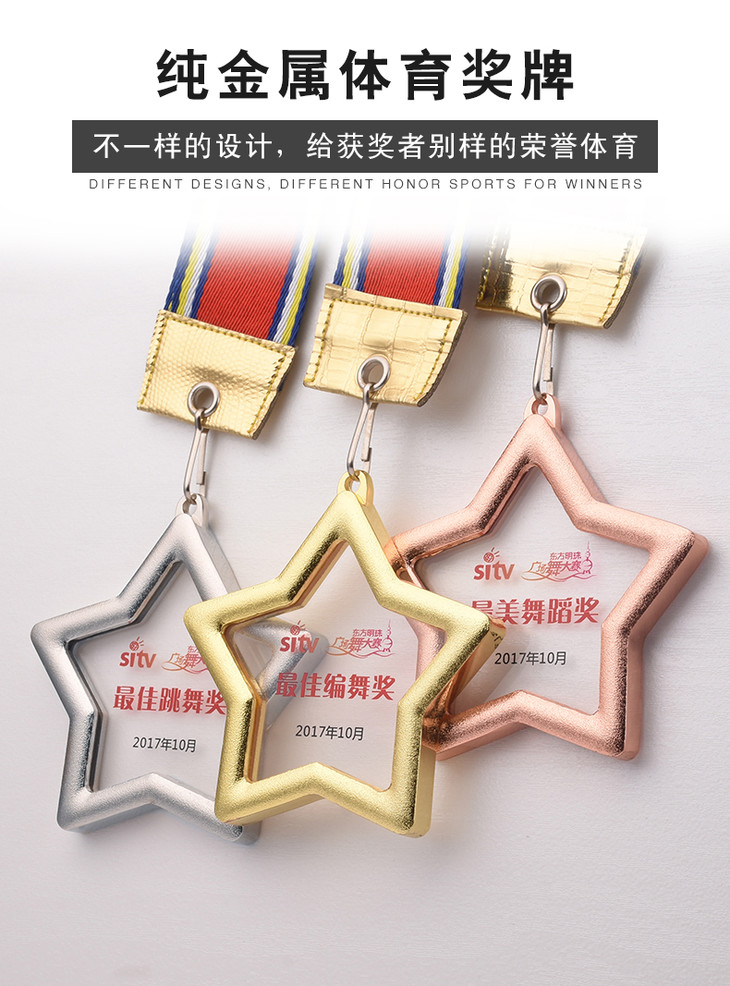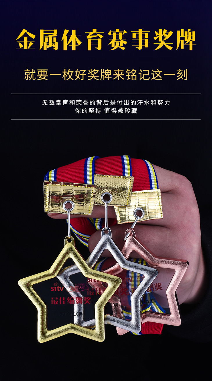 五角星金属水晶奖牌定制定做儿童体育比赛篮球田径运动会挂牌制作