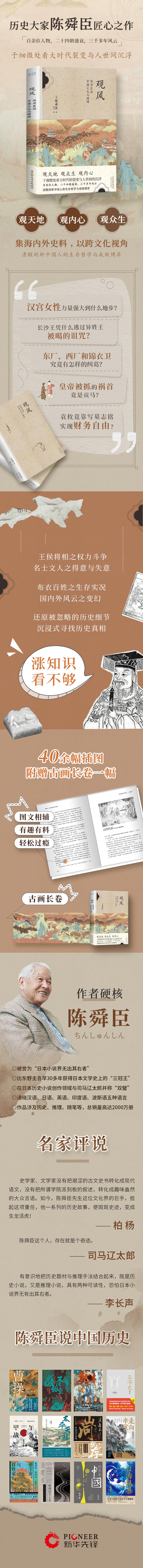 1.集合海内外史料,跨文化视角,从细微处解析,还原被忽略的历史细节,沉浸式寻找历史真相,读完直呼涨知识、看不够!2.以古喻今,警醒人心。从王侯将相到文人工匠,通过百余位重要人物的身世沉浮,剖析中国人的处世之道,为现代人安身立命提供借鉴。3.历史大家陈舜臣匠心之作,他比东野圭吾早30多年达成文学“三冠王”荣誉,一生囊括了吉川英治文学、直木奖等几十项文学大奖,其作品多次掀起读史狂潮。4.内含40余幅插图,附赠古画长卷一幅,图文相辅,精心编排,有趣有料,轻松过瘾。