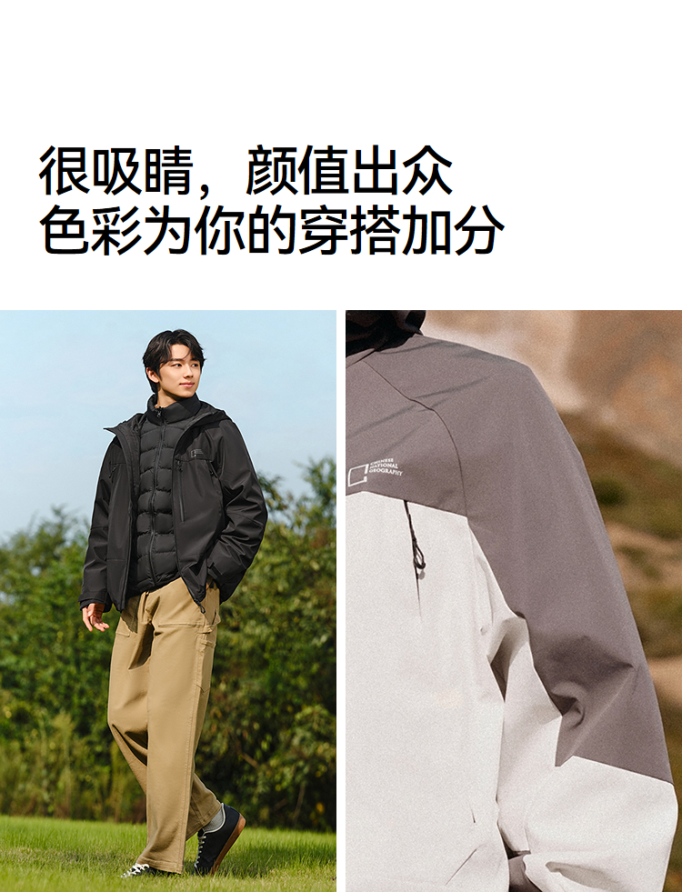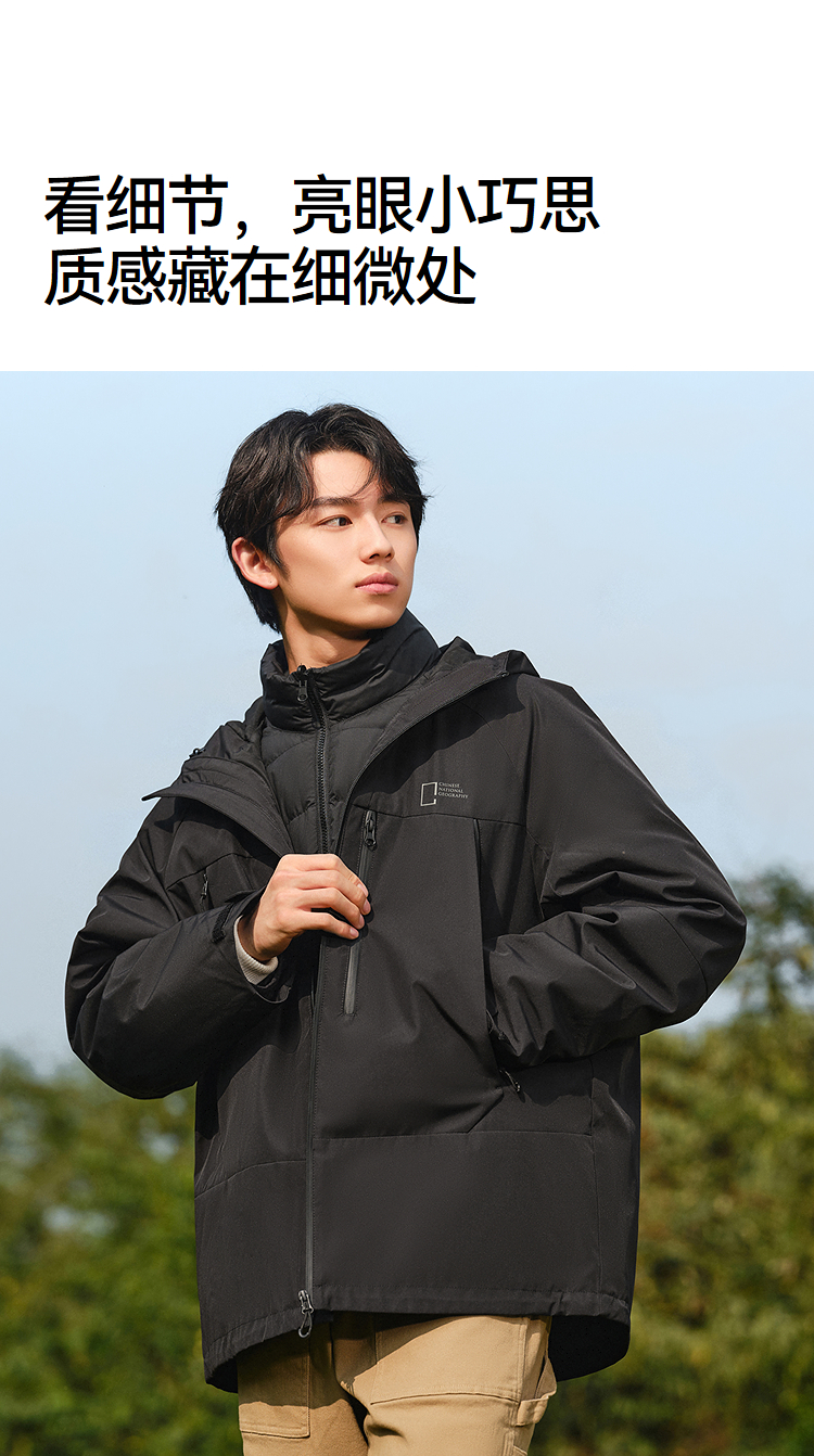 森马中国国家地理系列羽绒服男冬90绒子防风三防两件套三合一情侣