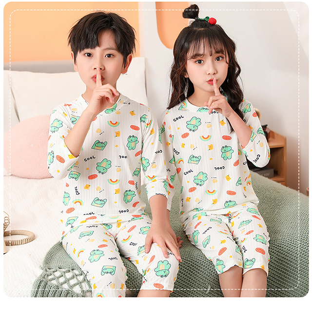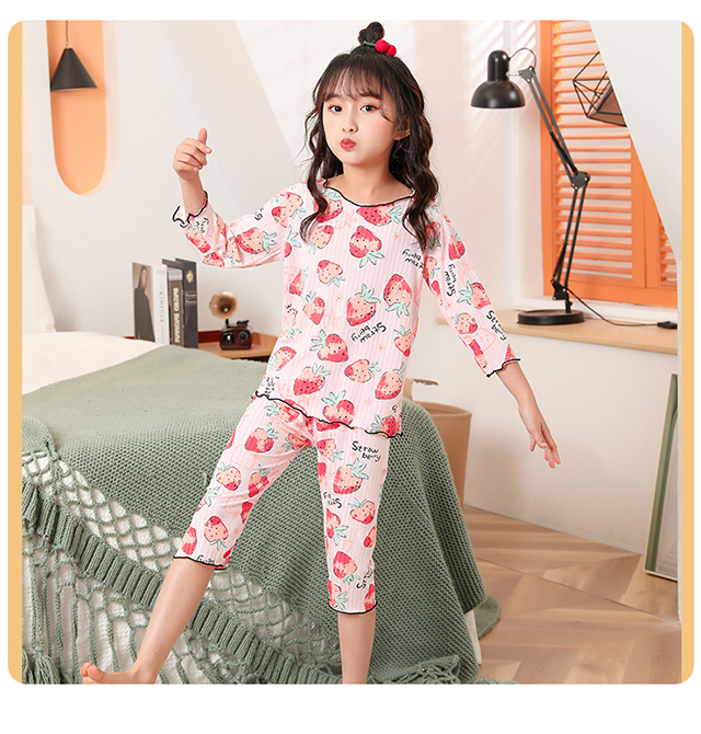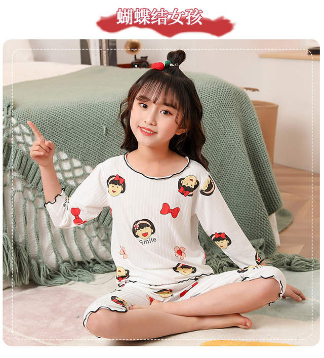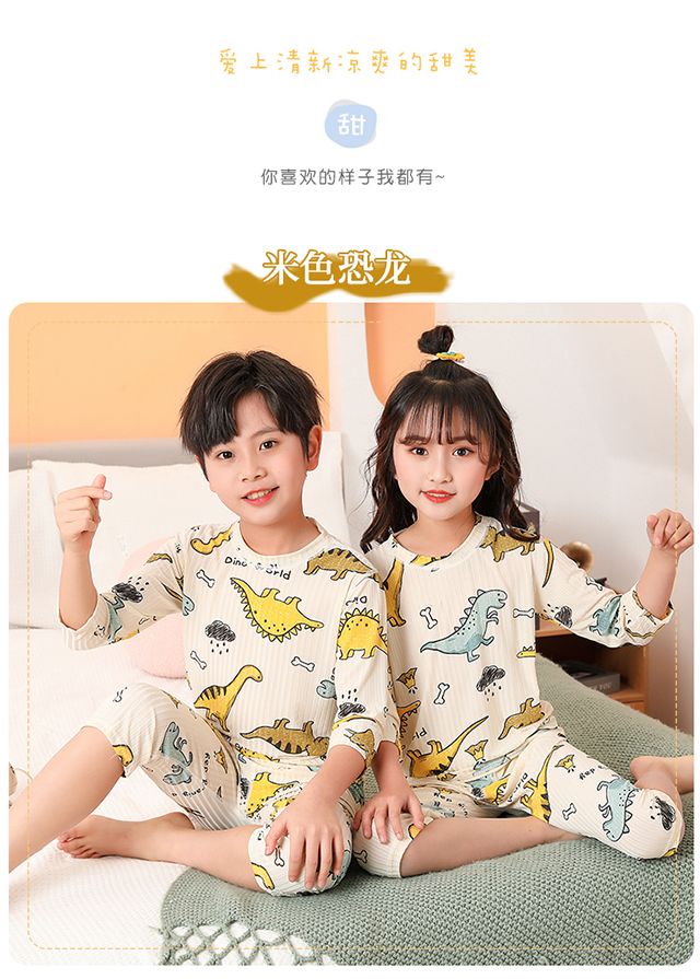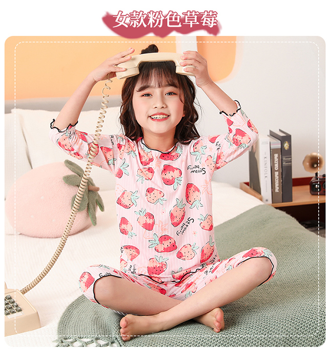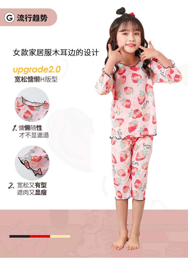 【品名】朱两只儿童莫代尔7分袖家居套装