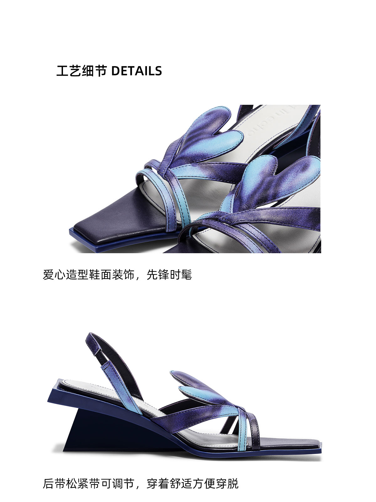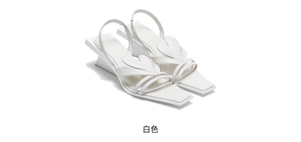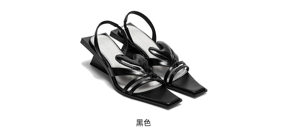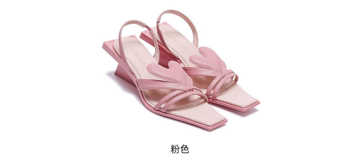[断码]lostinecho设计师品牌轻奢简约爱心漏趾细带小方头坡跟小高跟凉鞋