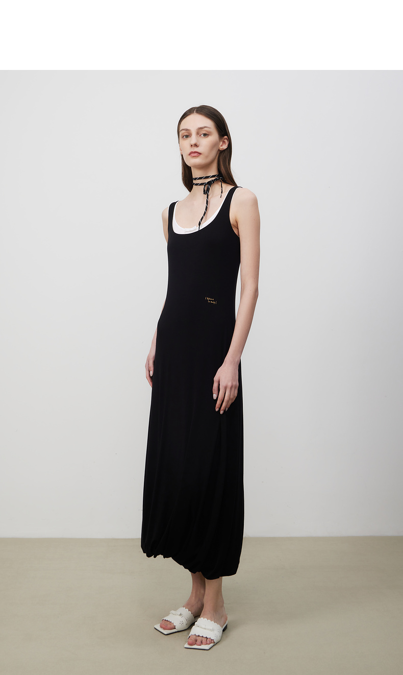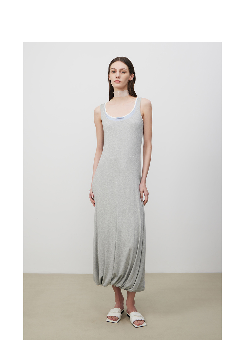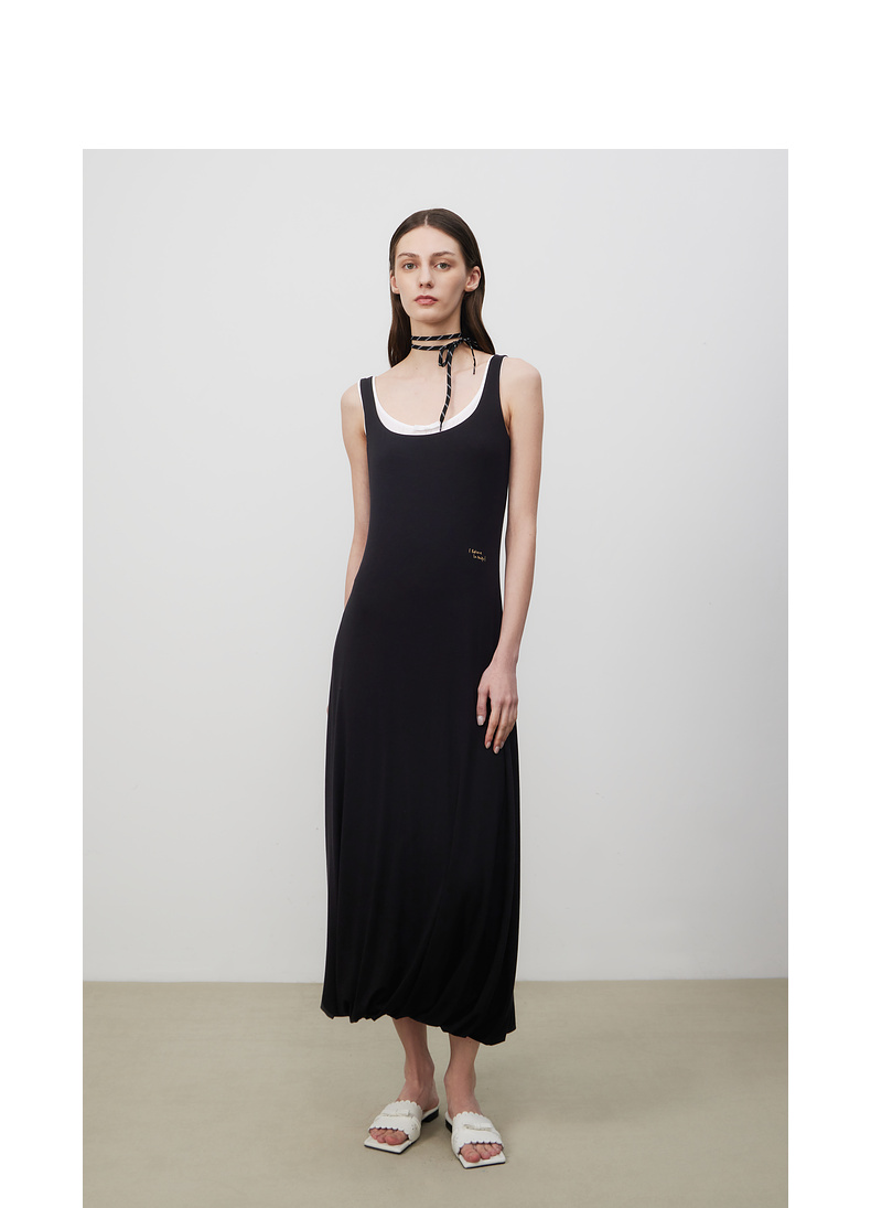 lost in echo2025夏季新款时髦撞色柔软舒适花苞长裙修身连衣裙女