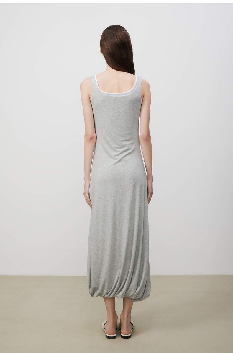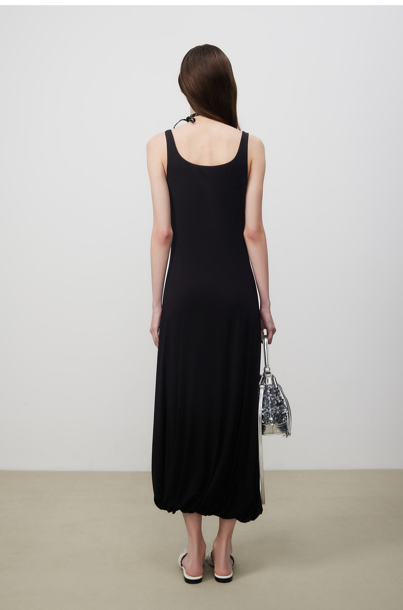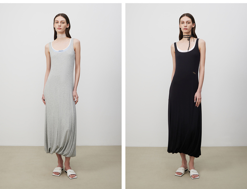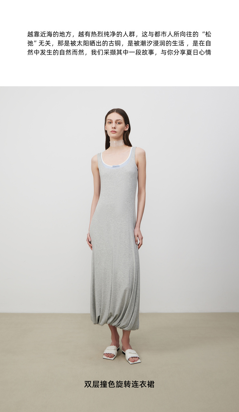 lost in echo2025夏季新款时髦撞色柔软舒适花苞长裙修身连衣裙女
