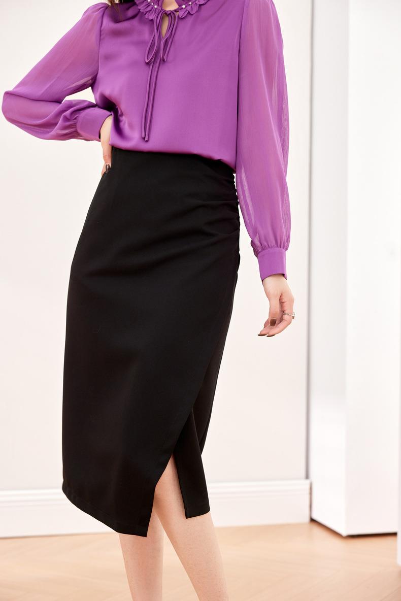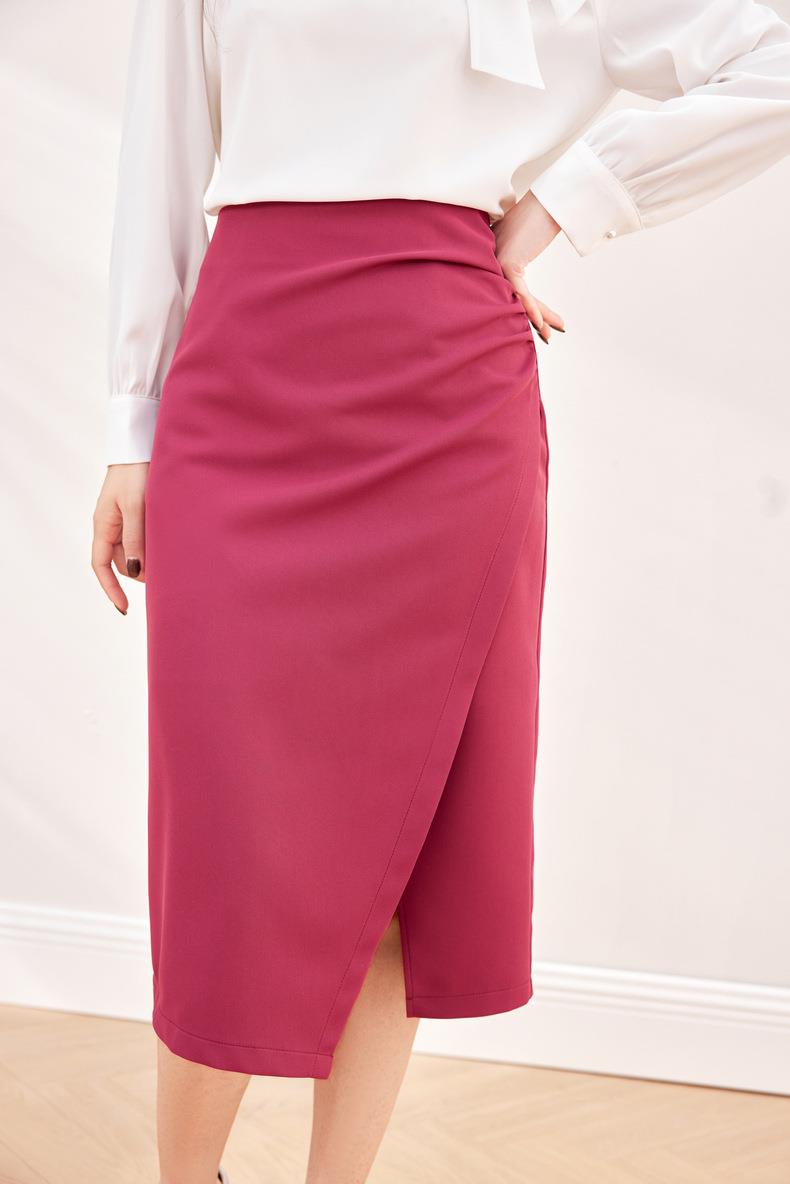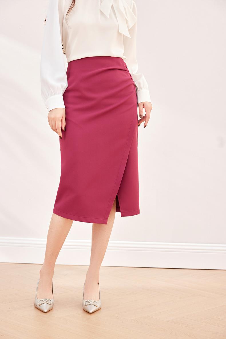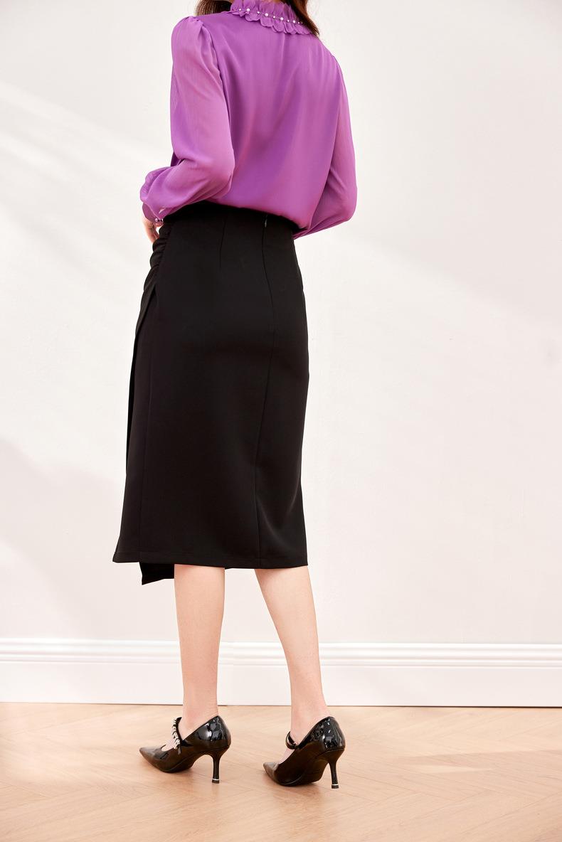 压褶不规则开??半身裙2024春装新款显瘦中长裙直筒裙6507